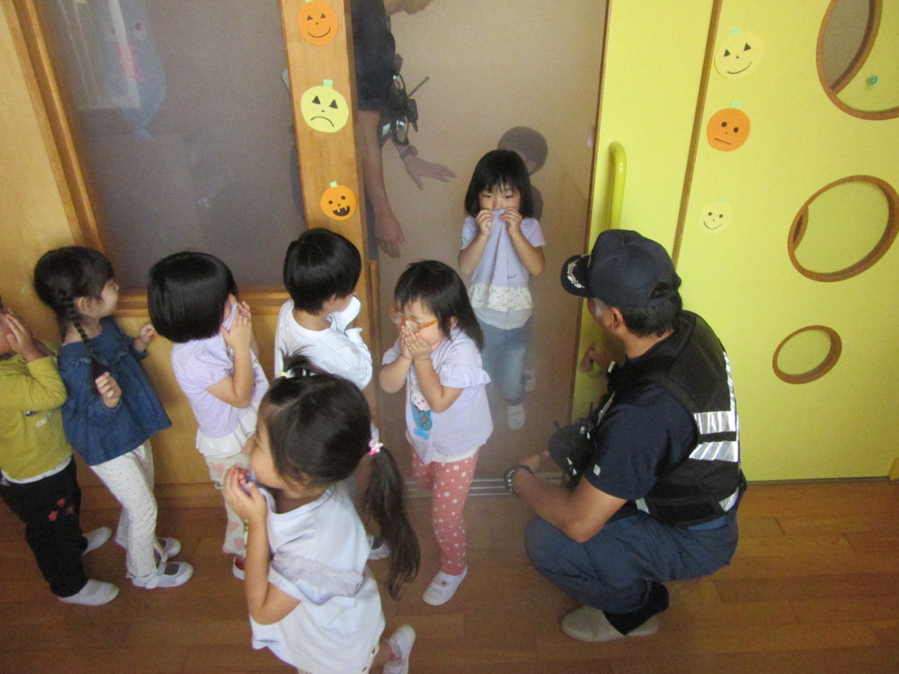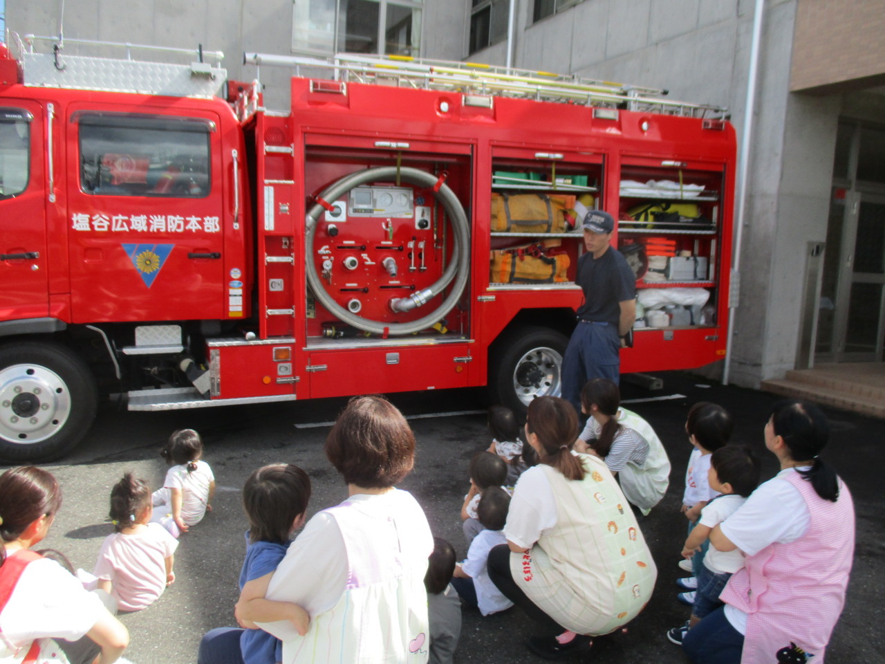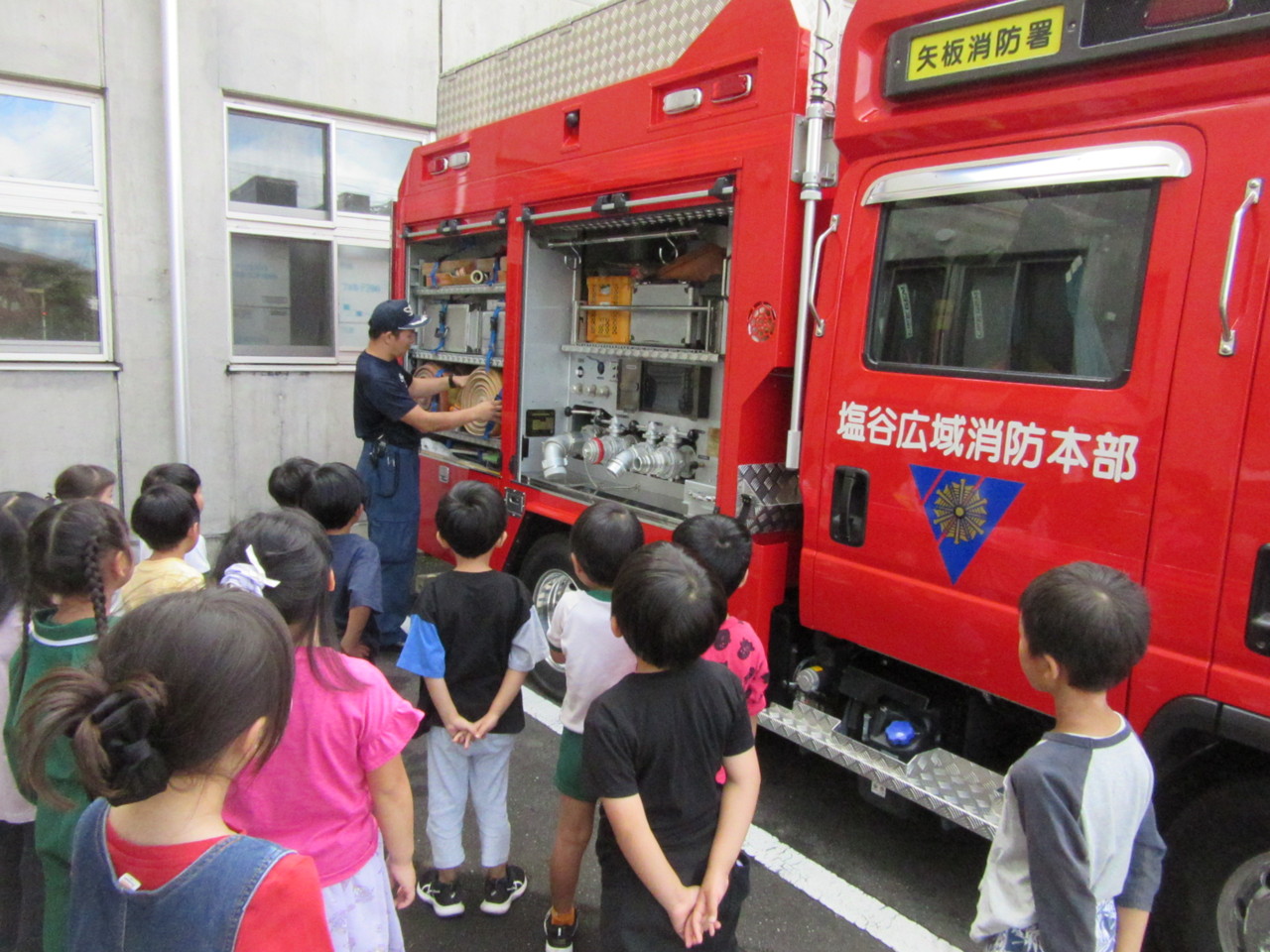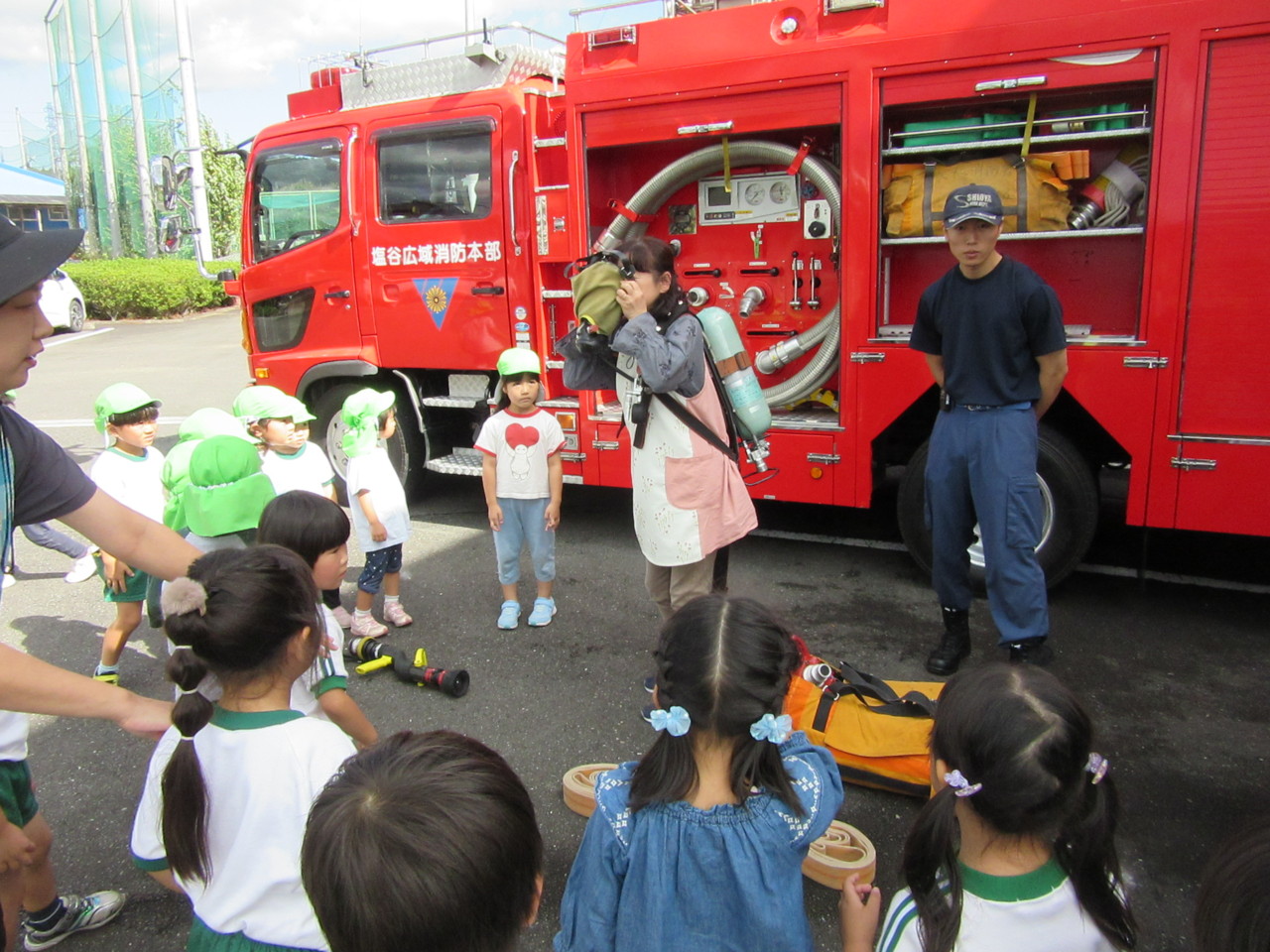 そのあと、消防自動車見学とスモーク体験をさせていただきました。