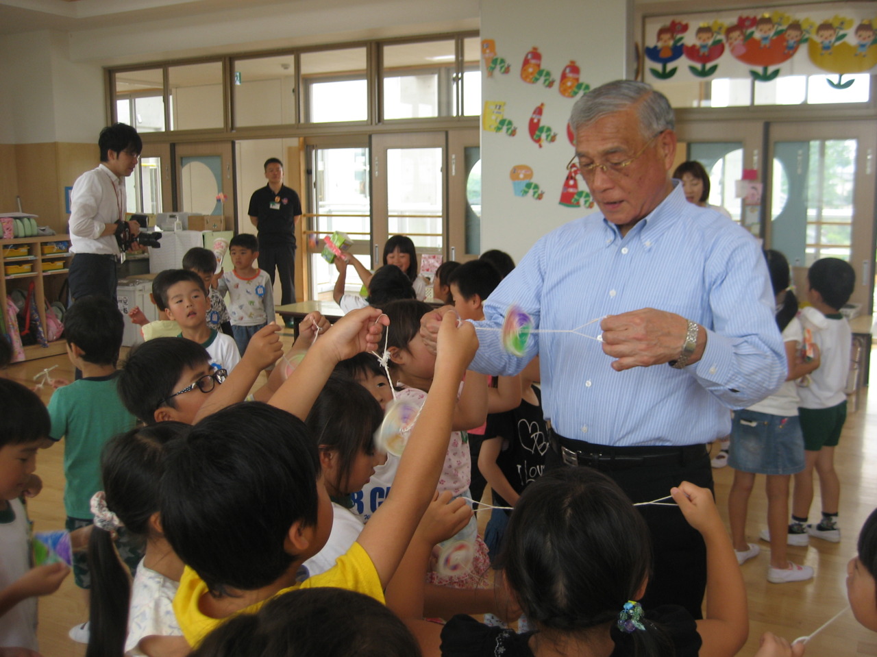市長さんに幼稚園に来ていただき、年長組と市長さんとで