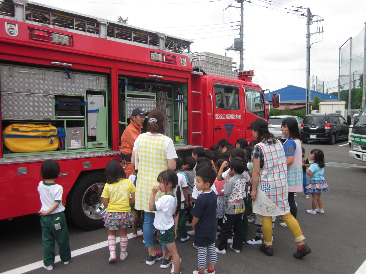 また、ポンプ車、救助工作車を見学しました。