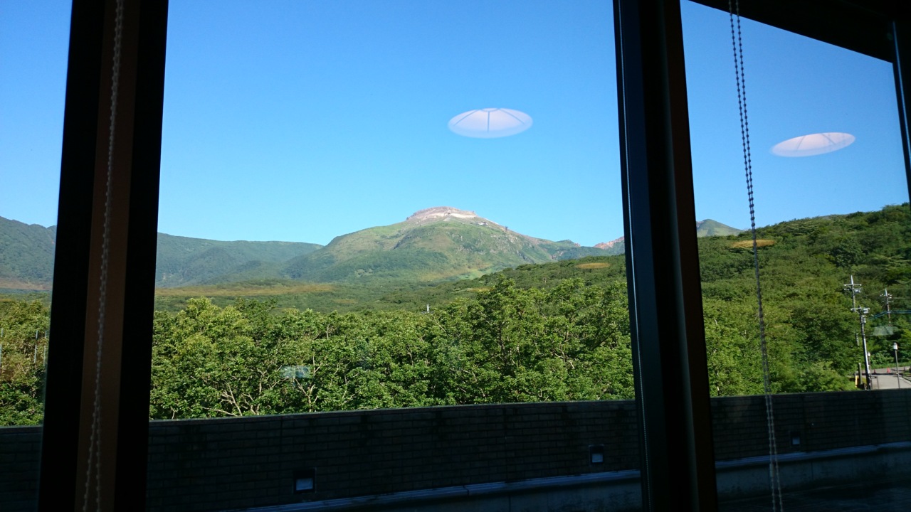 食堂の窓からも茶臼岳が、良く見えます。