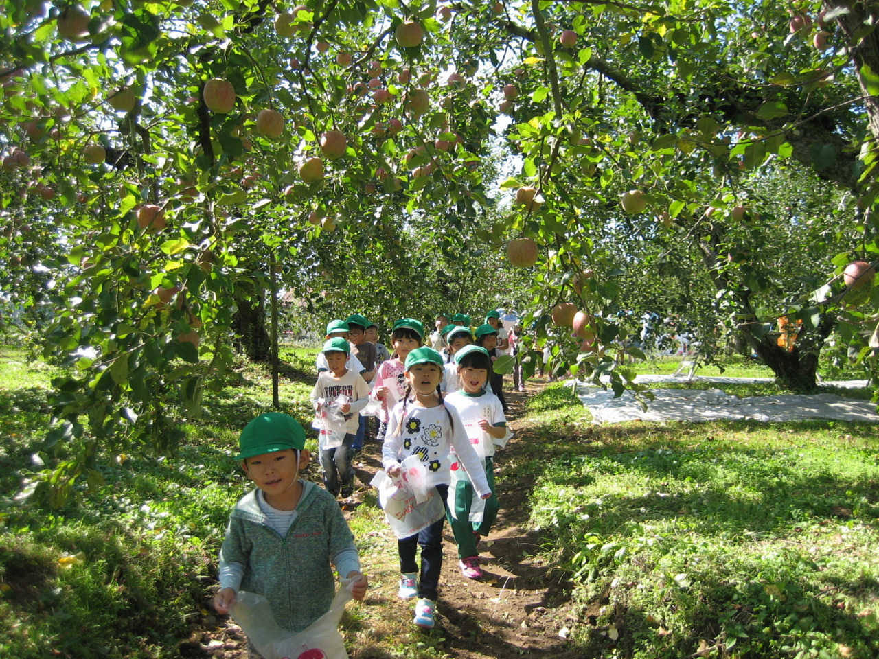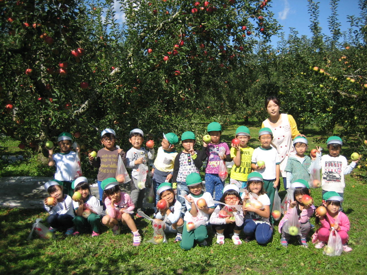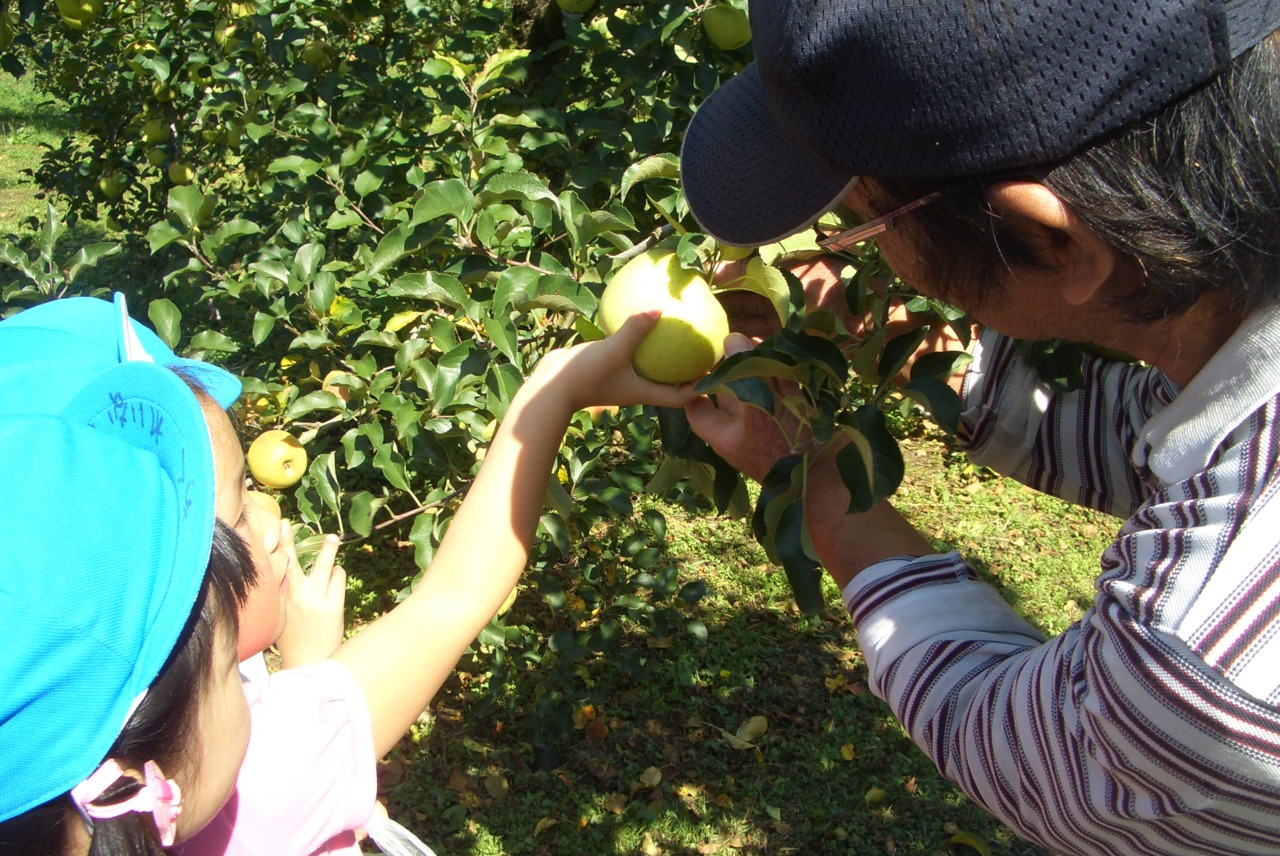 10月14日(水)きりん組(年長組)が矢板市長井のりんご園にりんご狩りにいきました。