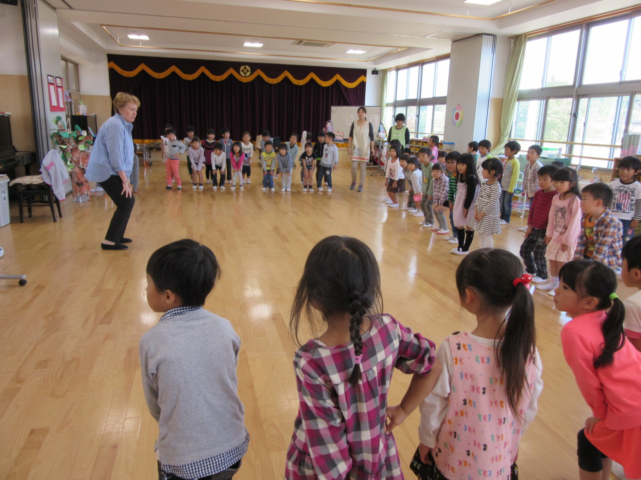 年長組がカーニー先生指導のもと、楽しく英語遊びをしています。