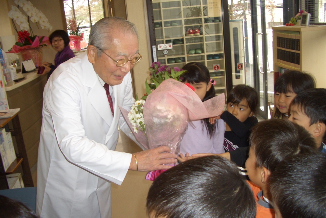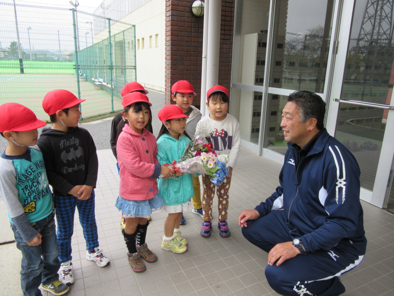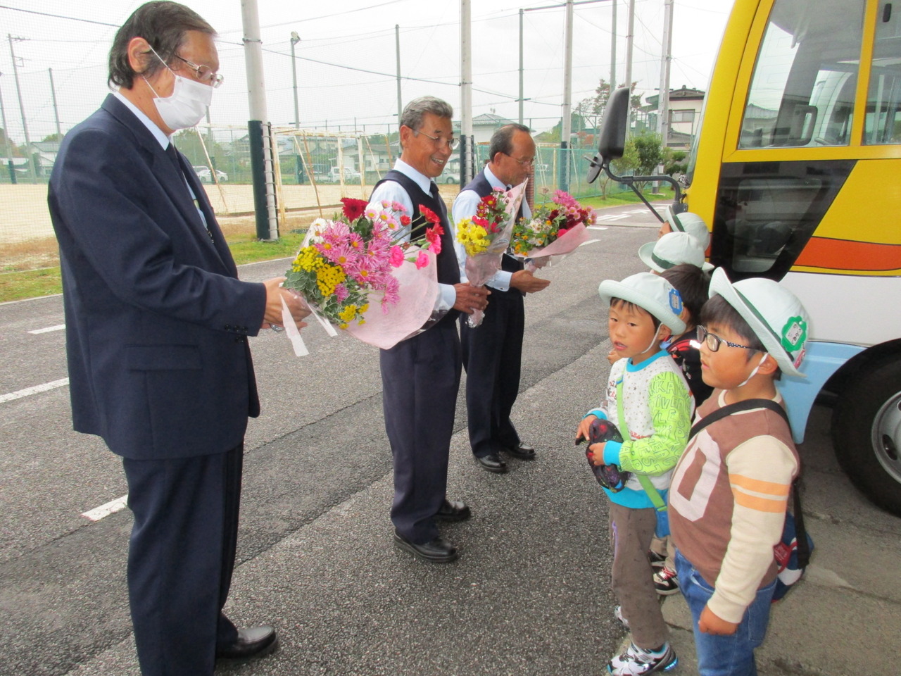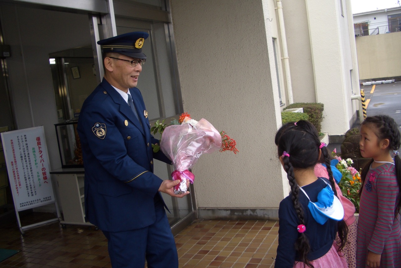今日は、年長組が代表でかしわ幼稚園全園児の感謝の気持ちをお伝えしてきました。