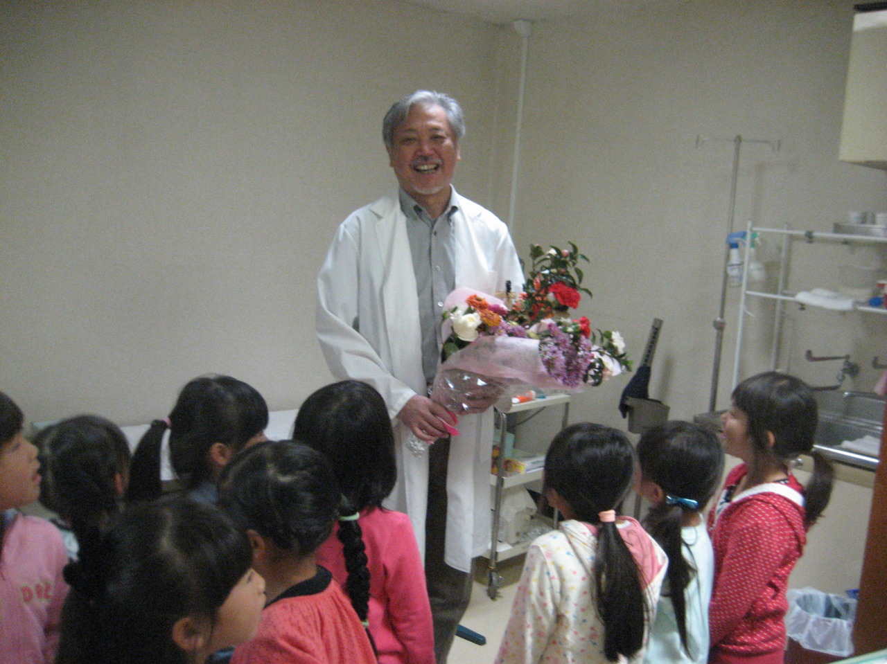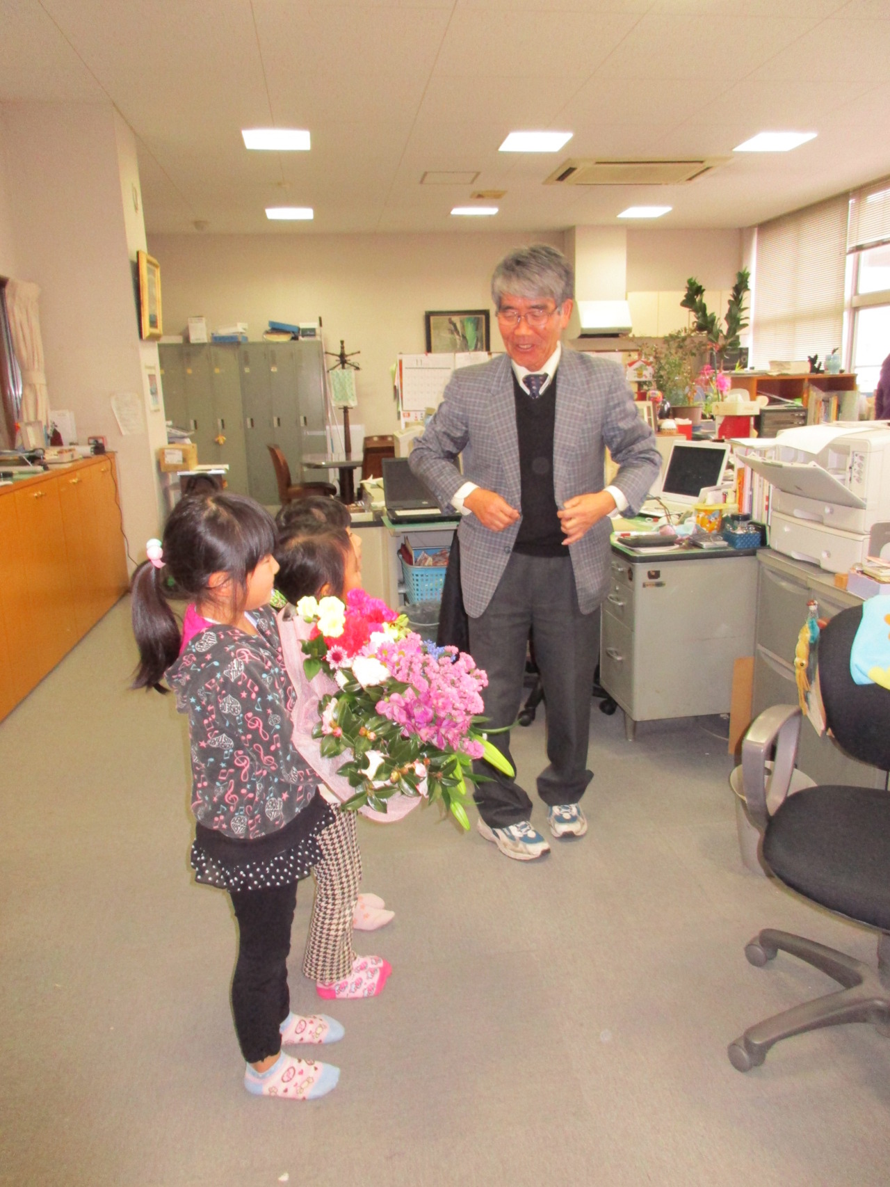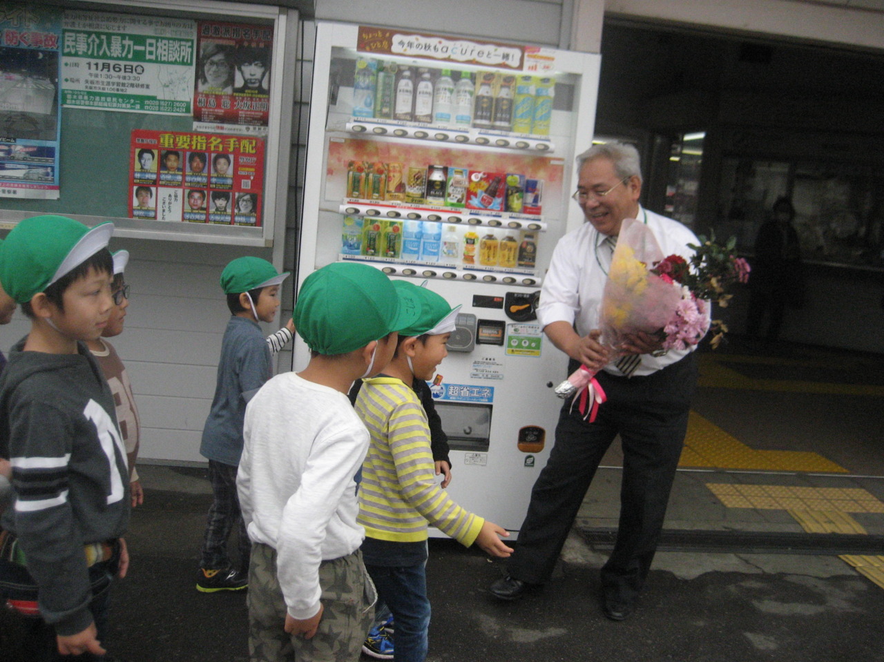 今日は、年長組が代表でかしわ幼稚園全園児の感謝の気持ちをお伝えしてきました。