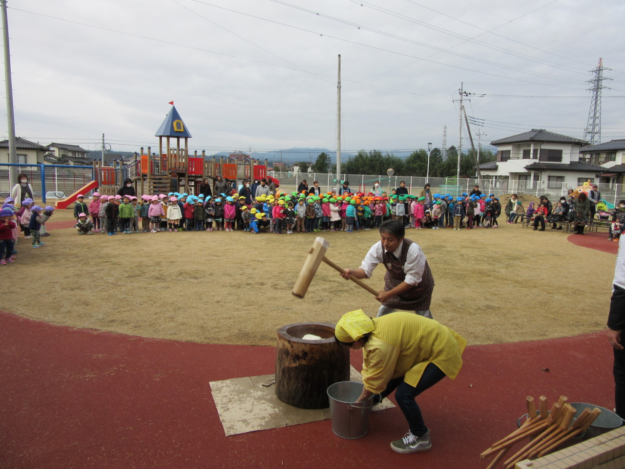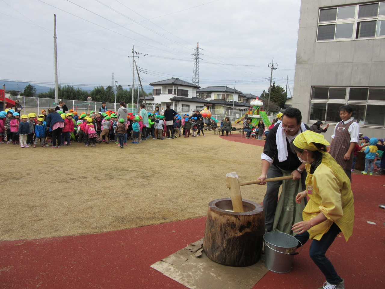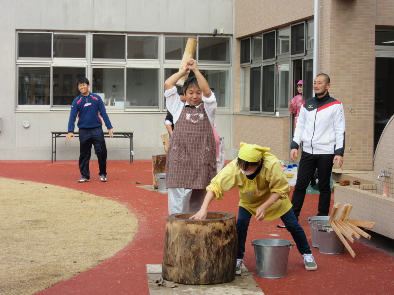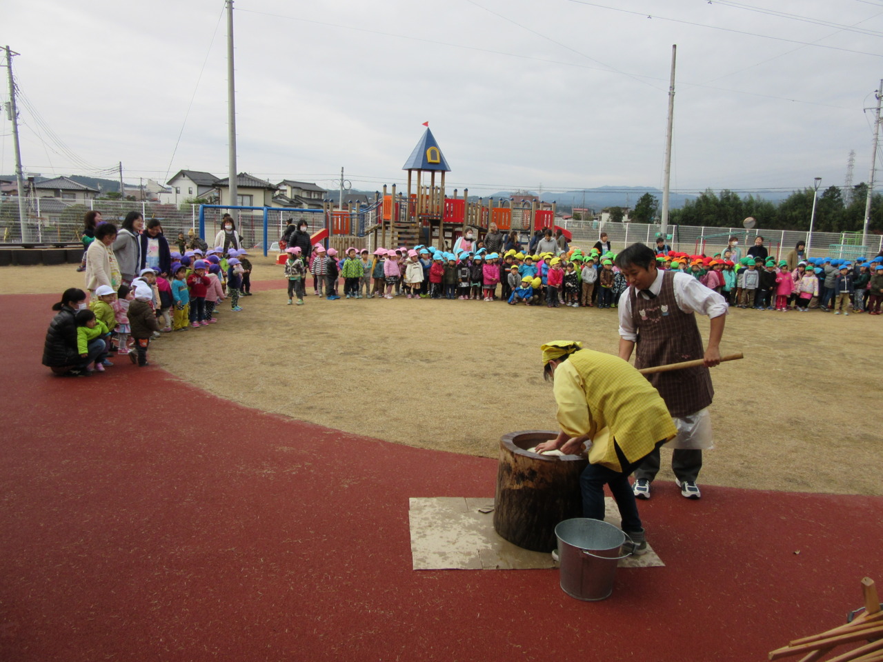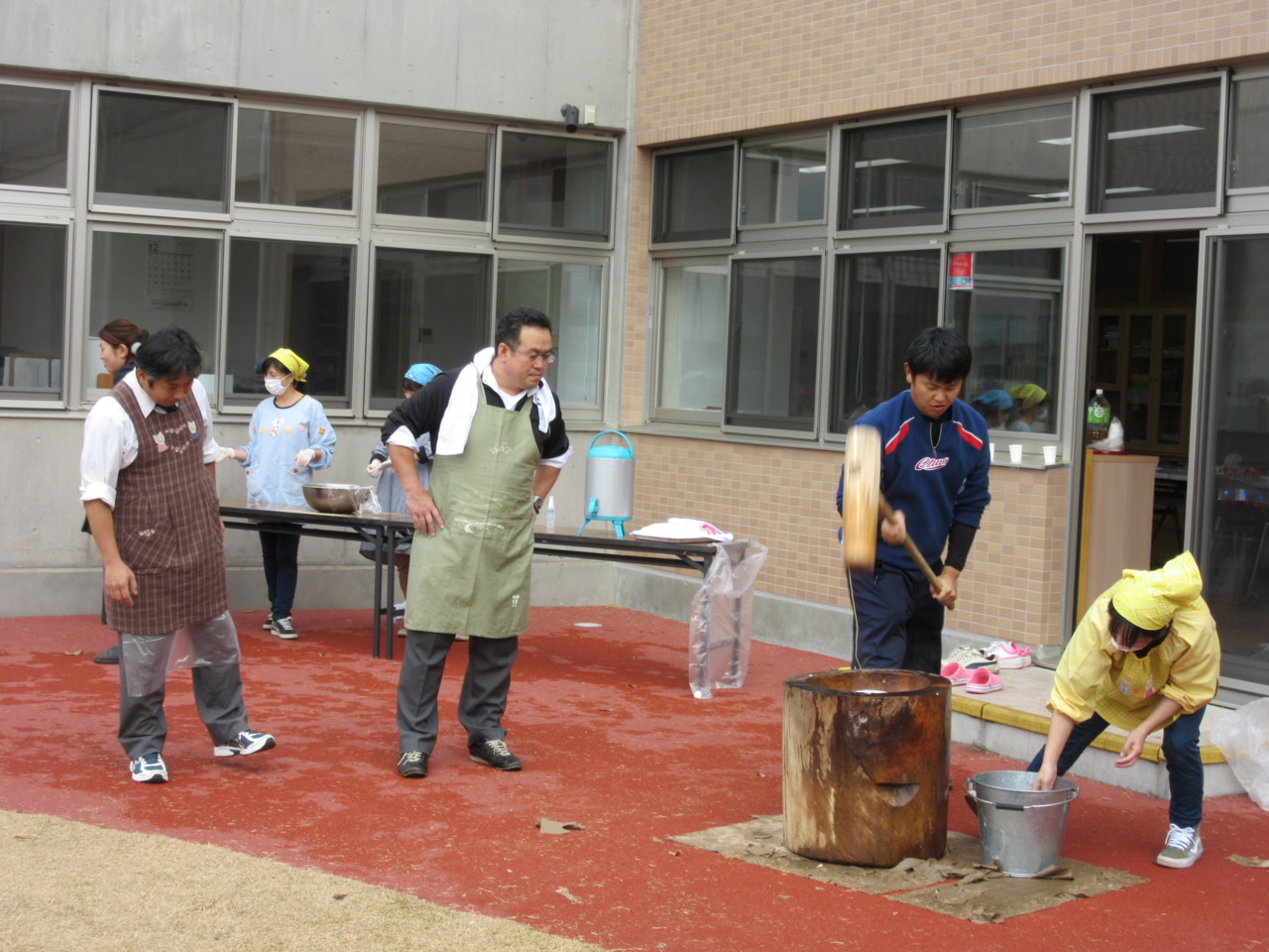 うす・きねでつく、もちつきの様子をみてこどもたちも