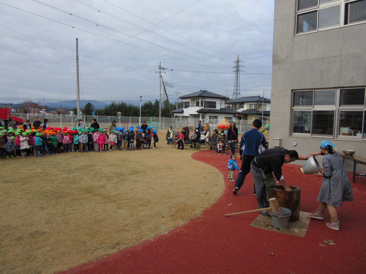 園児たちは、給食できなこもちを美味しそうに食べていました。