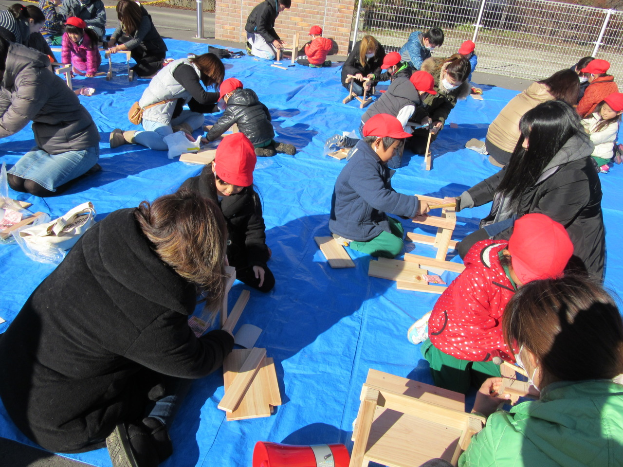 親子で、会話を弾ませながら分担して、みんな素敵な椅子が出来上がりました。