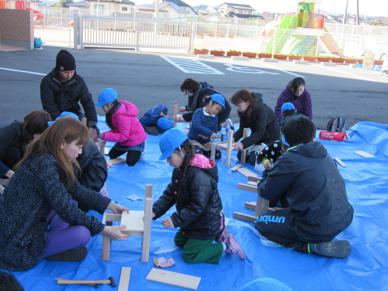 親子で卒園記念作品として木製の椅子つくりをしました。