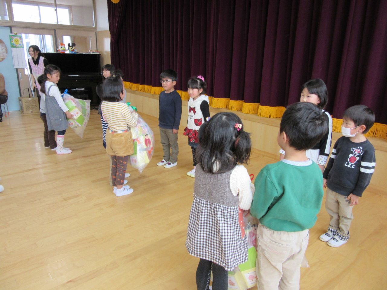 きりん組のお兄さんやお姉さんとのお別れは、とてもさみしいです。