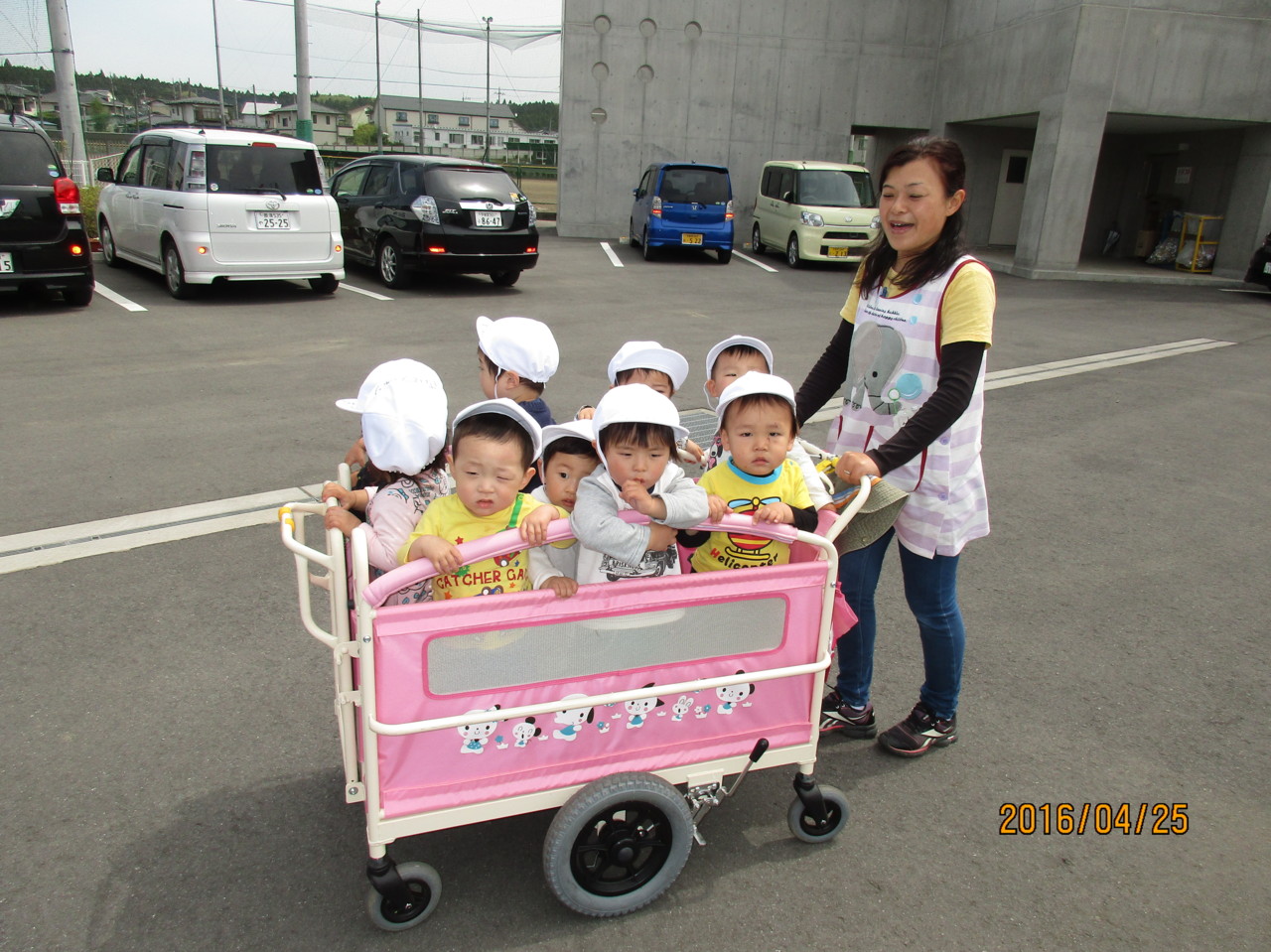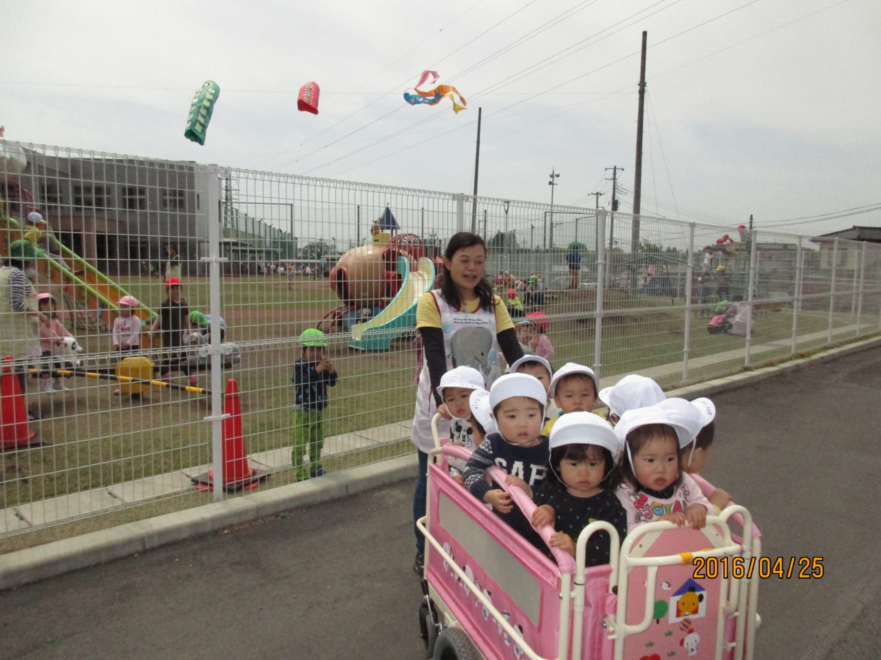 先生やお友達とバギーカーに乗ってお散歩に行ったり、モリモリお給食を食べています。