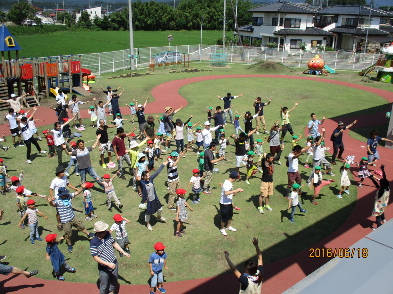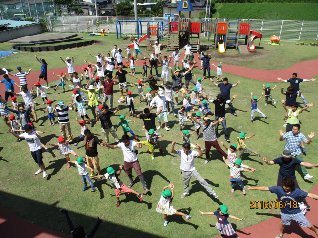 梅雨が明けたかのように夏日を思わせるような晴天に恵まれ、保護者の方と一緒に登園してくる子ども達の姿も