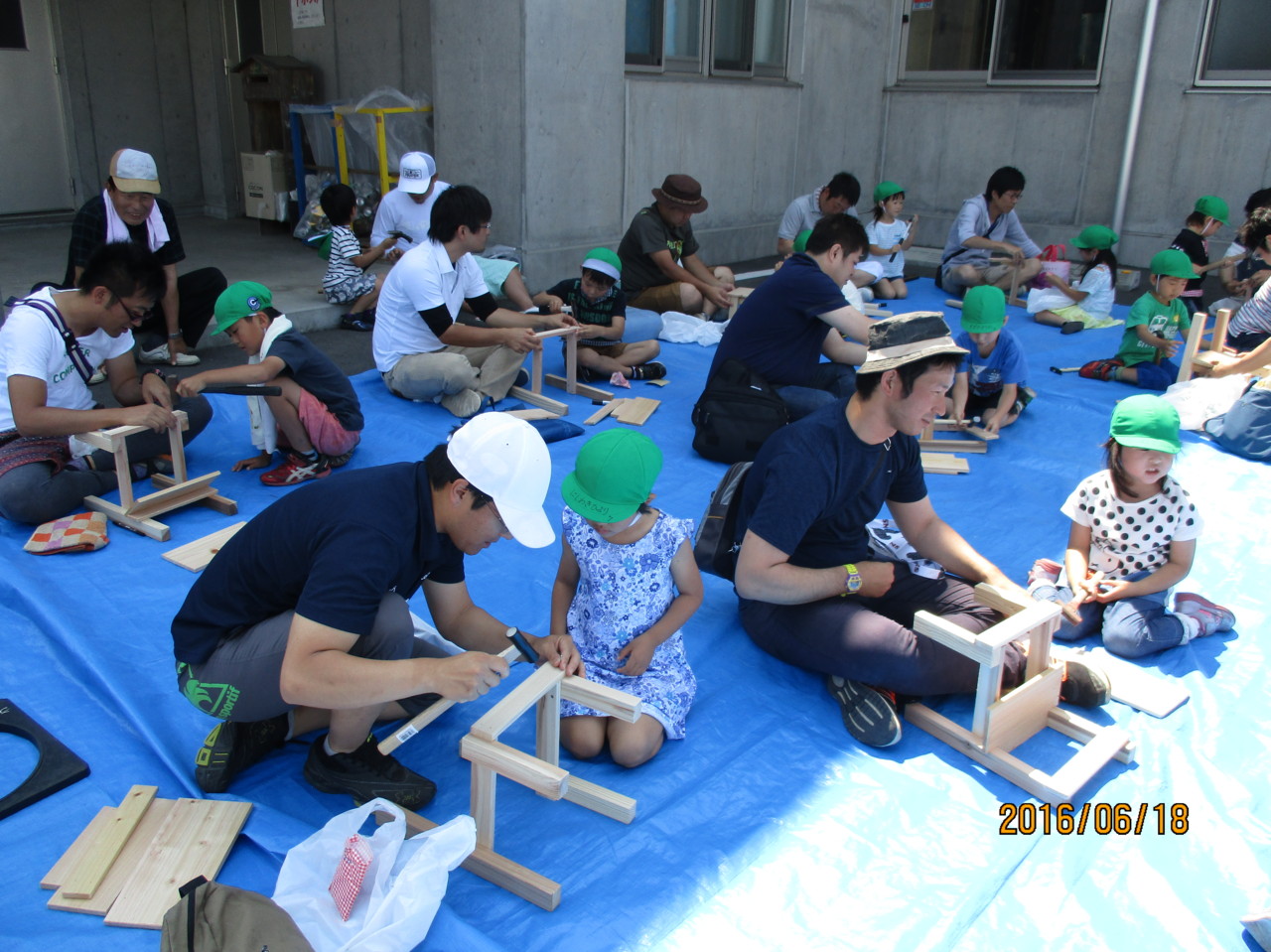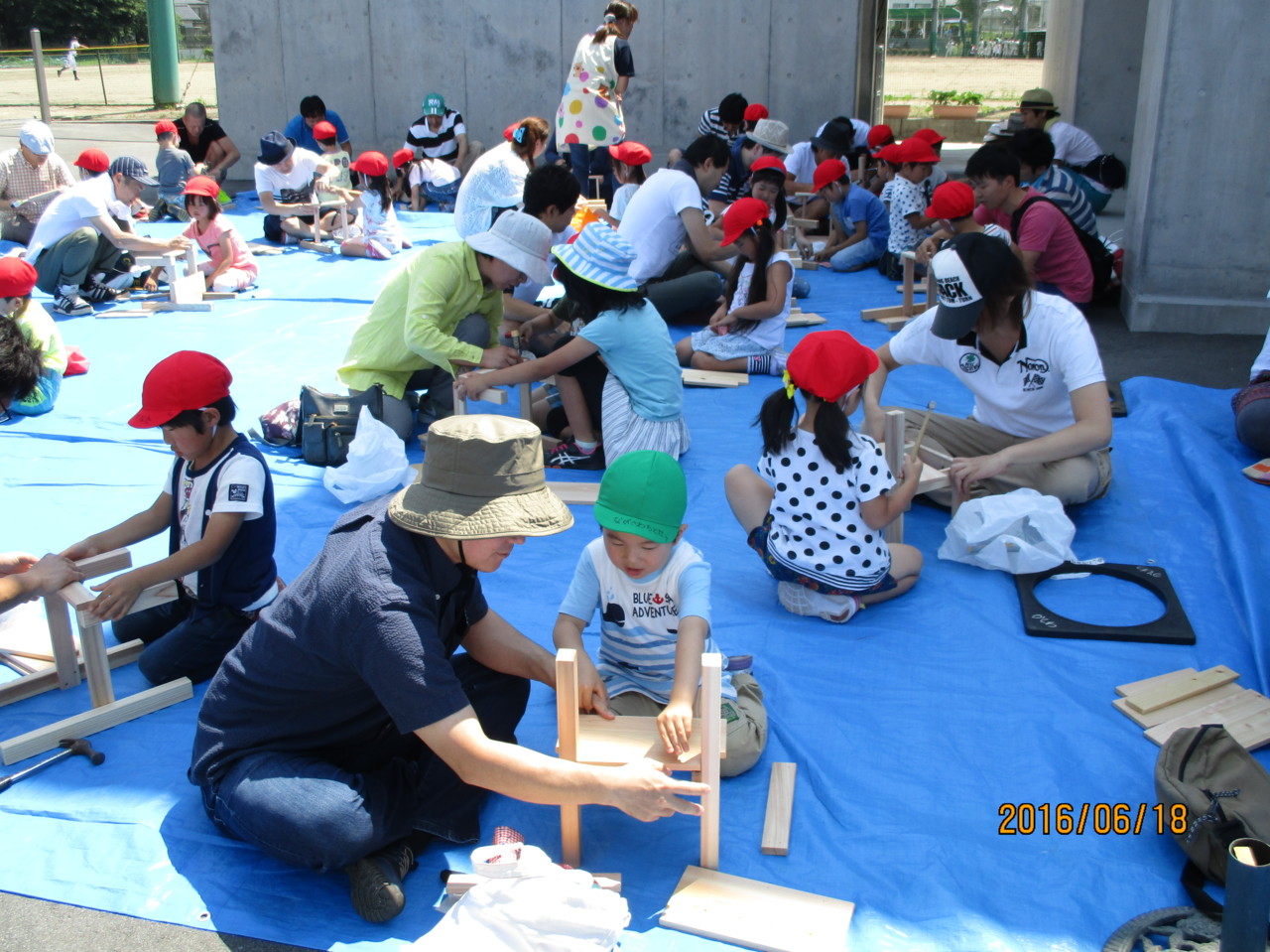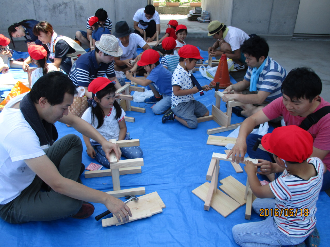 きりん組は、親子で木製椅子づくりをしました。おうちの方と一緒に相談したり力を合わせて素敵な椅子ができ