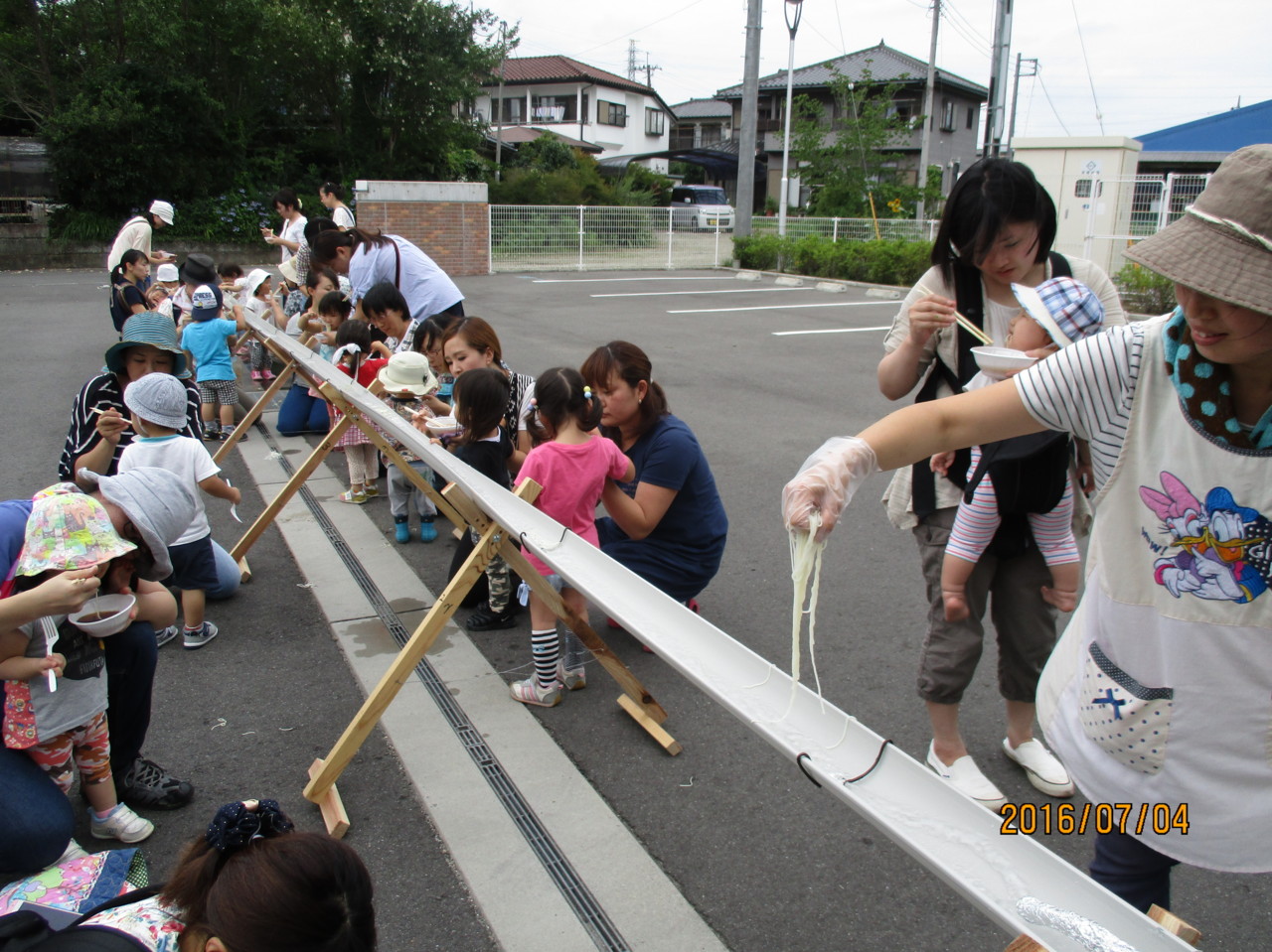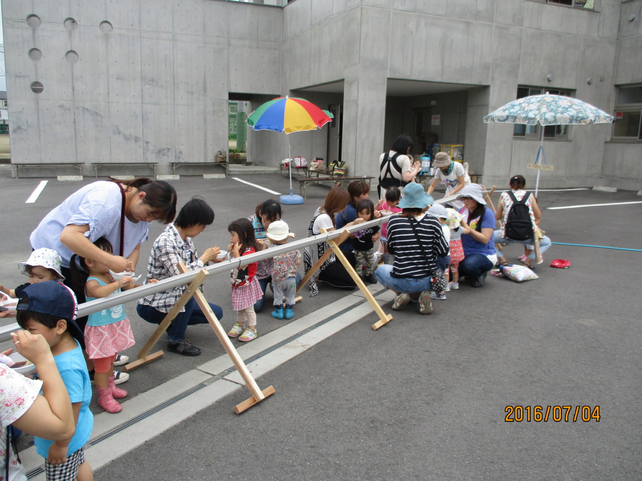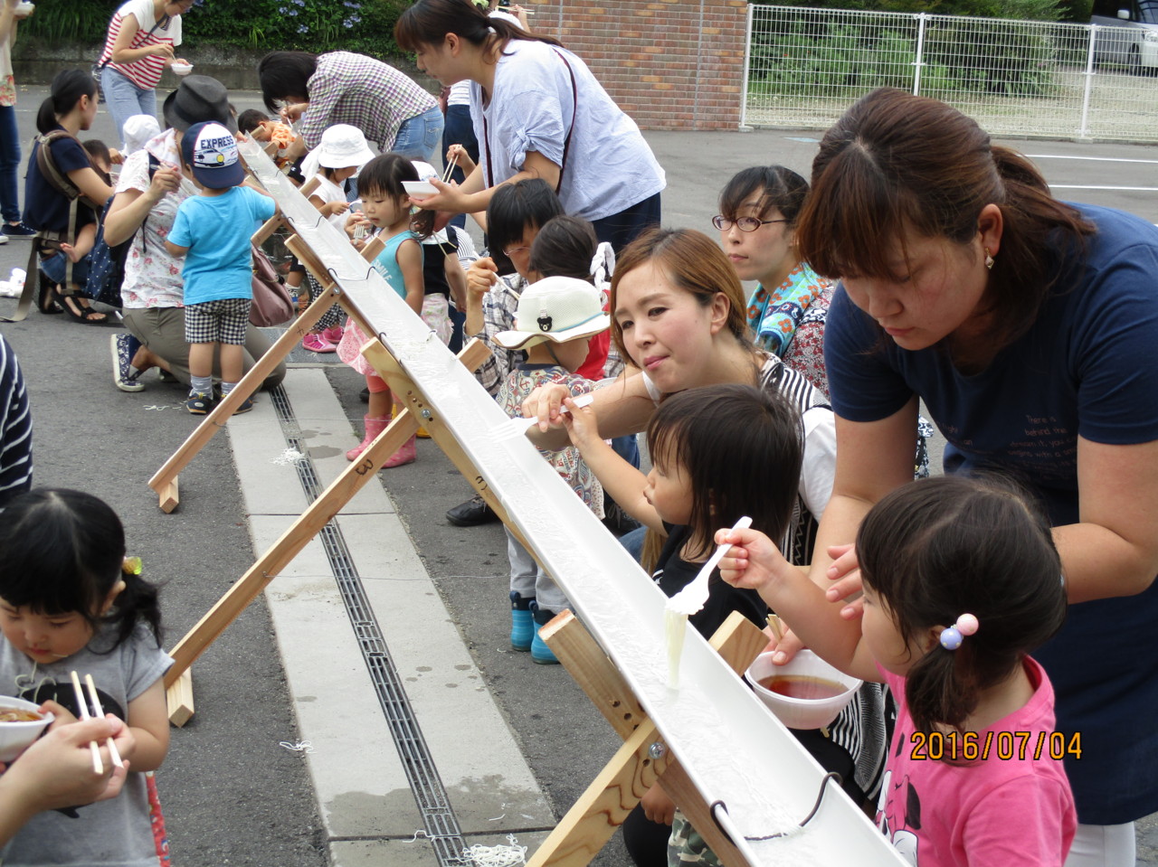 最後に、幼稚園手作りのながしそうめんをして楽しみました。
