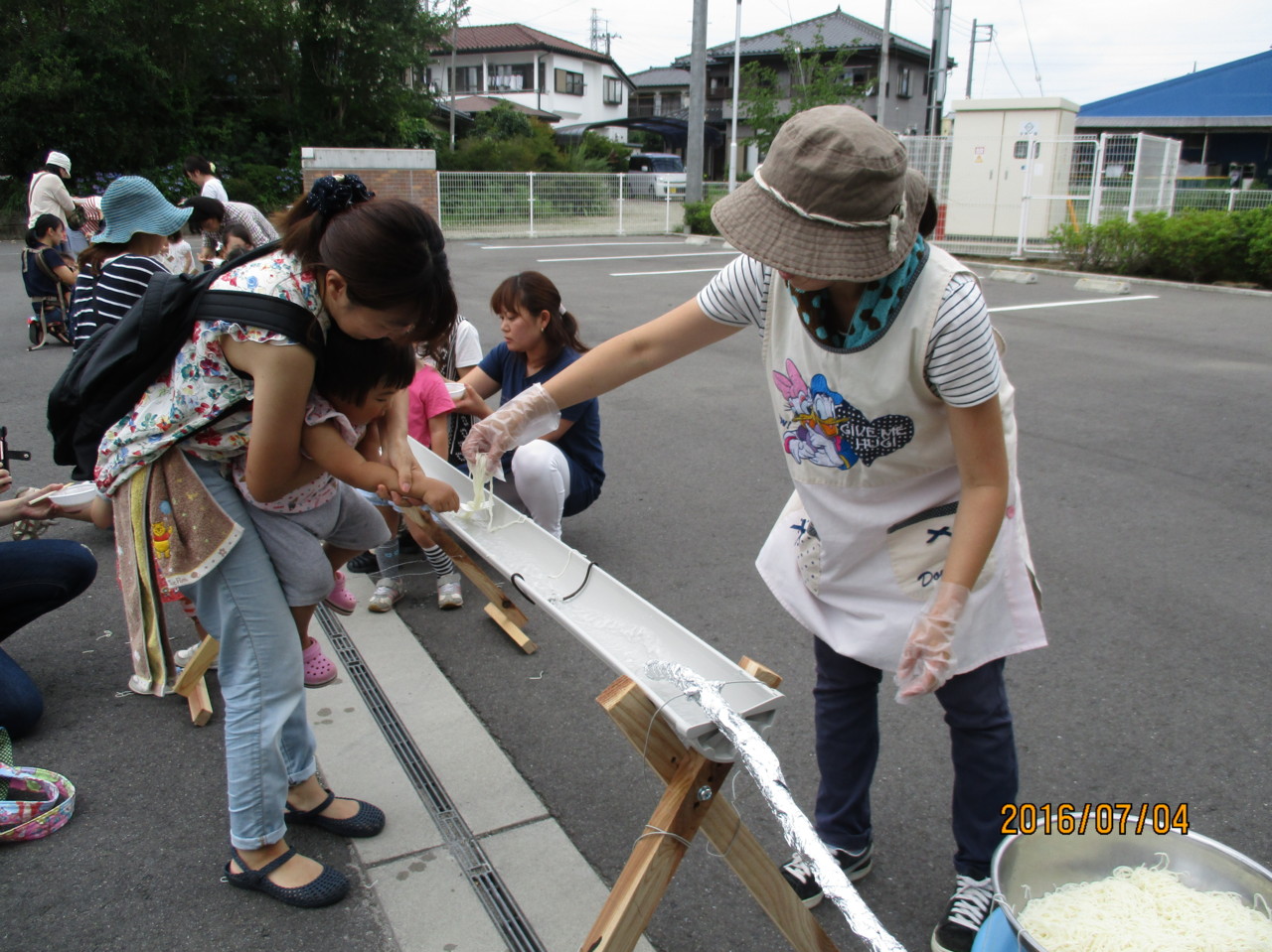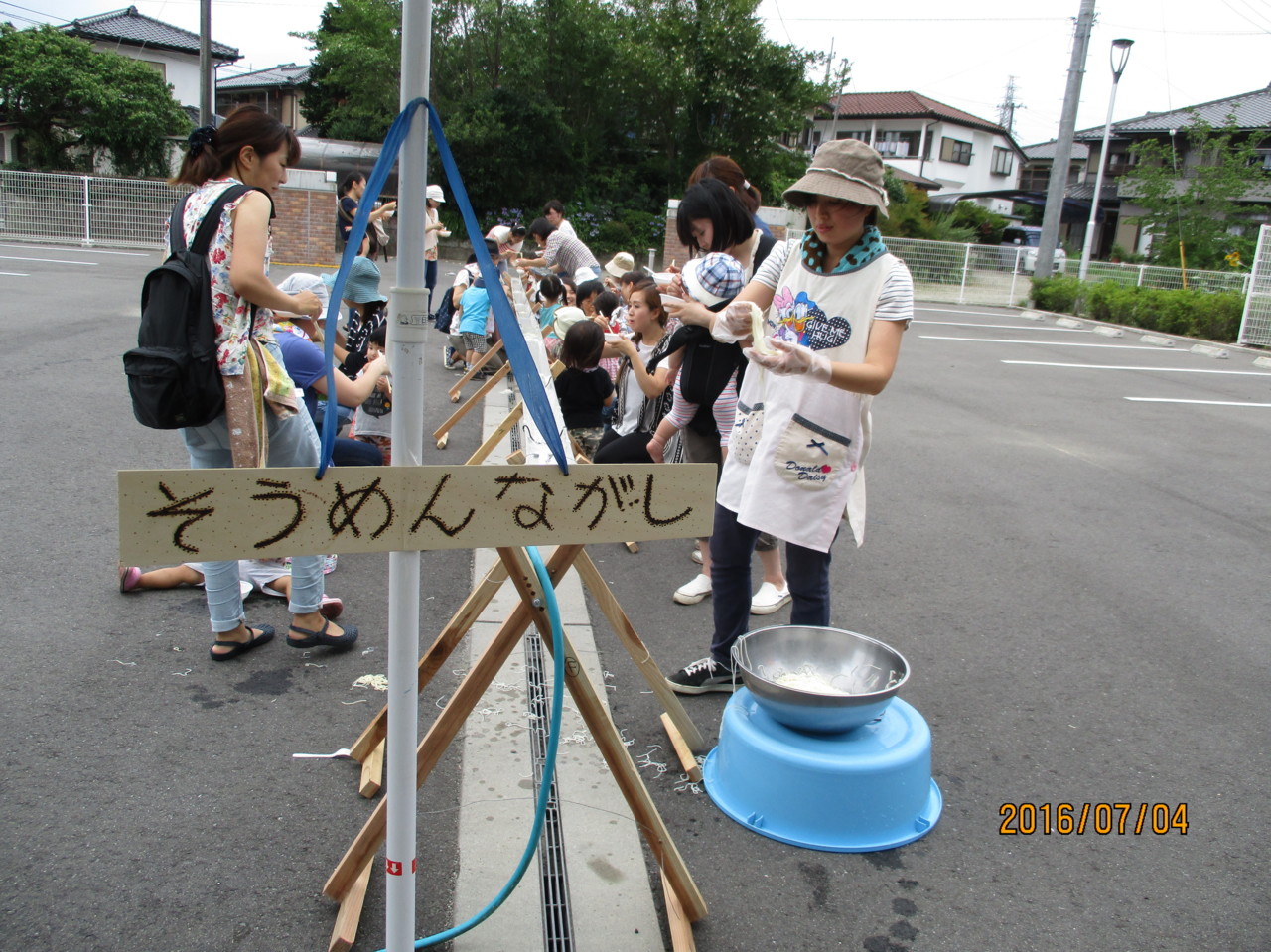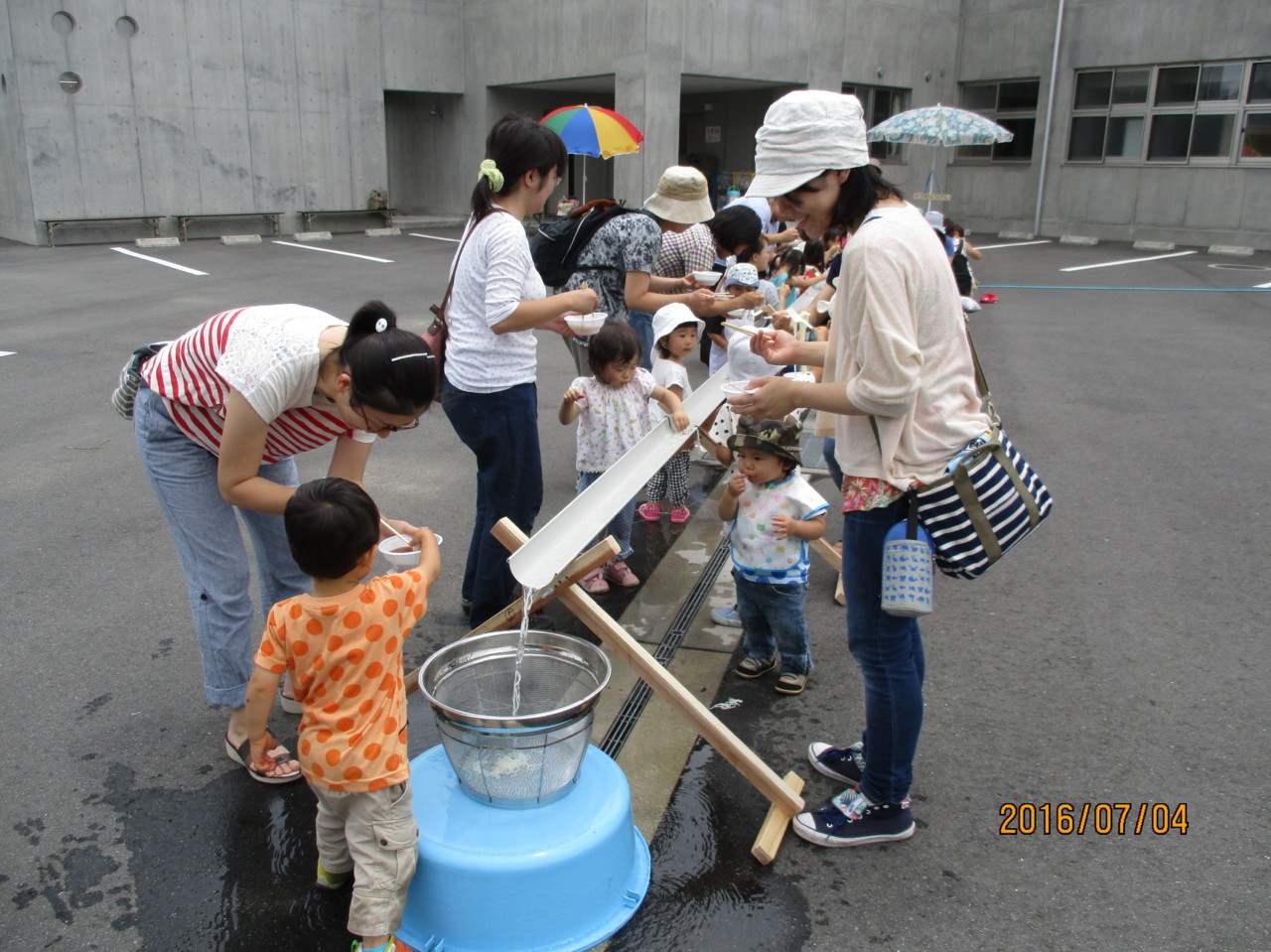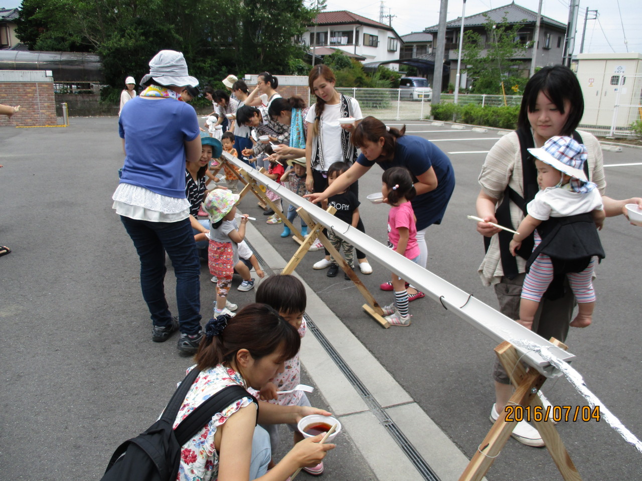 最後に、幼稚園手作りのながしそうめんをして楽しみました。