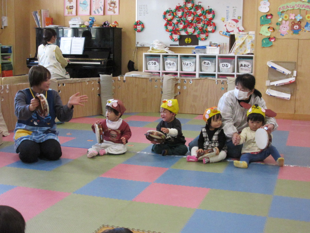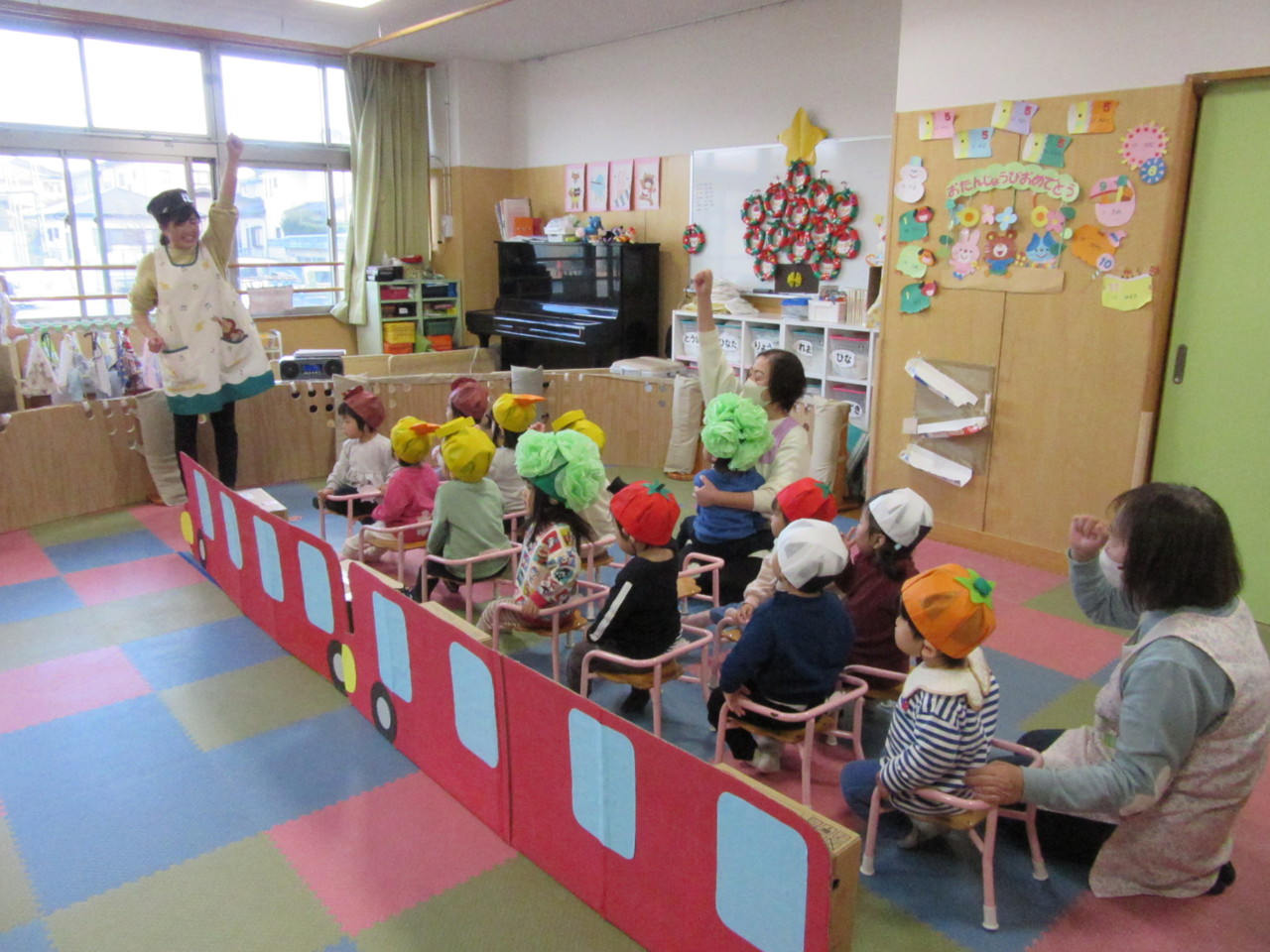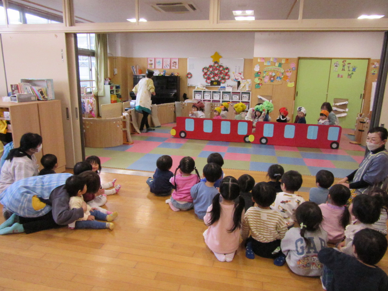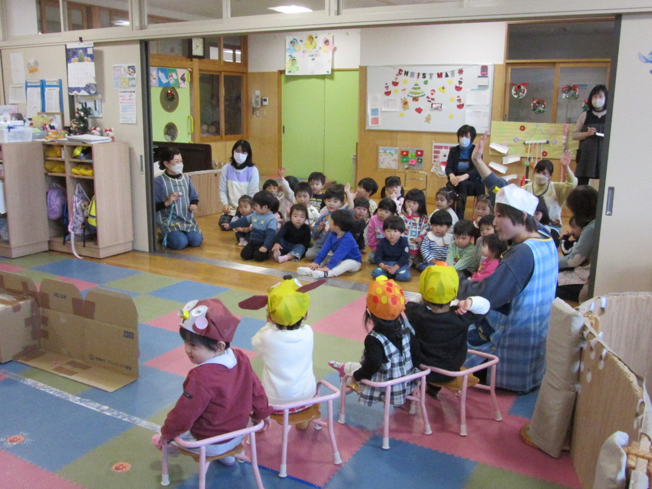 こあら組・ぱんだ組のお友達の発表会ごっこを行いました。