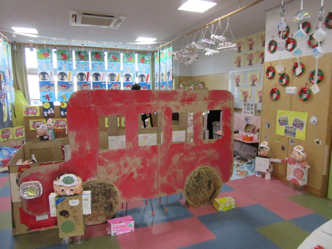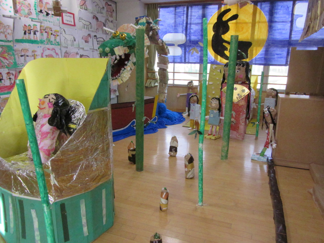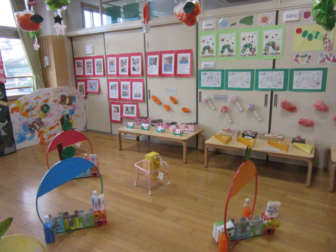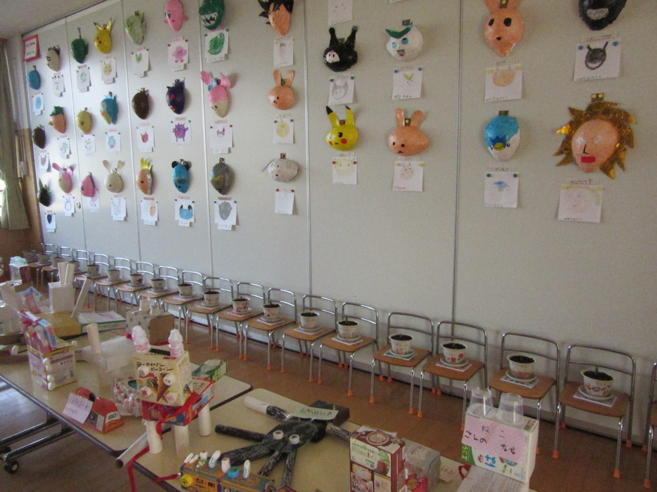 ご家庭からご協力いただいた廃品を使って子供たちの手によって素敵な作品がたくさん出来上がりました。