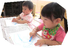 1歳児だってお絵描きができるよ!お友だちと仲良くいっしょに♪ |