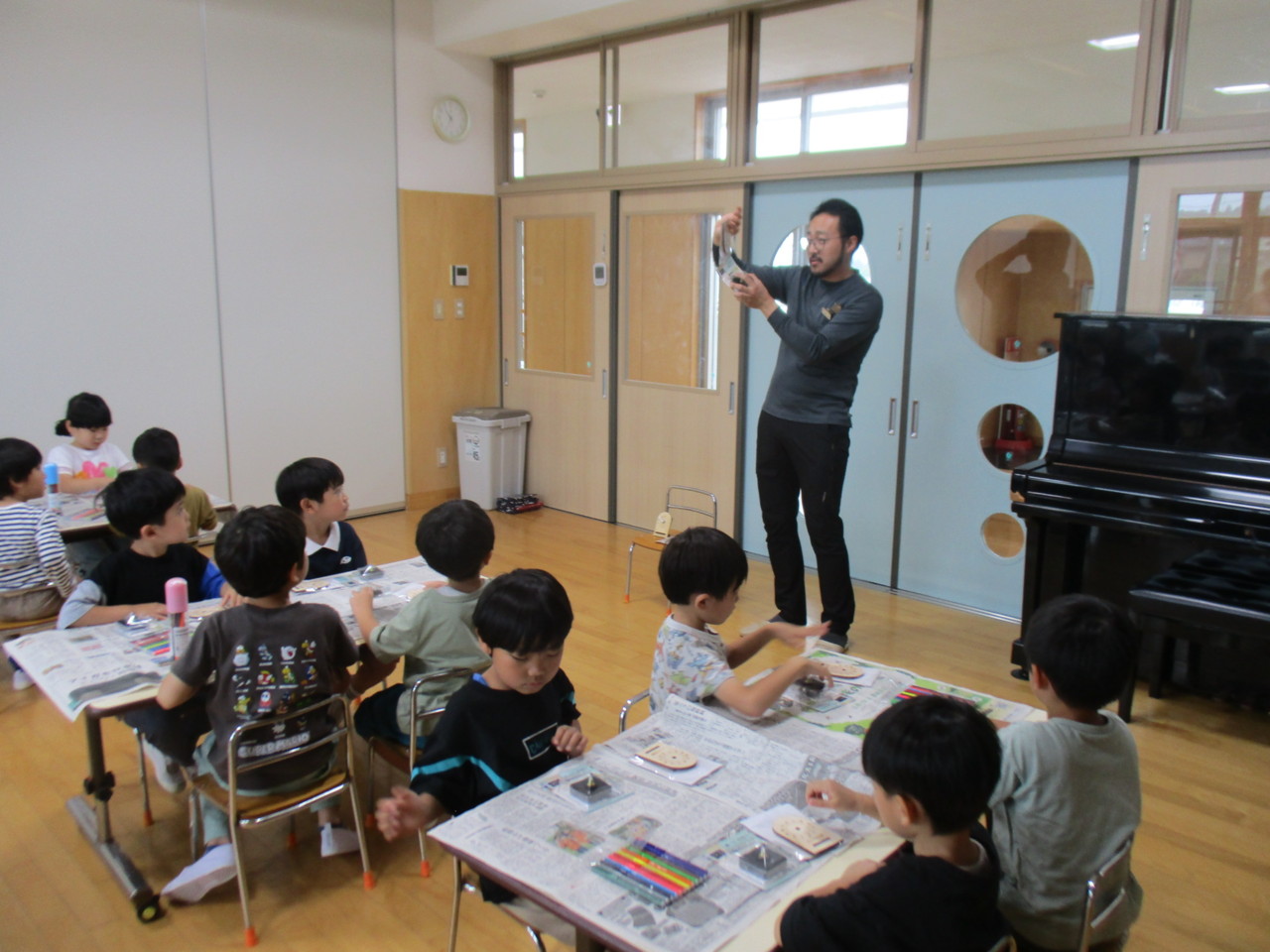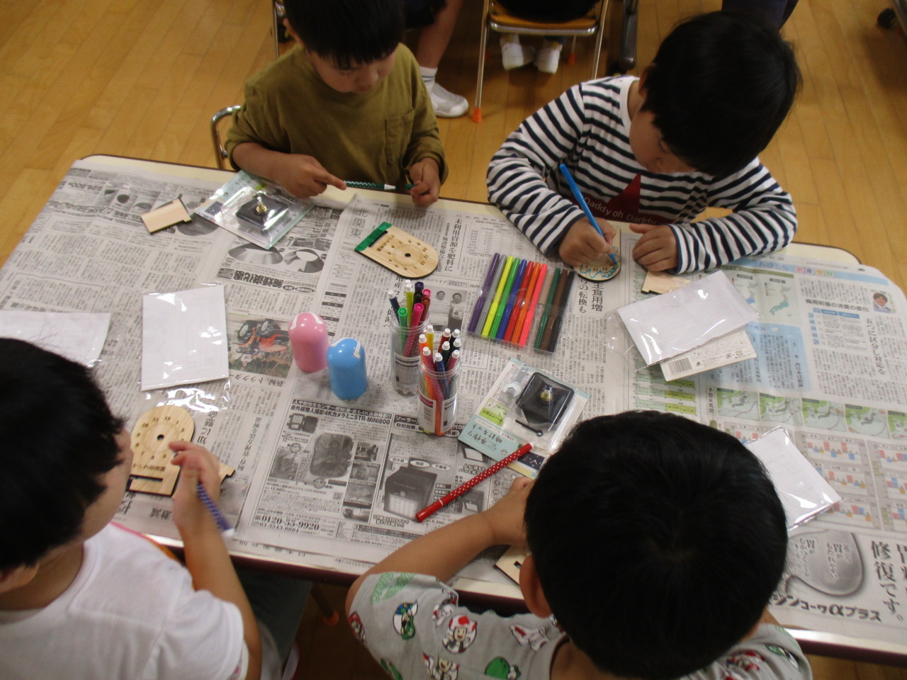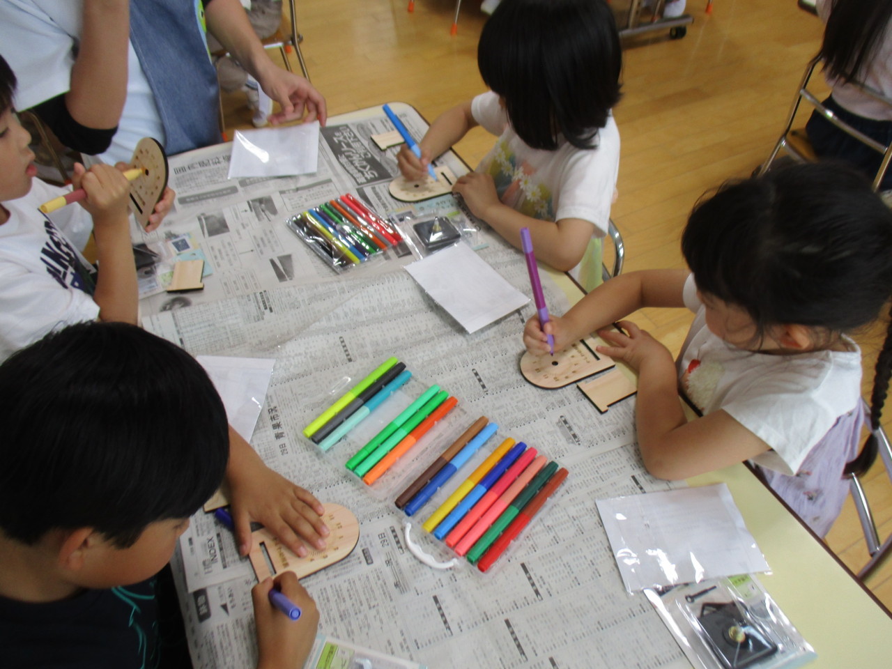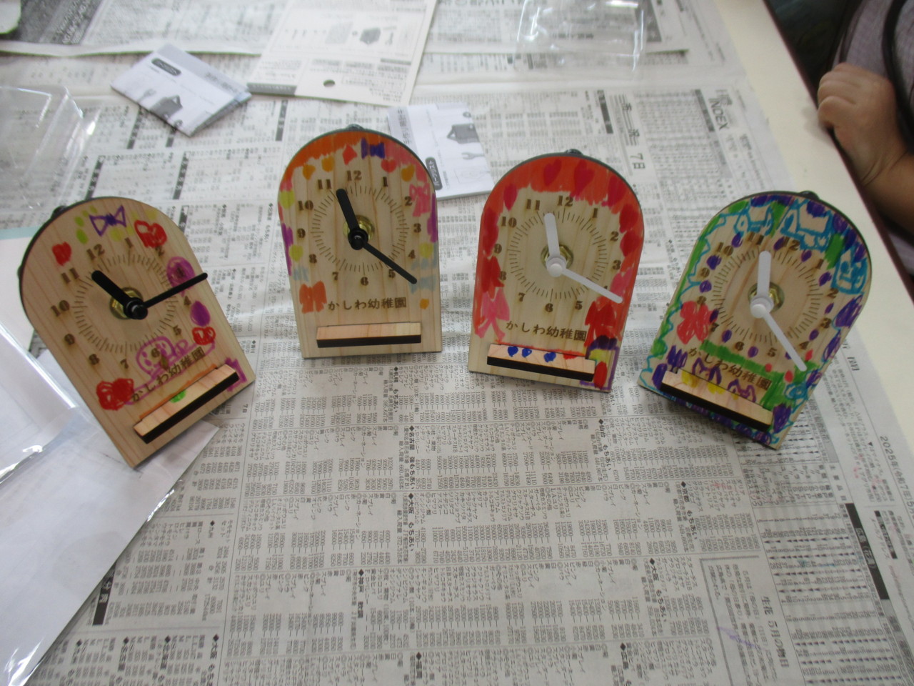 きりん組が、時の記念日にちなんで、マルハチさんのご協力を得て、時計作りを行いました。