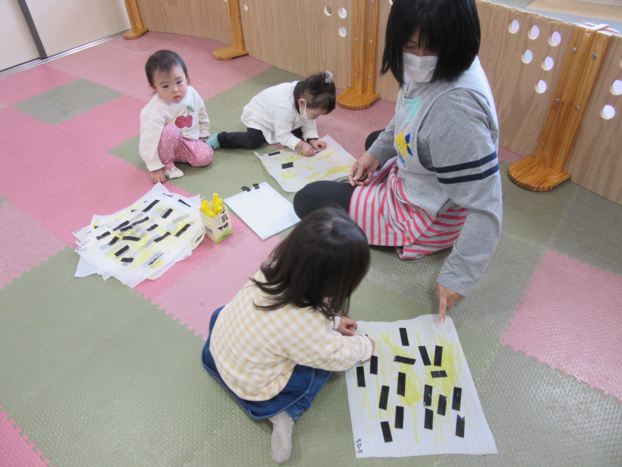 絵画製作展に向けて、ご家庭からご協力いただいた廃品を使って製作活動を楽しんでいます。