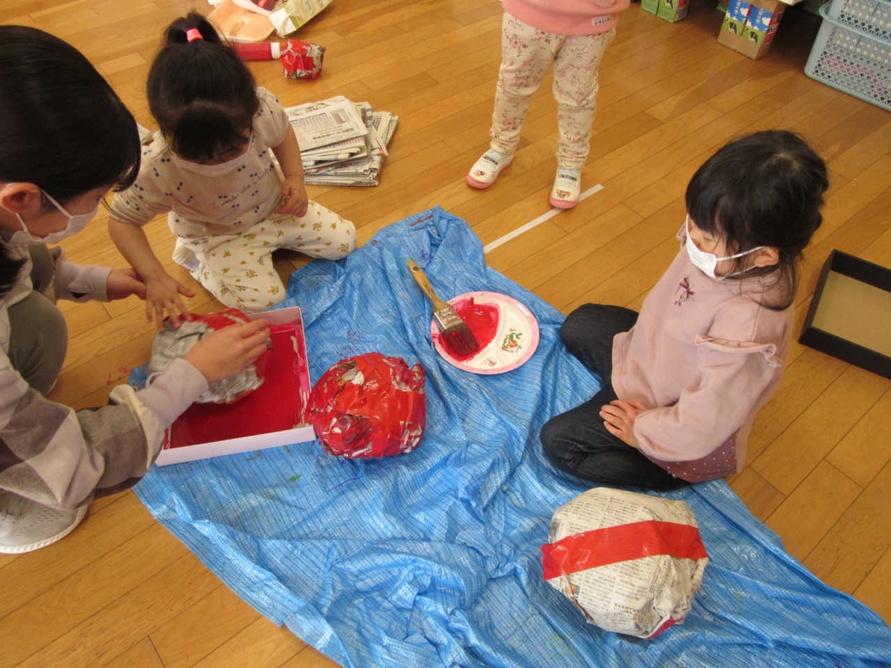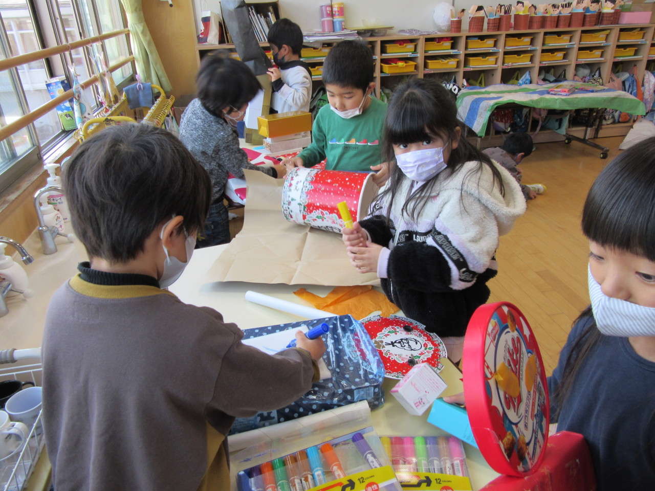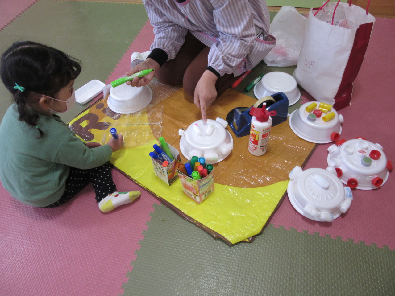 色々な廃材を見立てて、先生や友達と協力したり工夫したりと楽しんでいます。