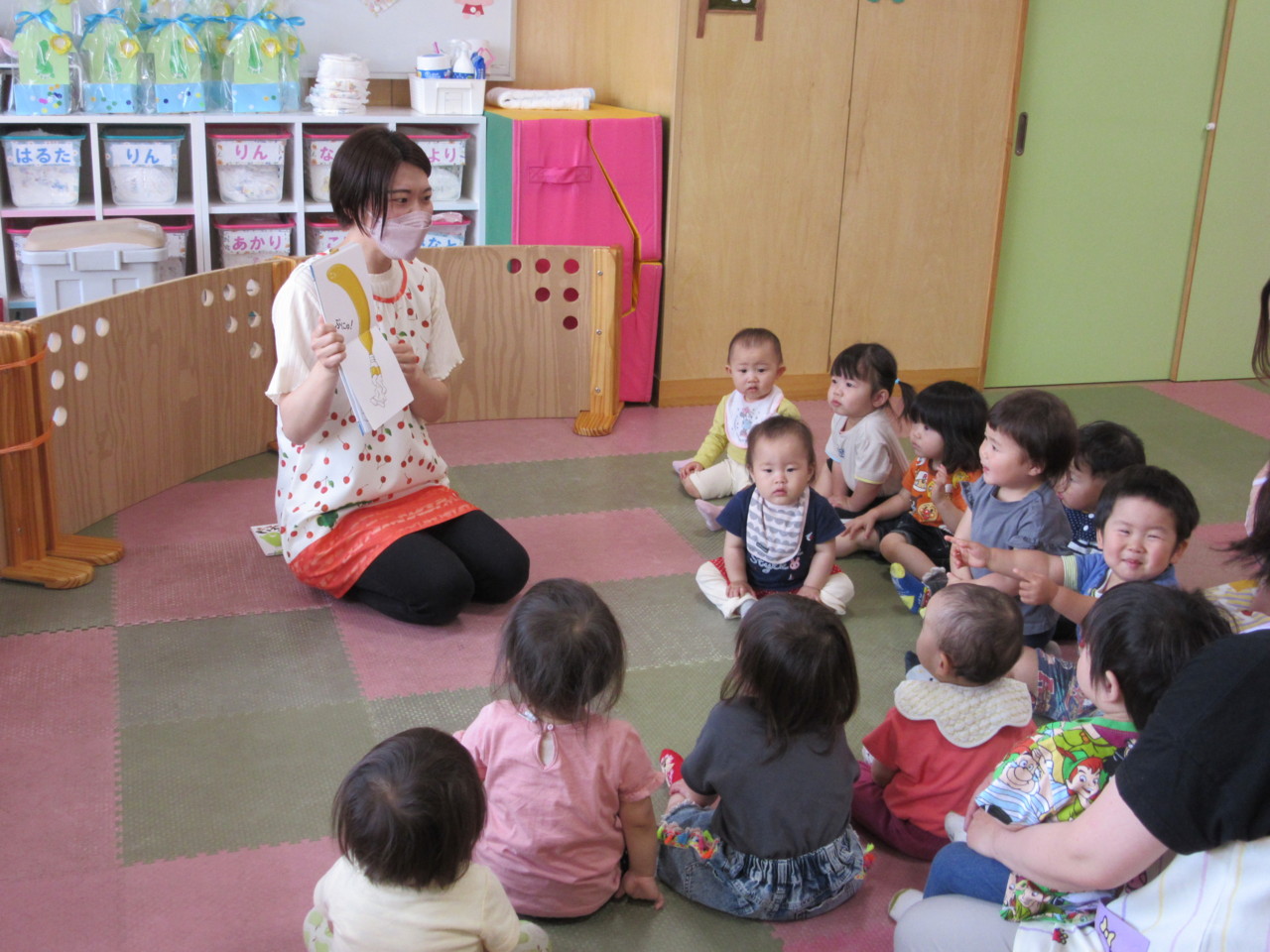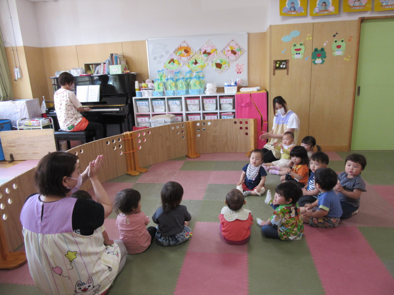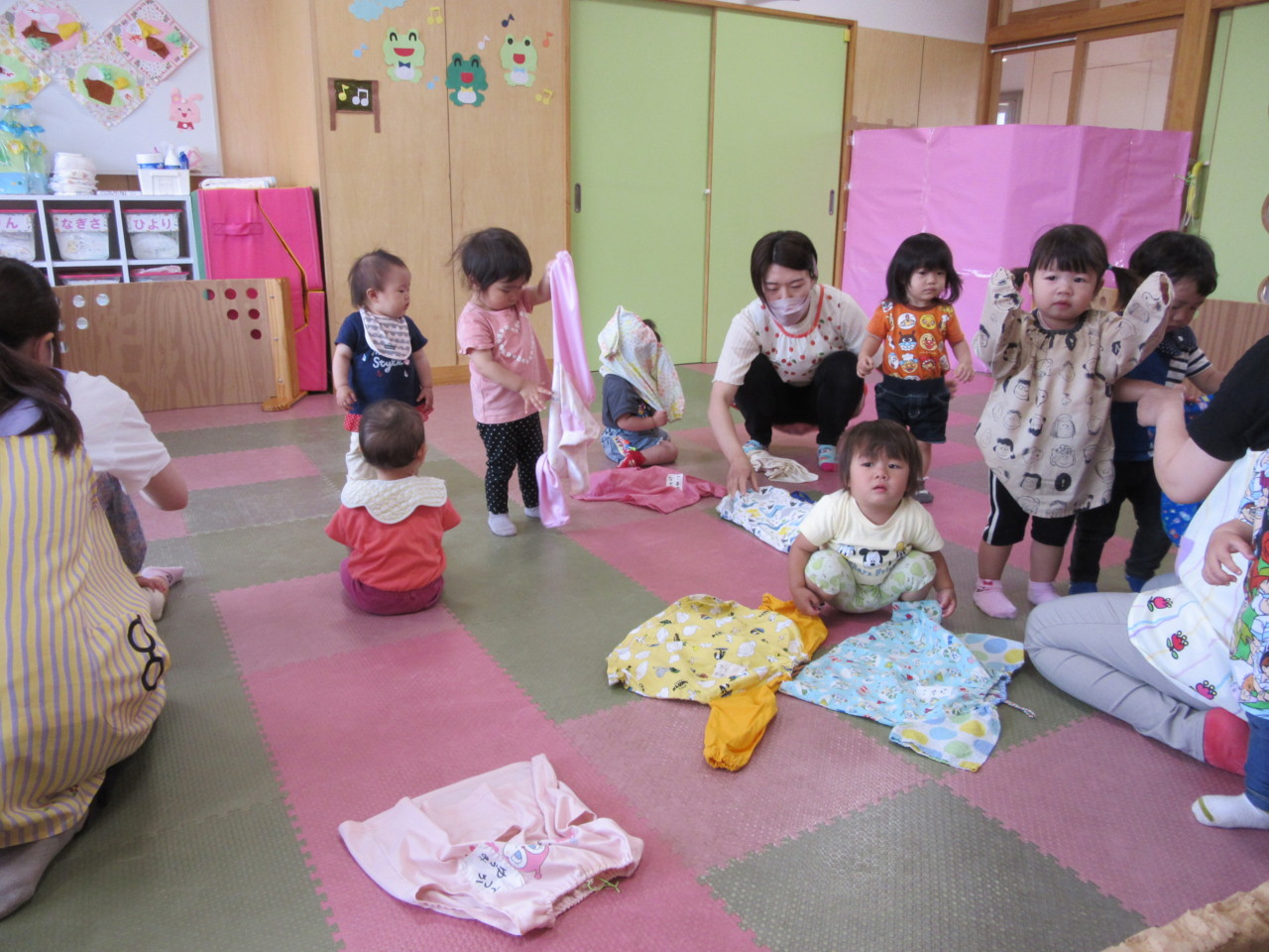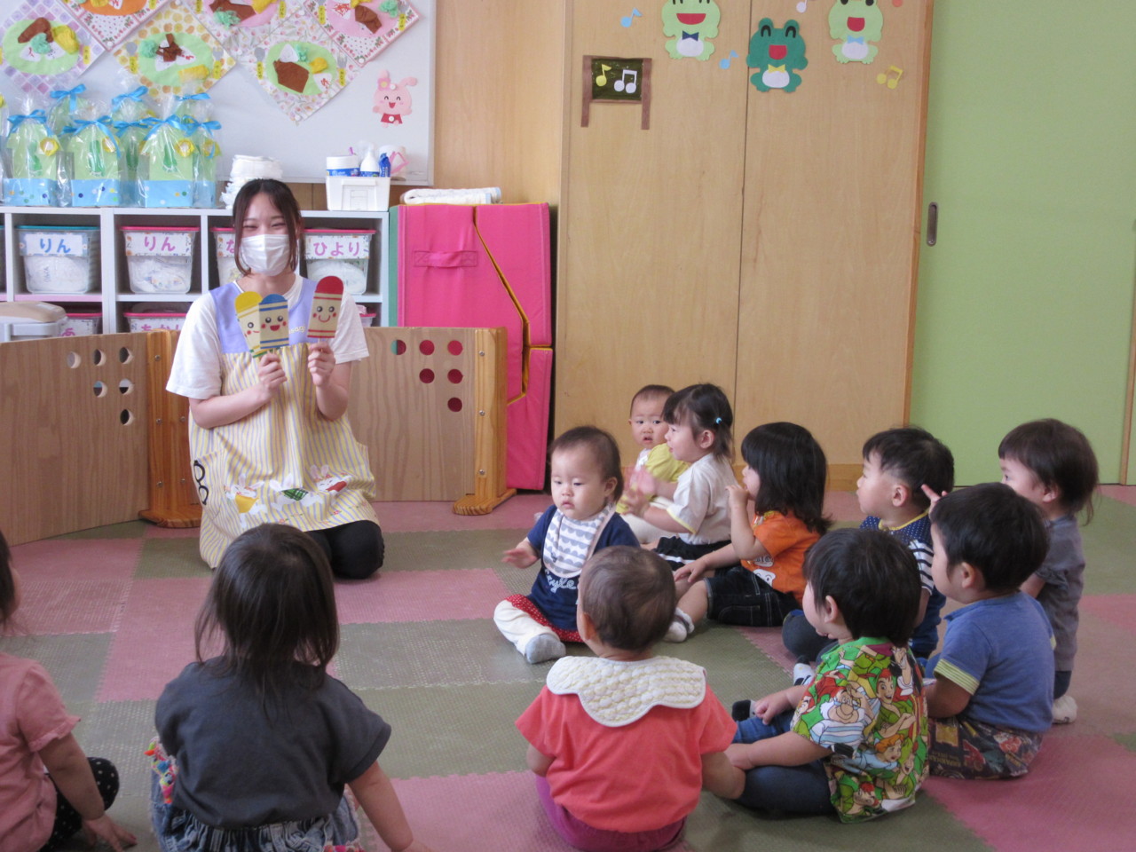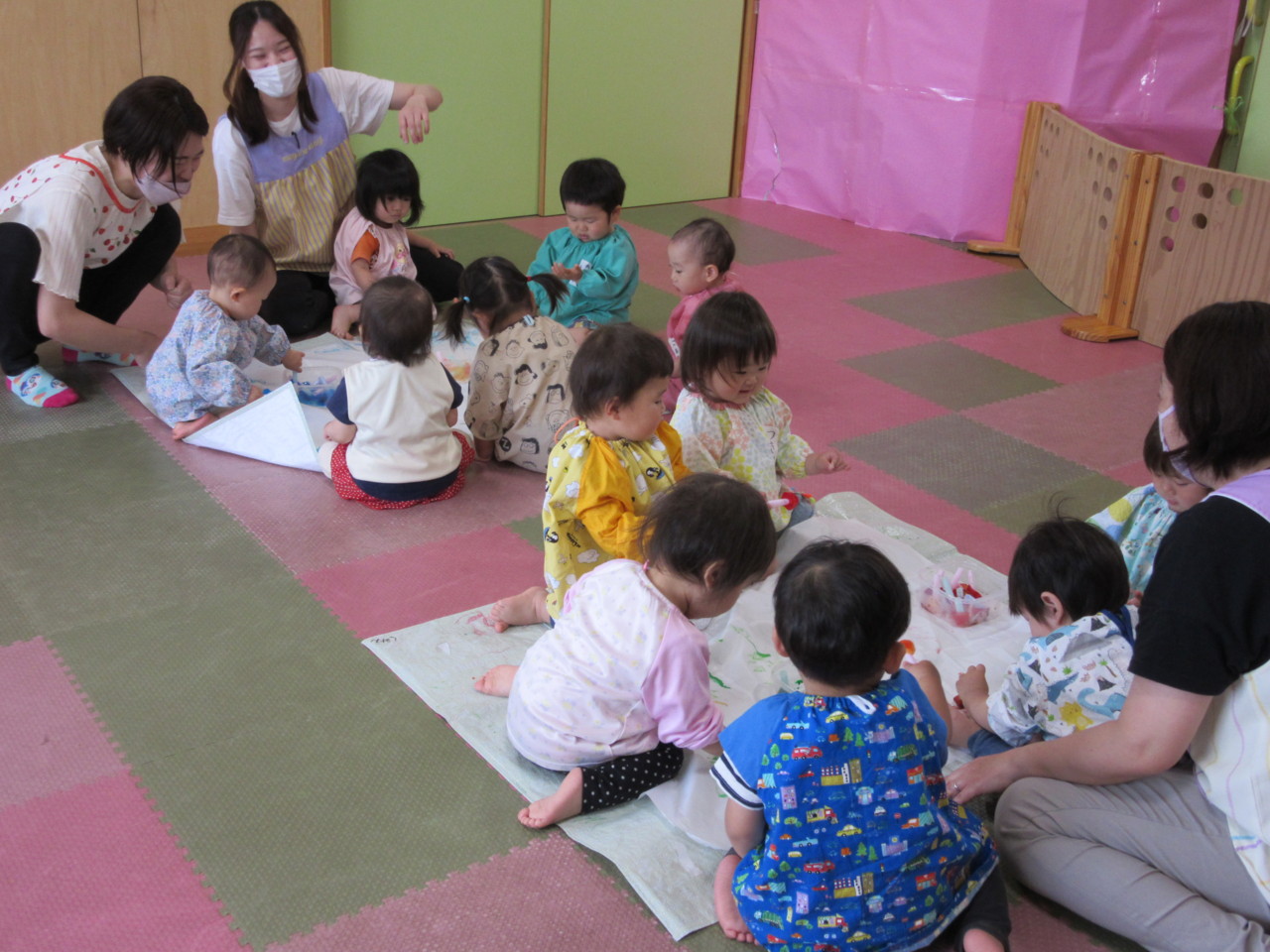 絵本や歌などで色に興味を持っている子ども達で、色付き氷でお絵描きを楽しみました。