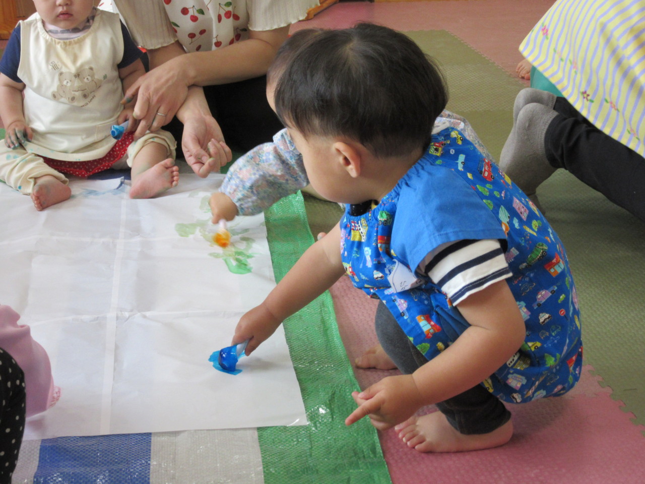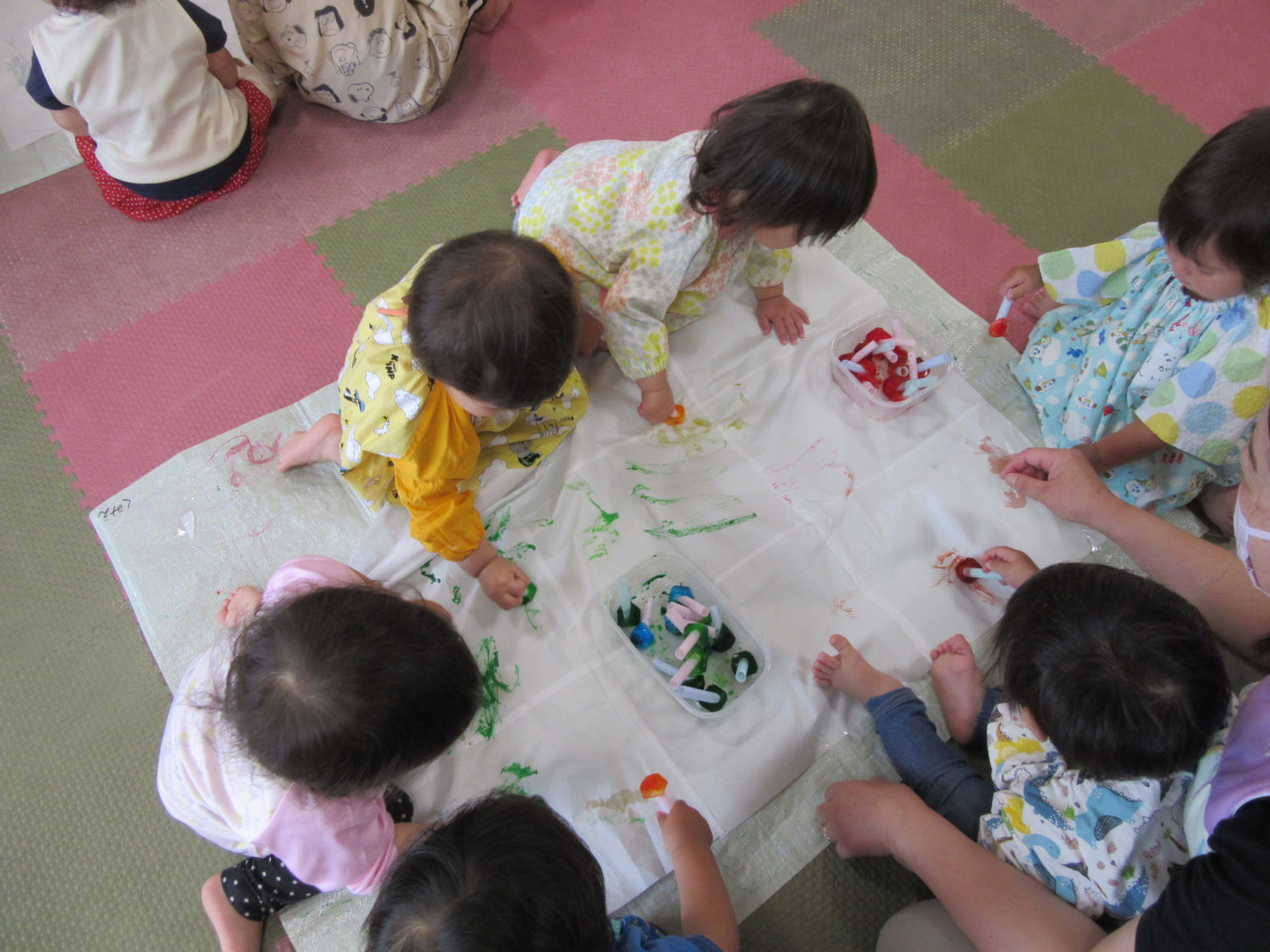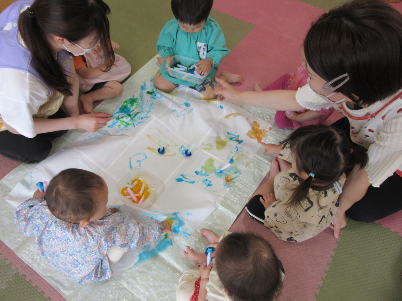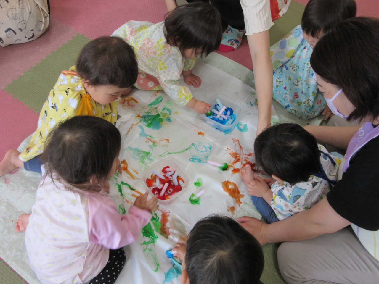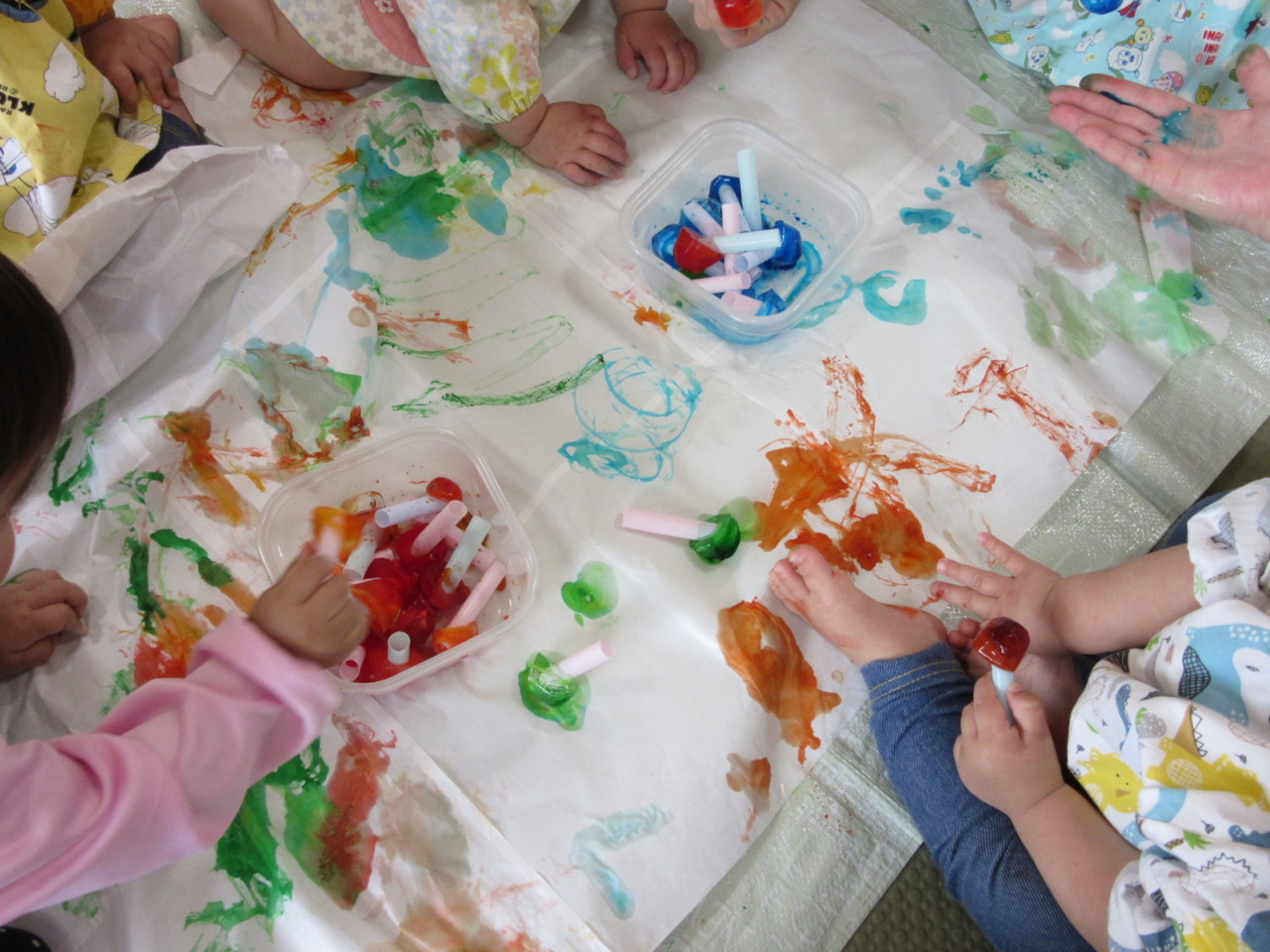お友達と一緒に、色氷遊びをしました。