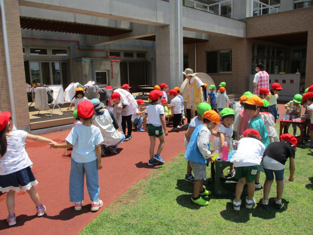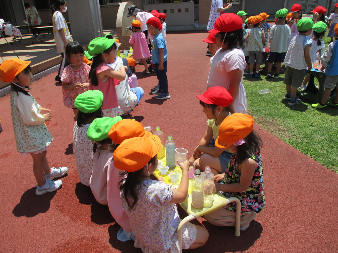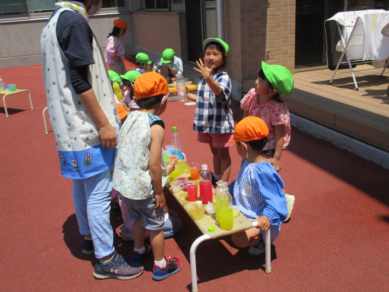 ジュース作り・色と色を混ぜ合わせでできる色の面白さ、そして途中からきりん組さんもお客さんとして