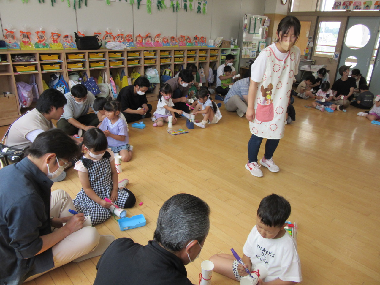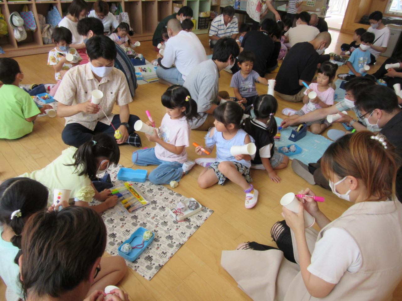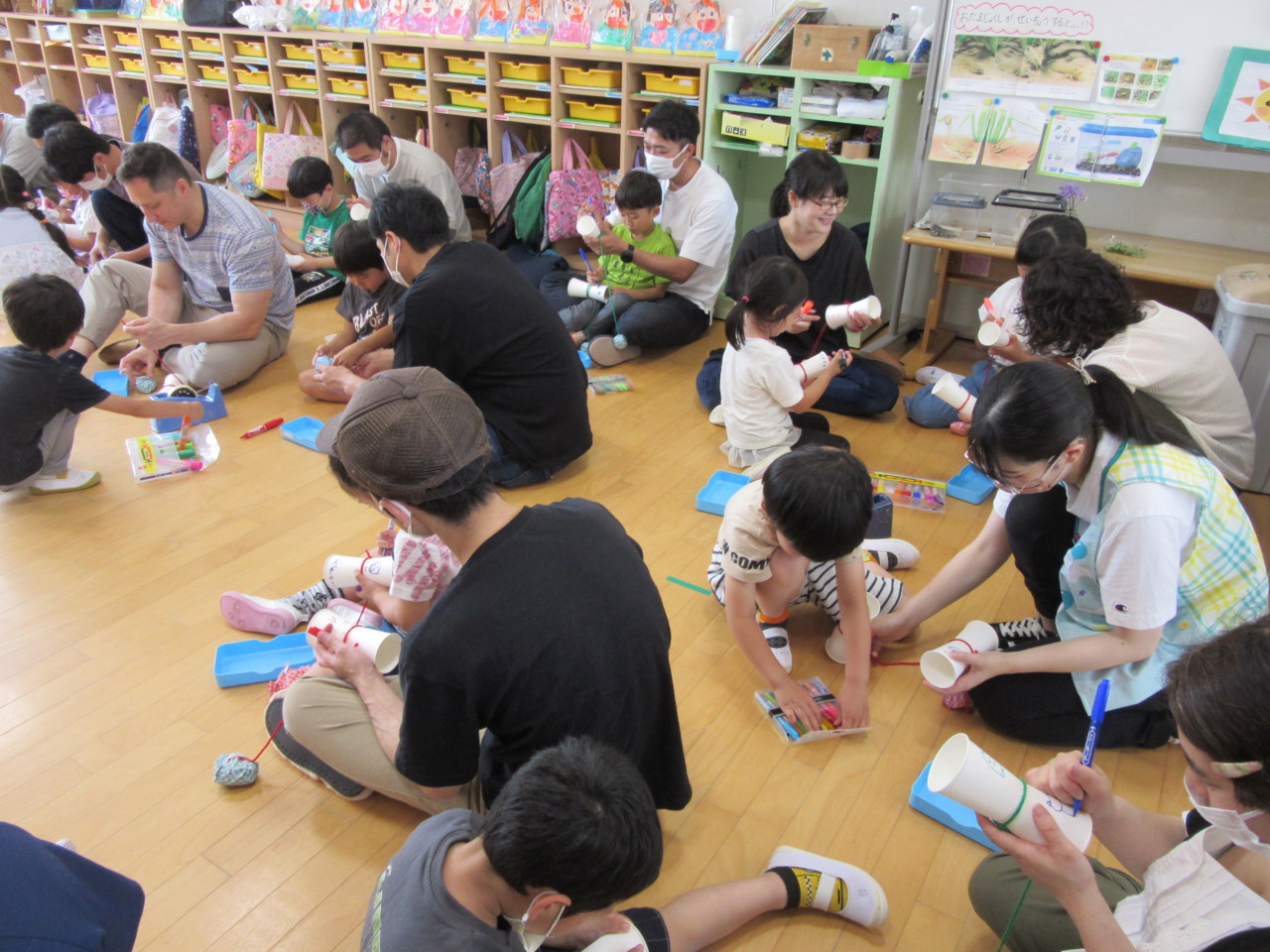 久しぶりの保育参観、園児たちも保護者の方々も楽しみにしており、一緒に作ったり触れ合ったりとお家の方々との触れ合いを楽しみました。