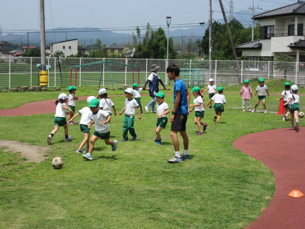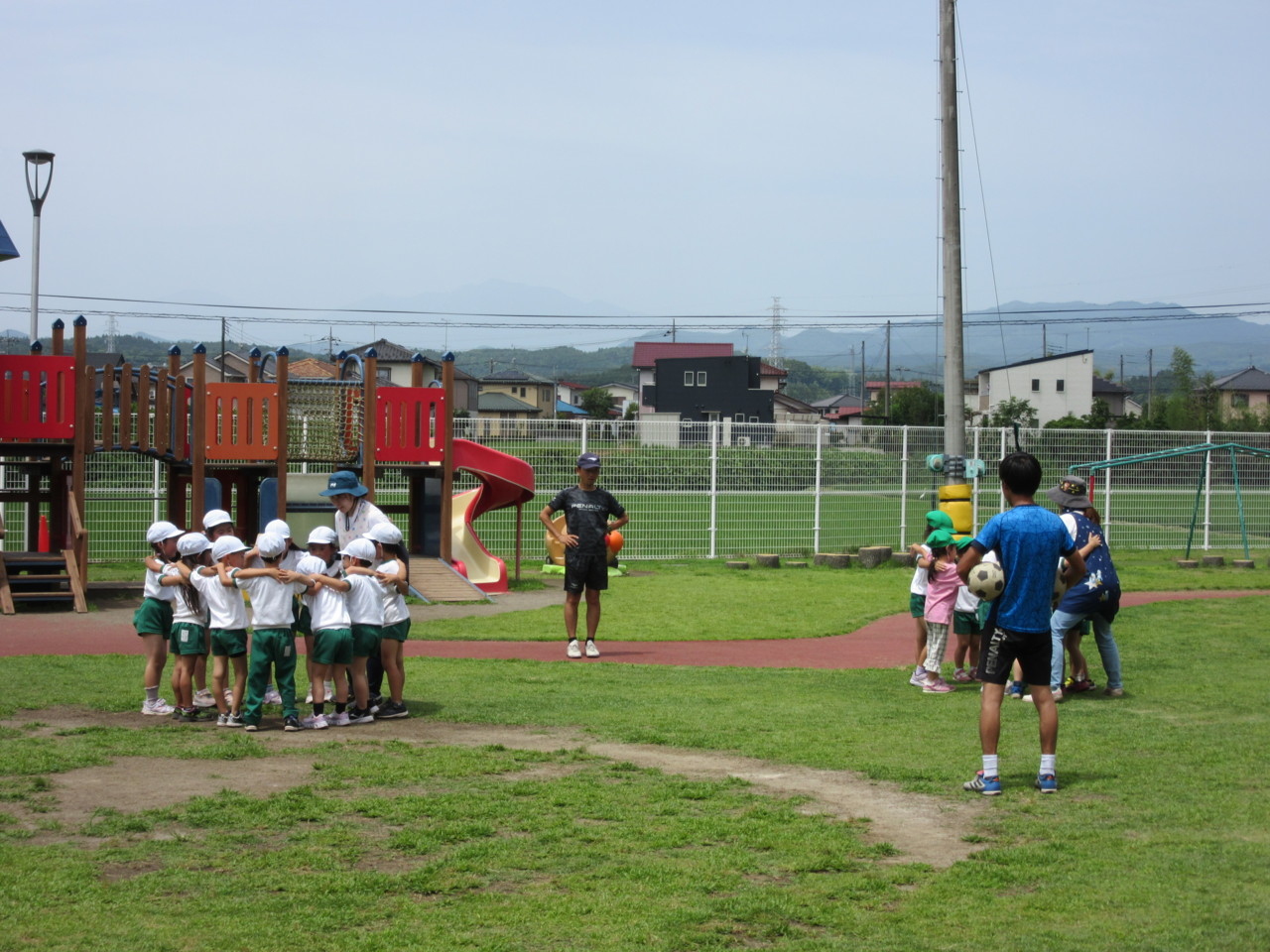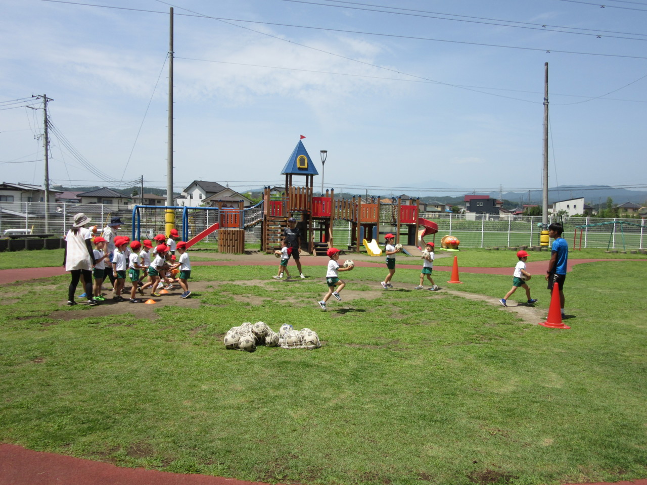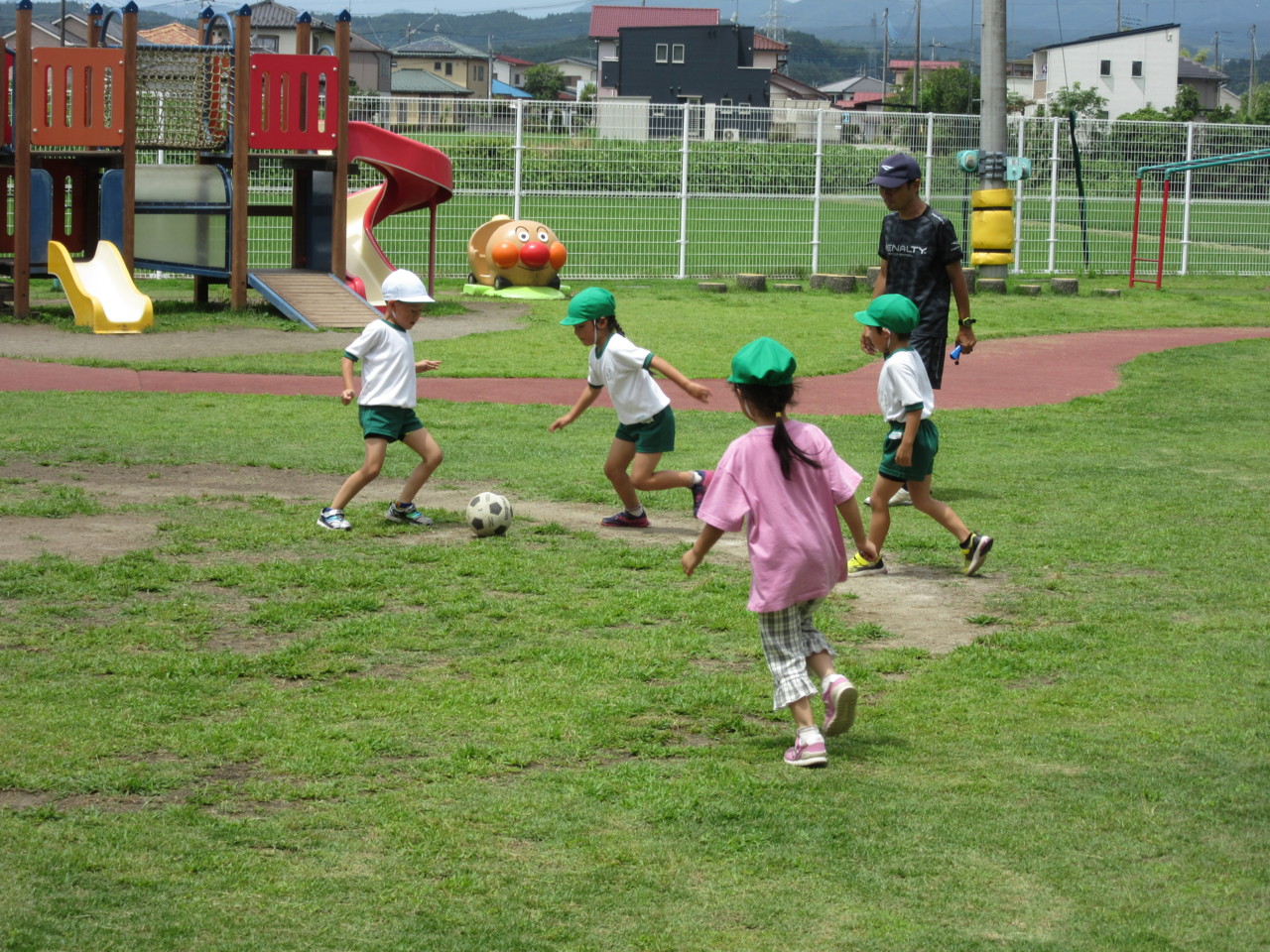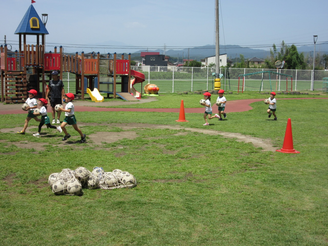 暑さにも負けず、ボールを追い、ルールも分かってきて、自分のチーム・敵チームを意識し、競争心を持ってゲームなども楽しめるようになってきました。