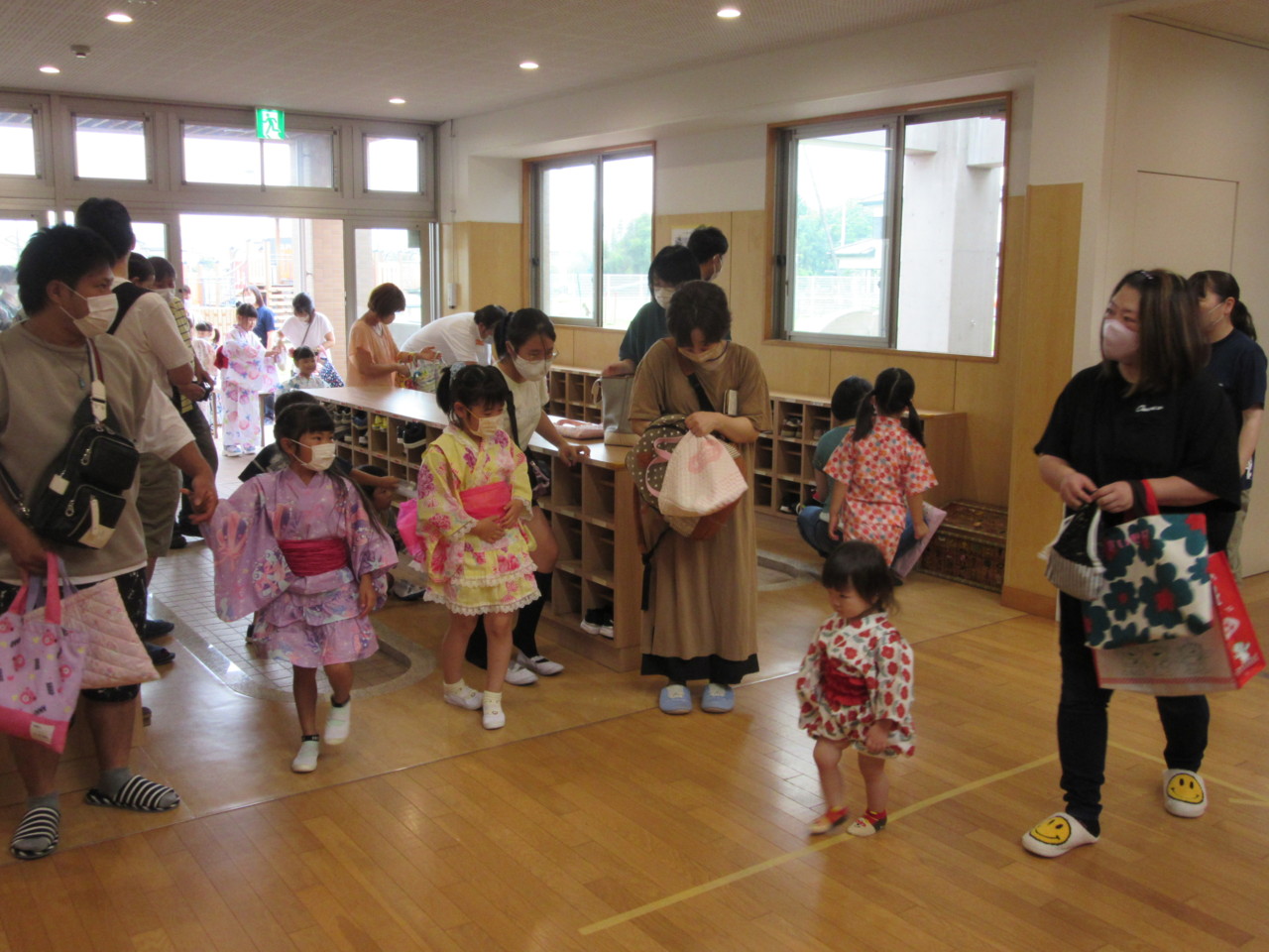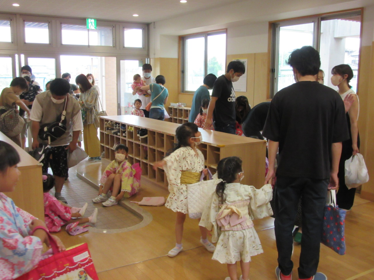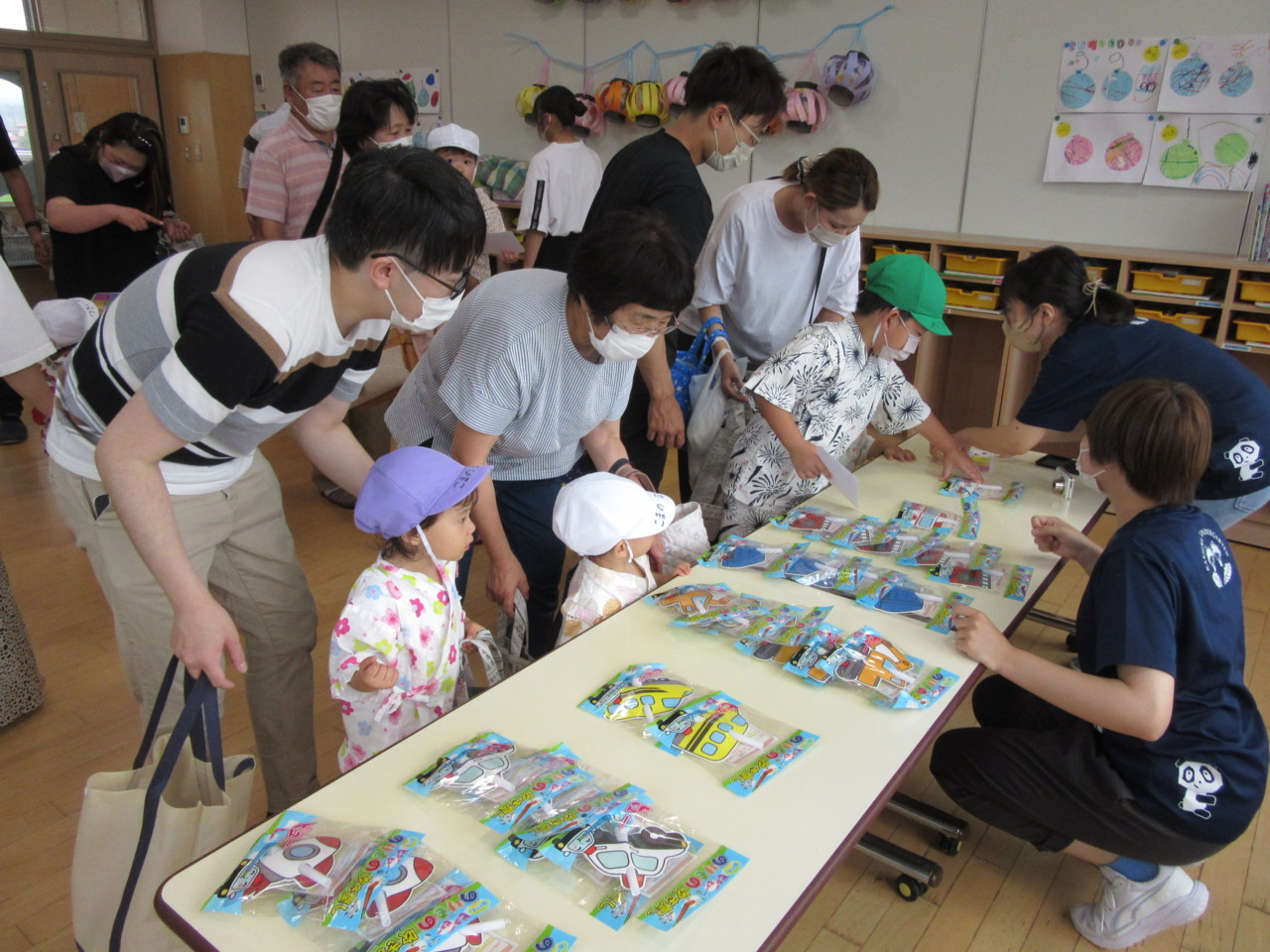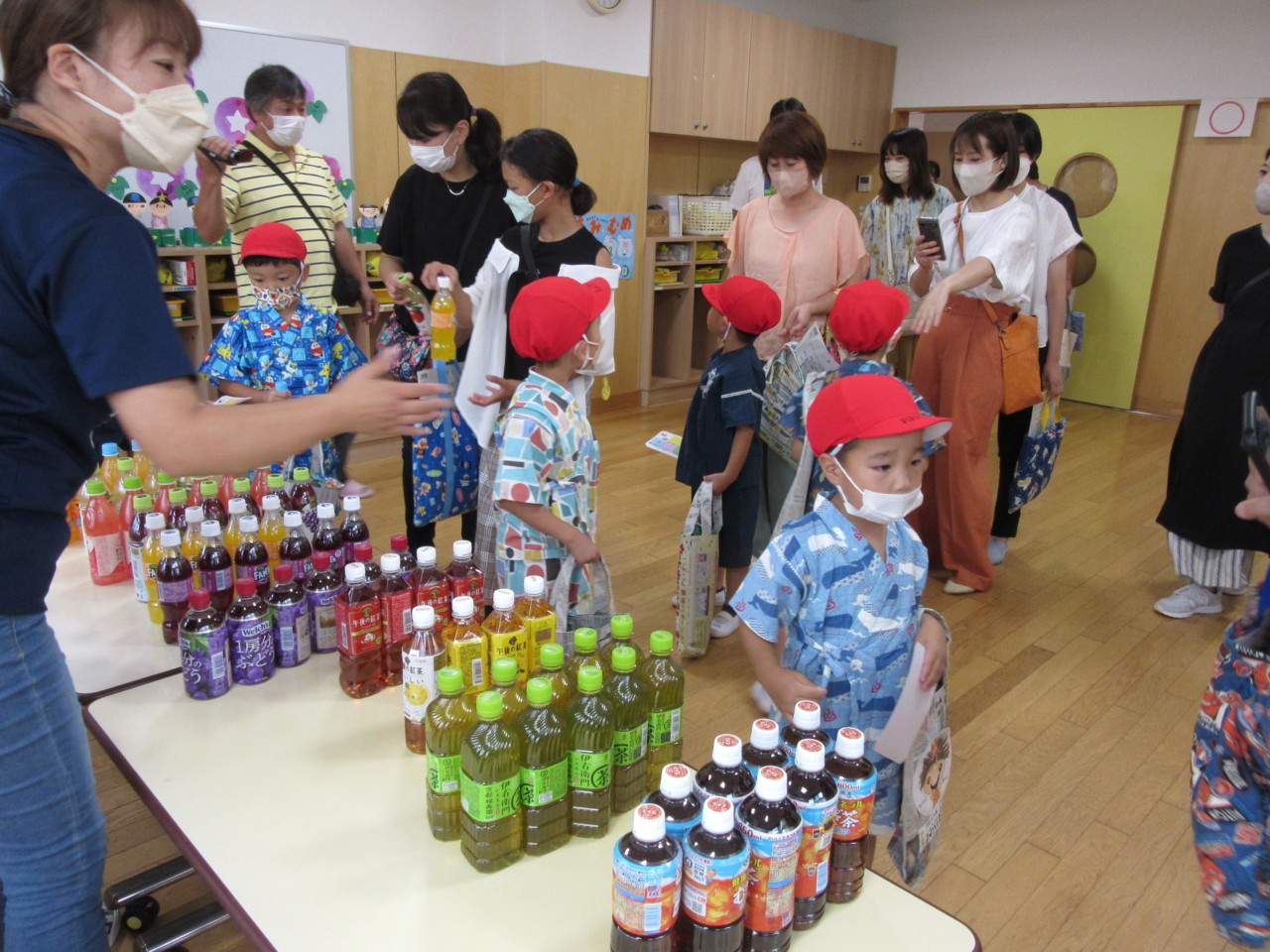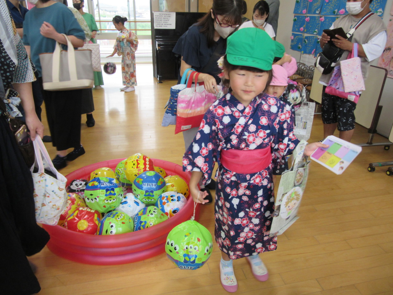 あいにくの天気の為、園舎内での実施となりましたが、親子で模擬店巡り・音頭・ゲームなどを楽しんでいただきました。