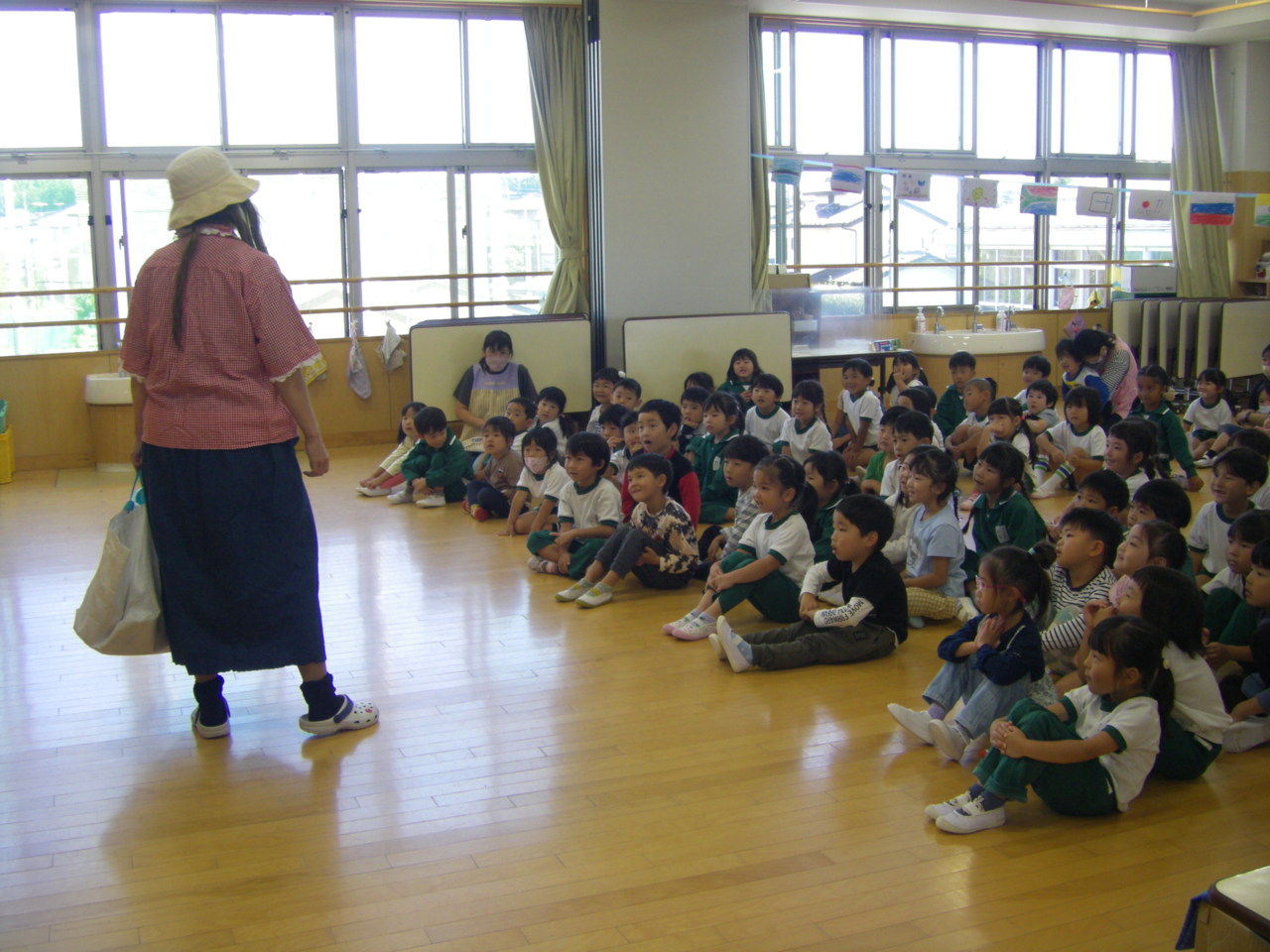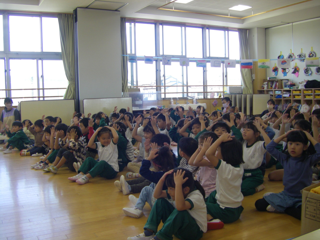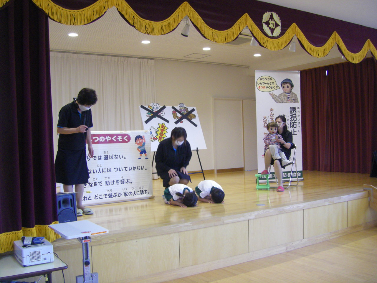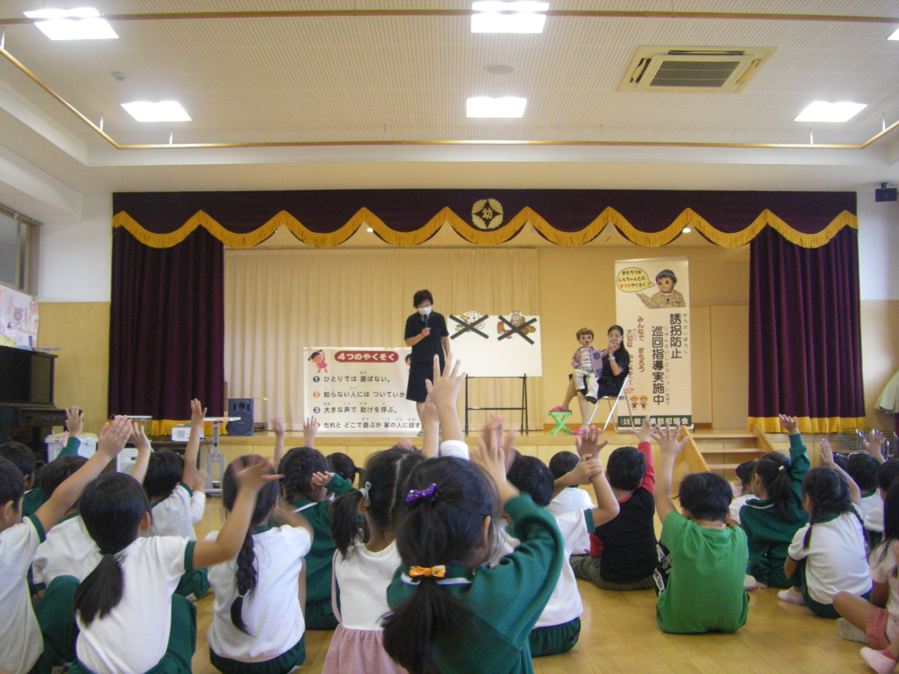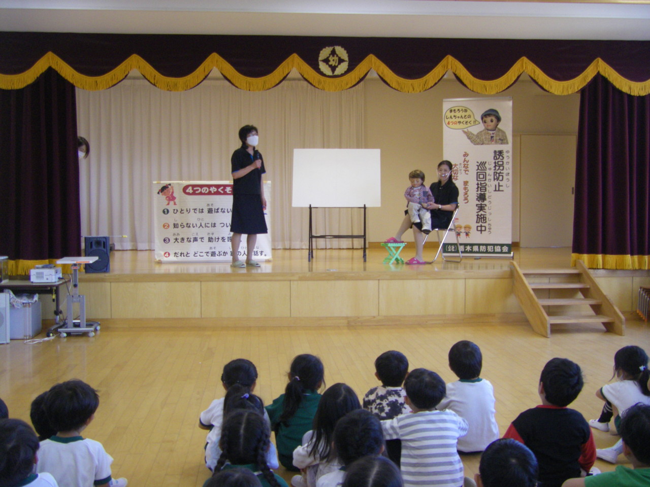 栃木県防犯協会のご指導の下、きりん・うさぎ組が防犯教室を行いました。