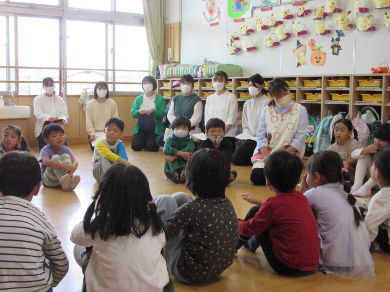 地区の新規採用の先生方が来園し保育の様子を見て、研修を深めました。