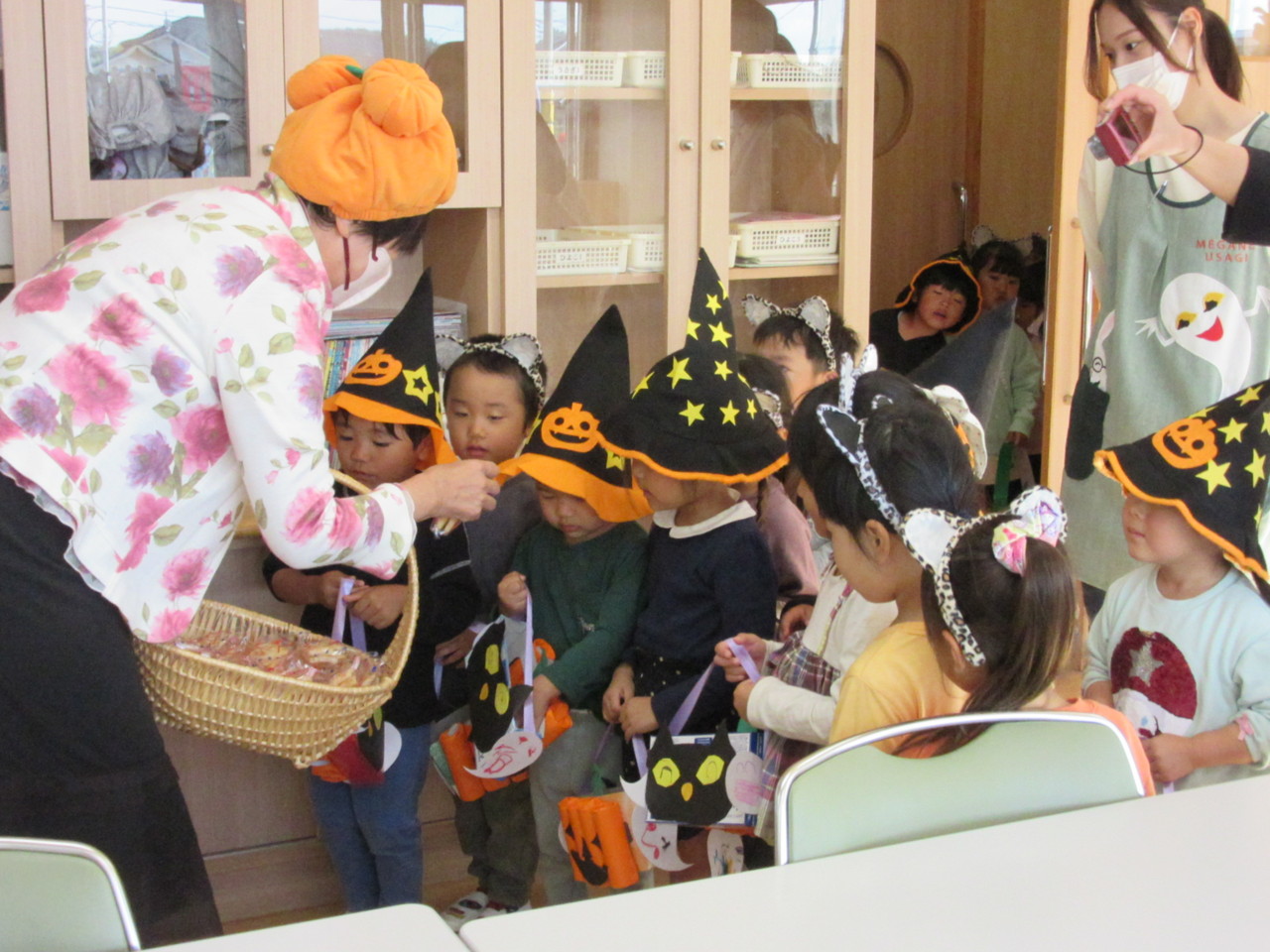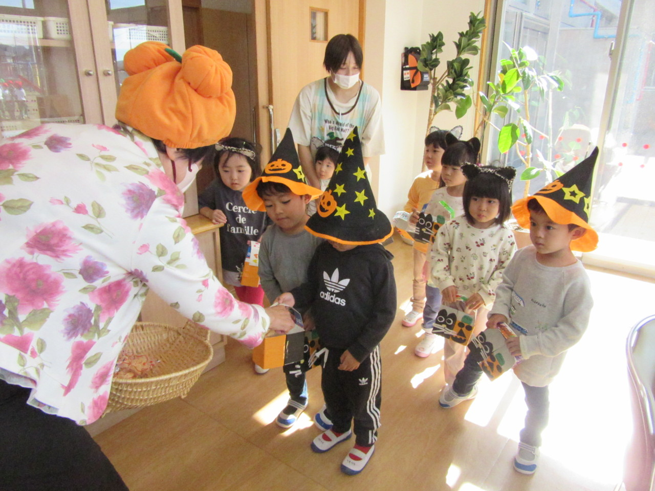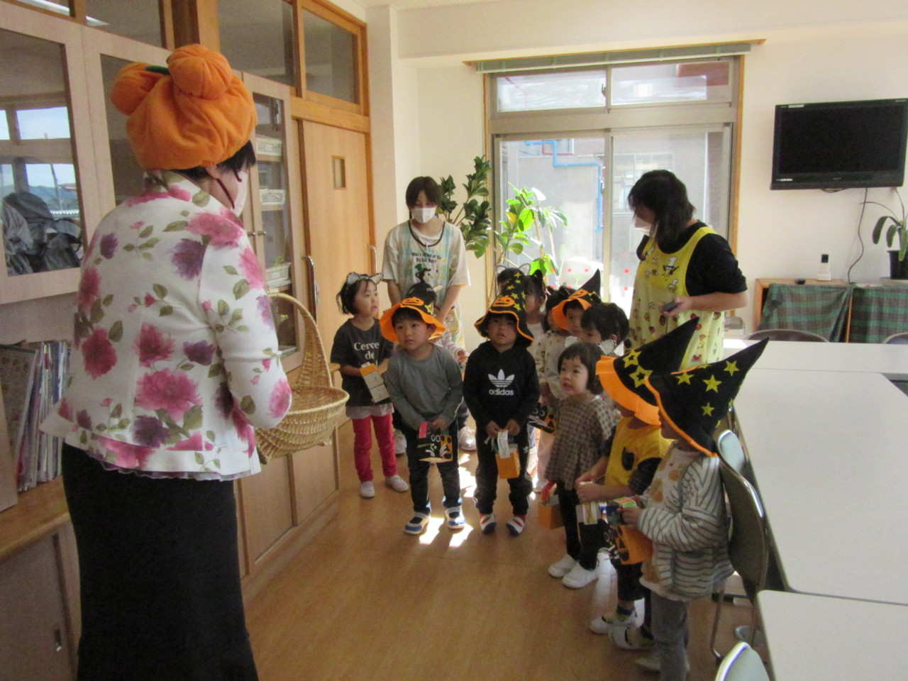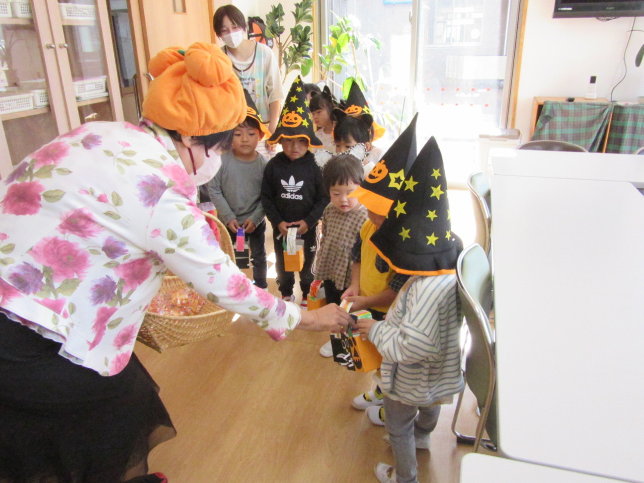 ひよこ組で先生や友達とハロウィンパーティーをして楽しみました。