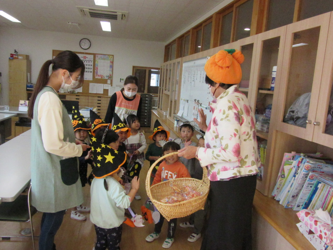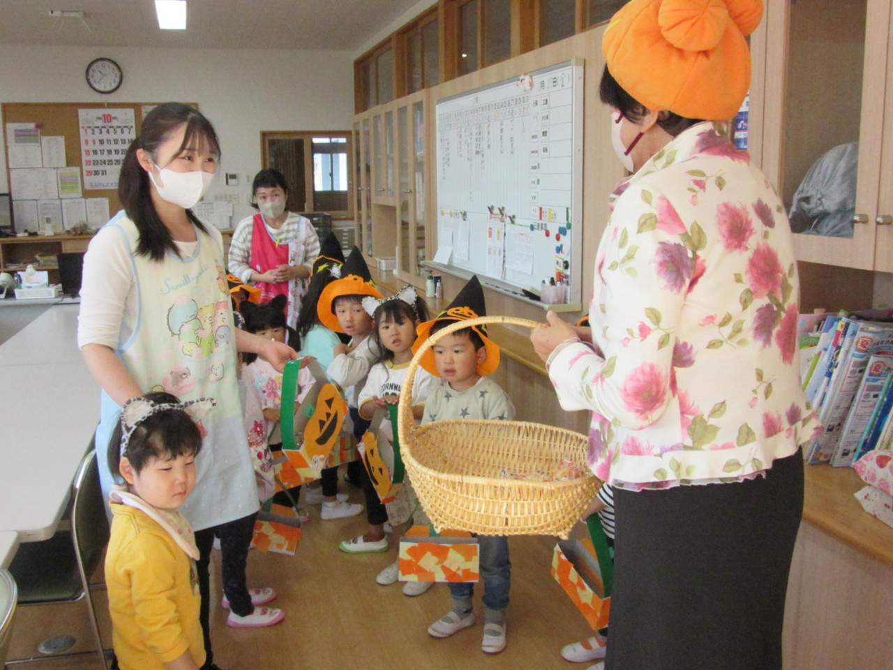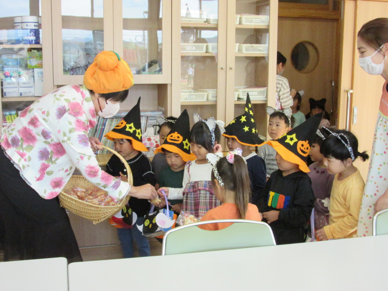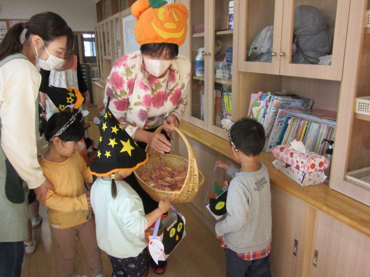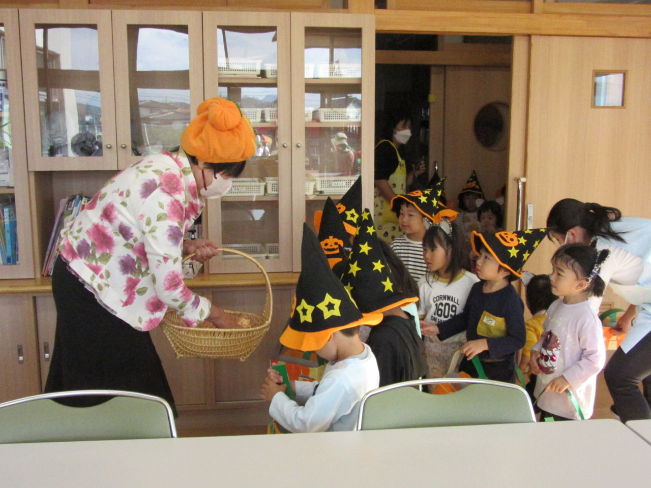 ひよこ組で先生や友達とハロウィンパーティーをして楽しみました。