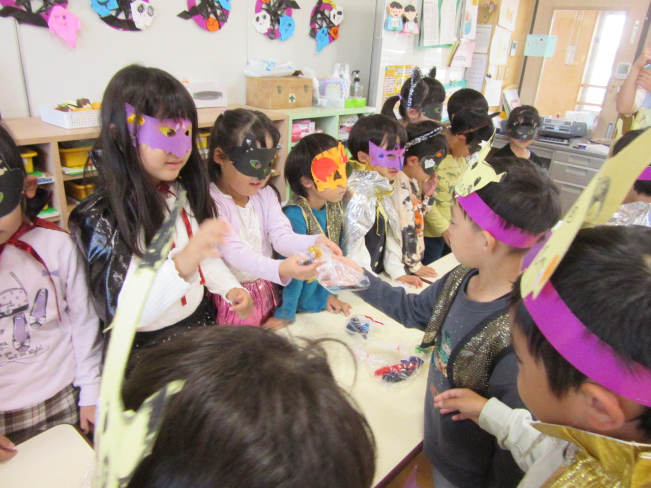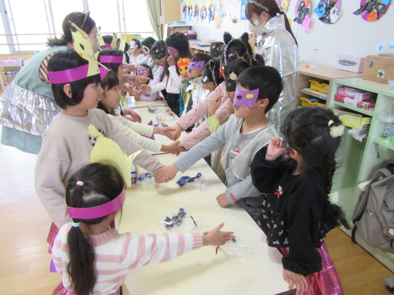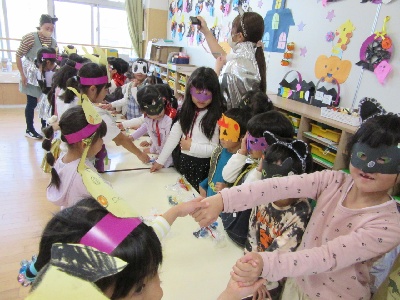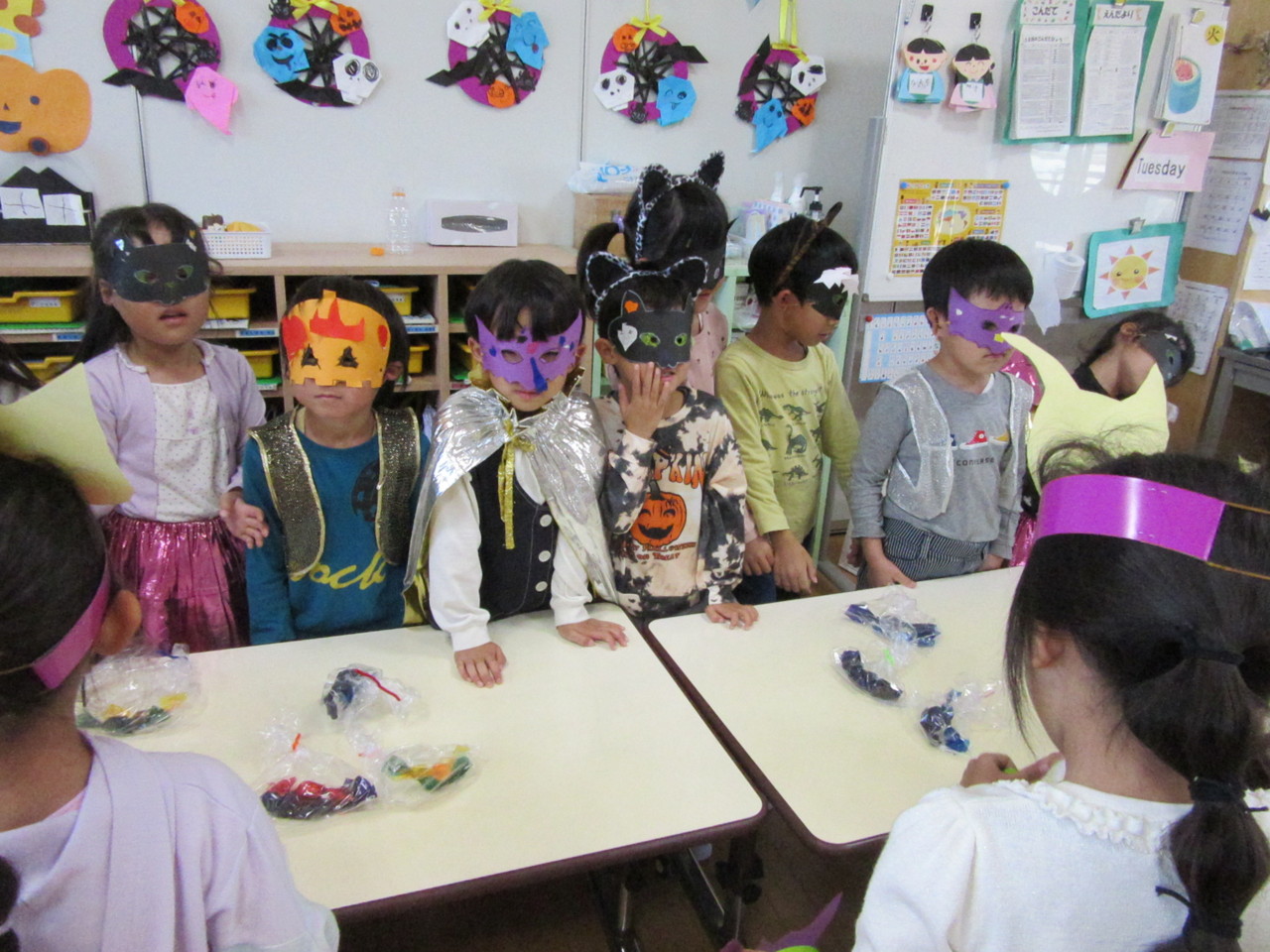 先生や友達と仮想やゲームなどをしてハロウィンを楽しみました。