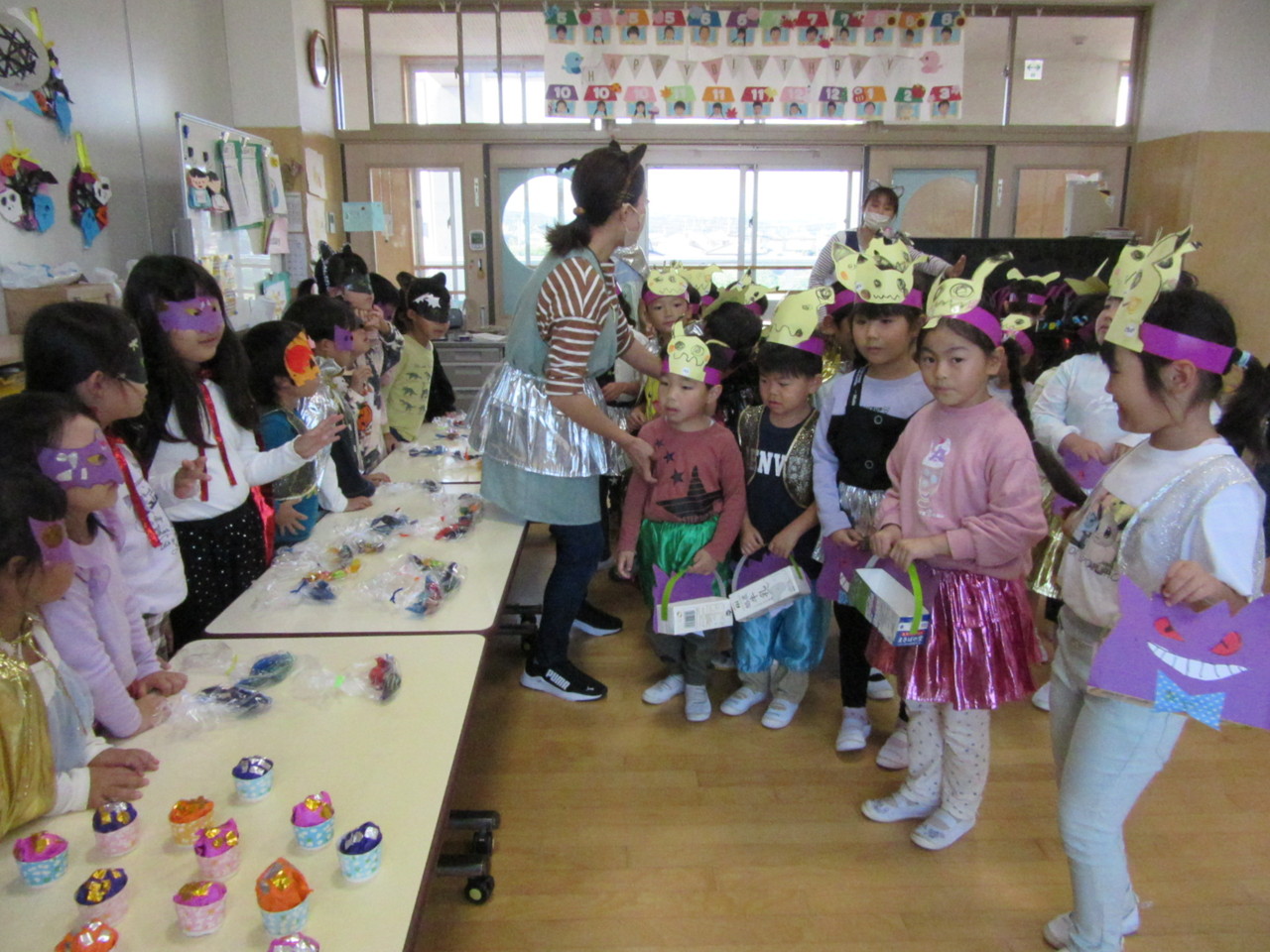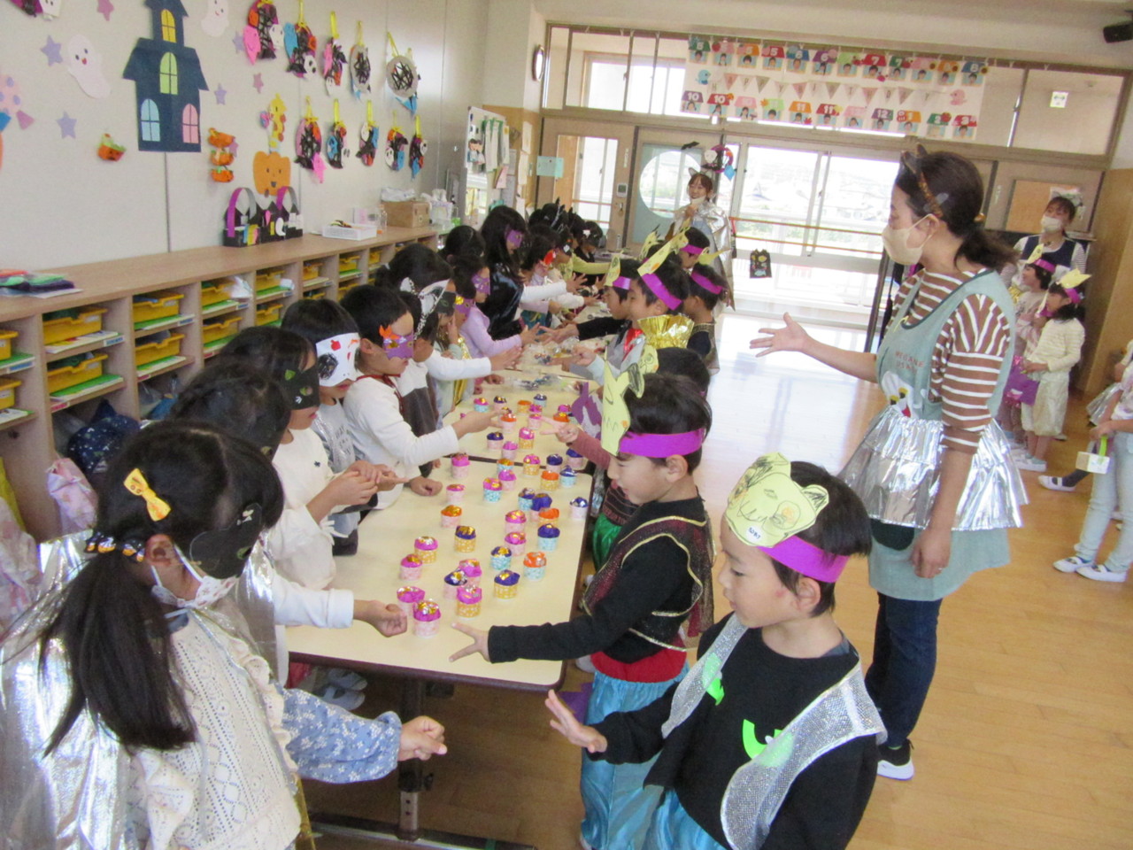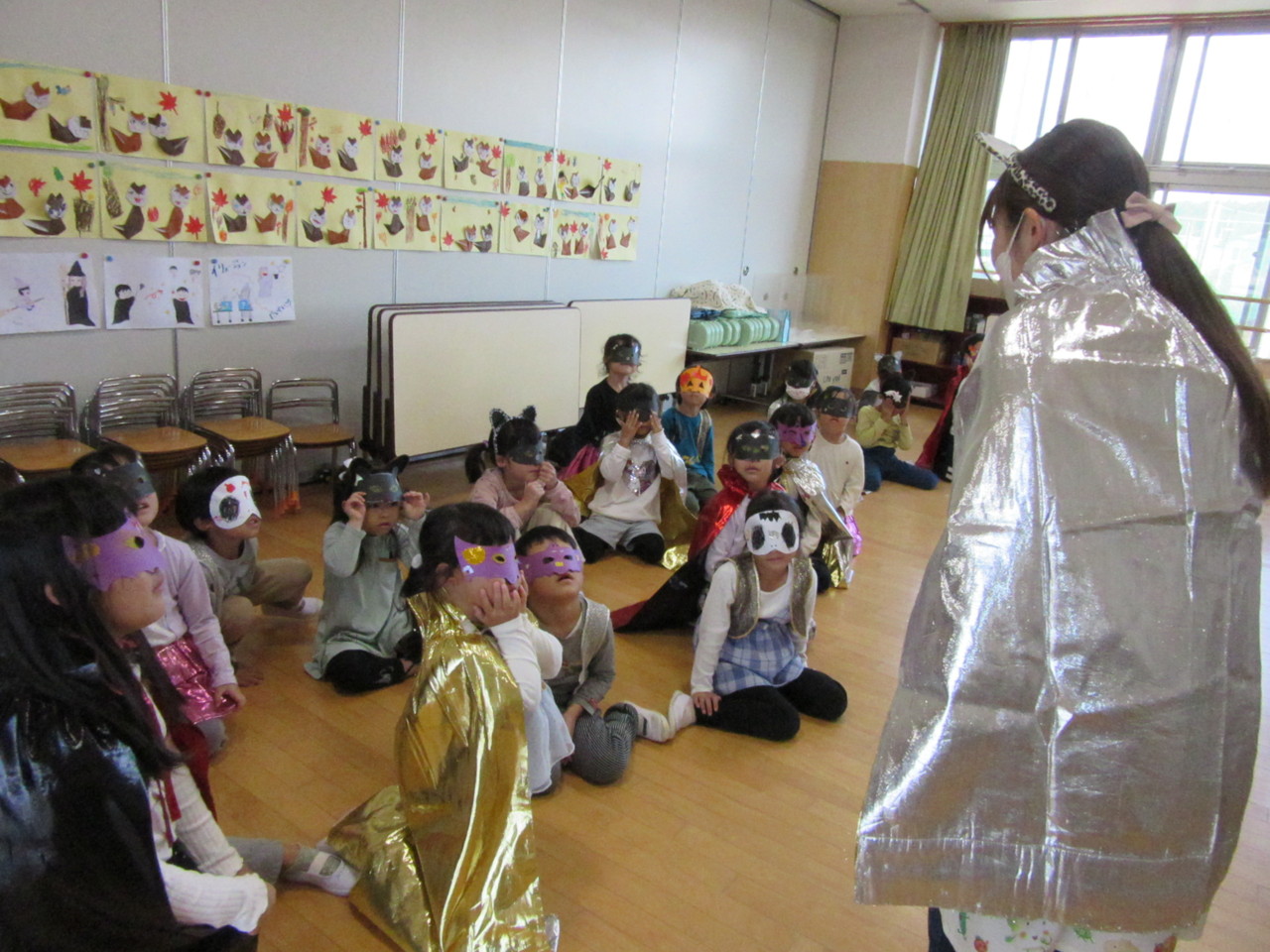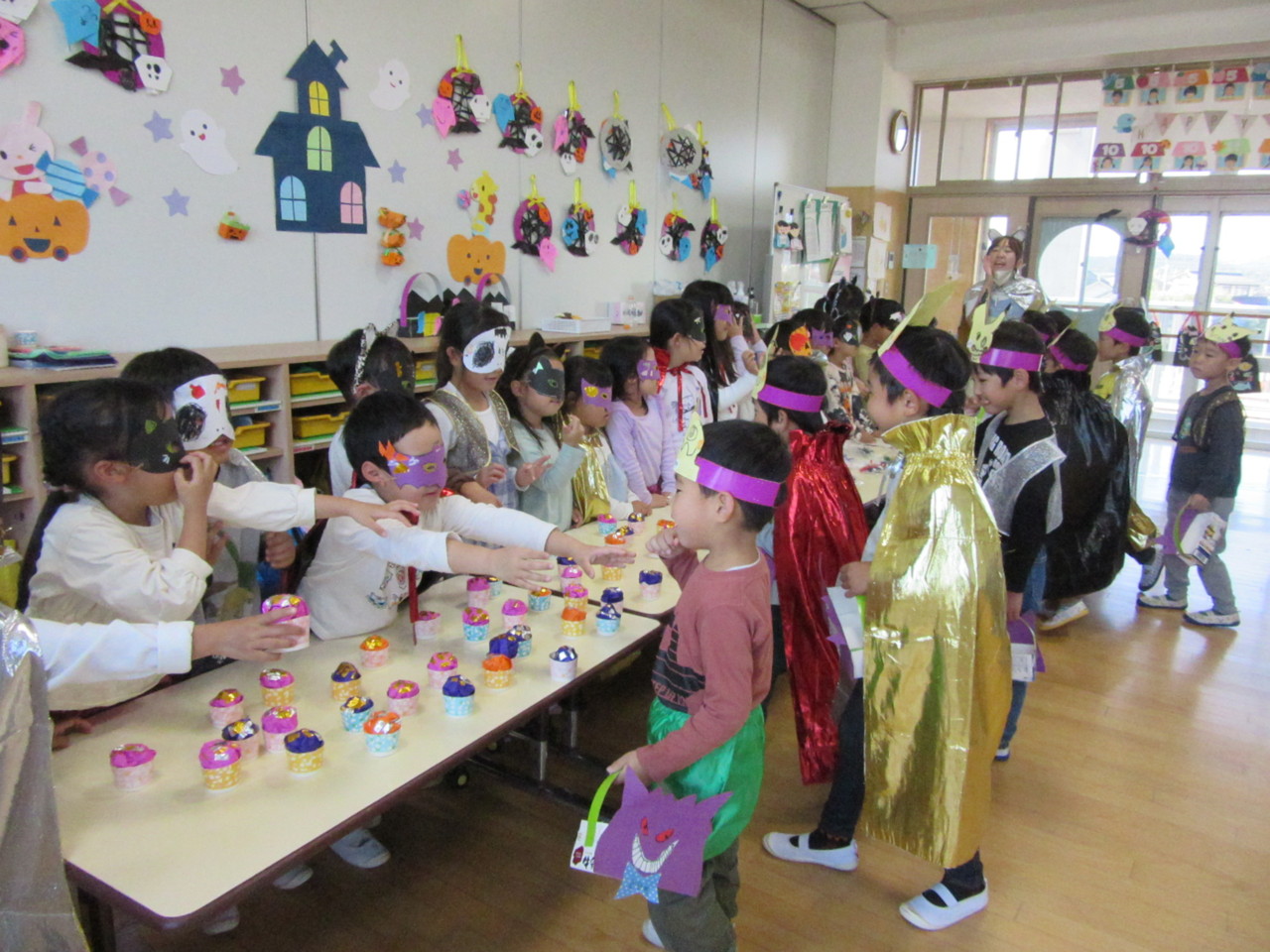 先生や友達と仮想やゲームなどをしてハロウィンを楽しみました。