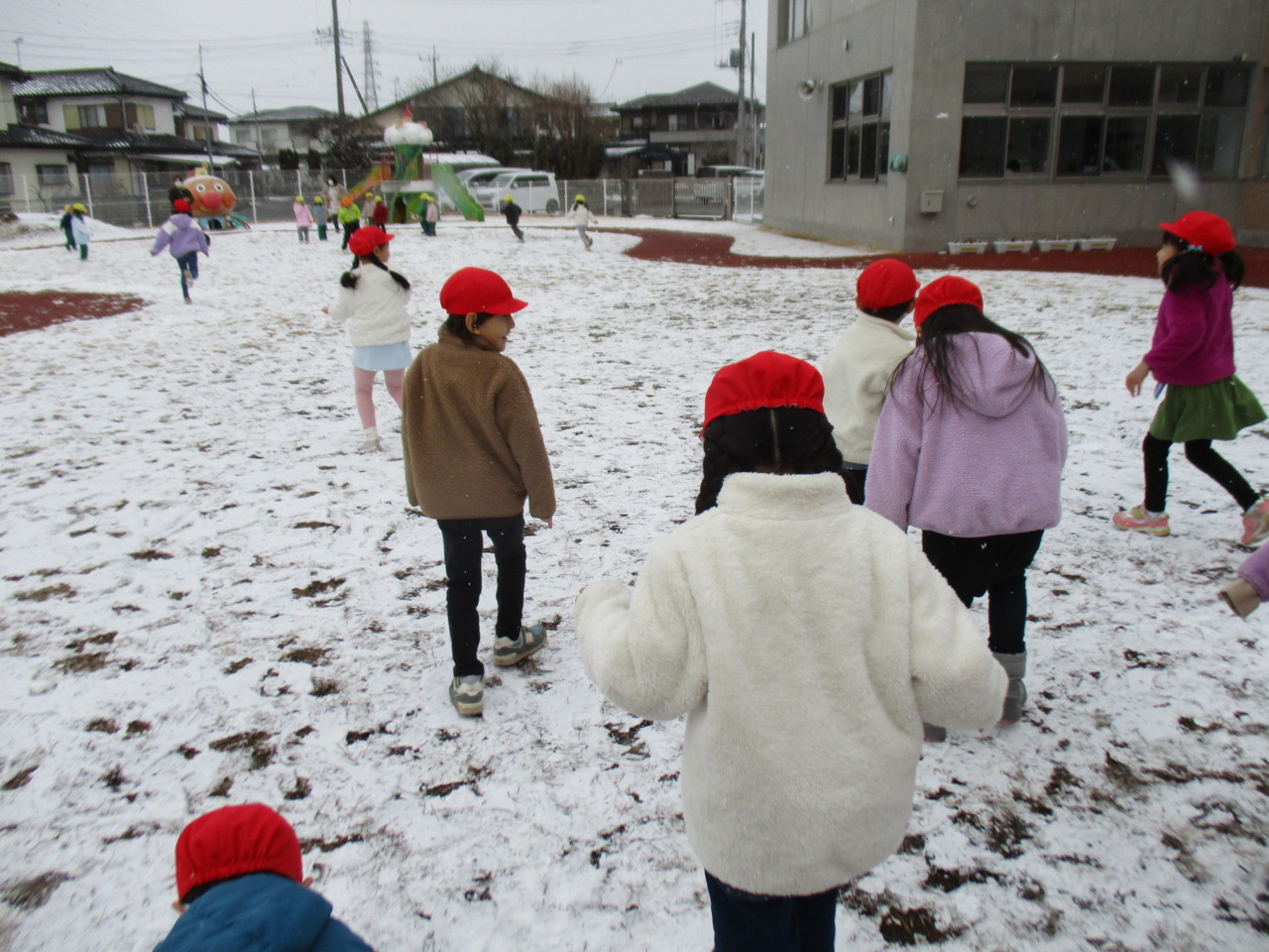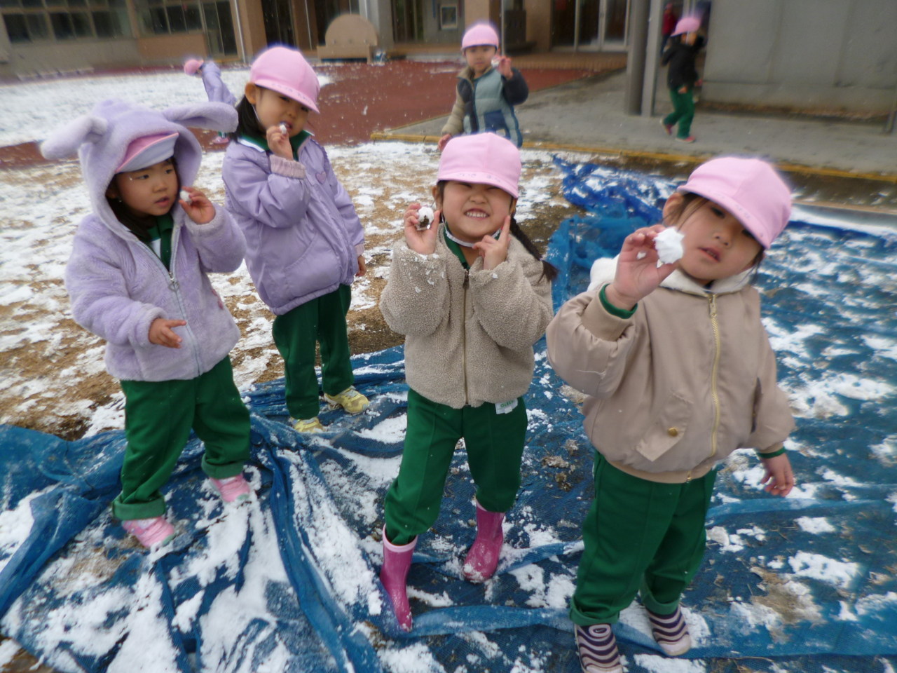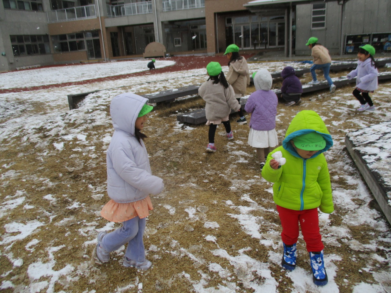 園庭にも雪がうっすらと積り、子どもたちは大喜び・・・