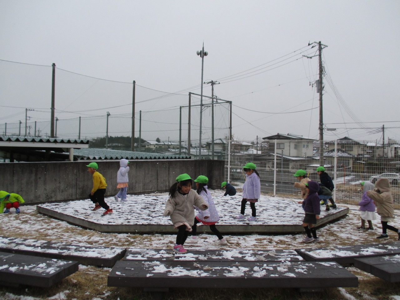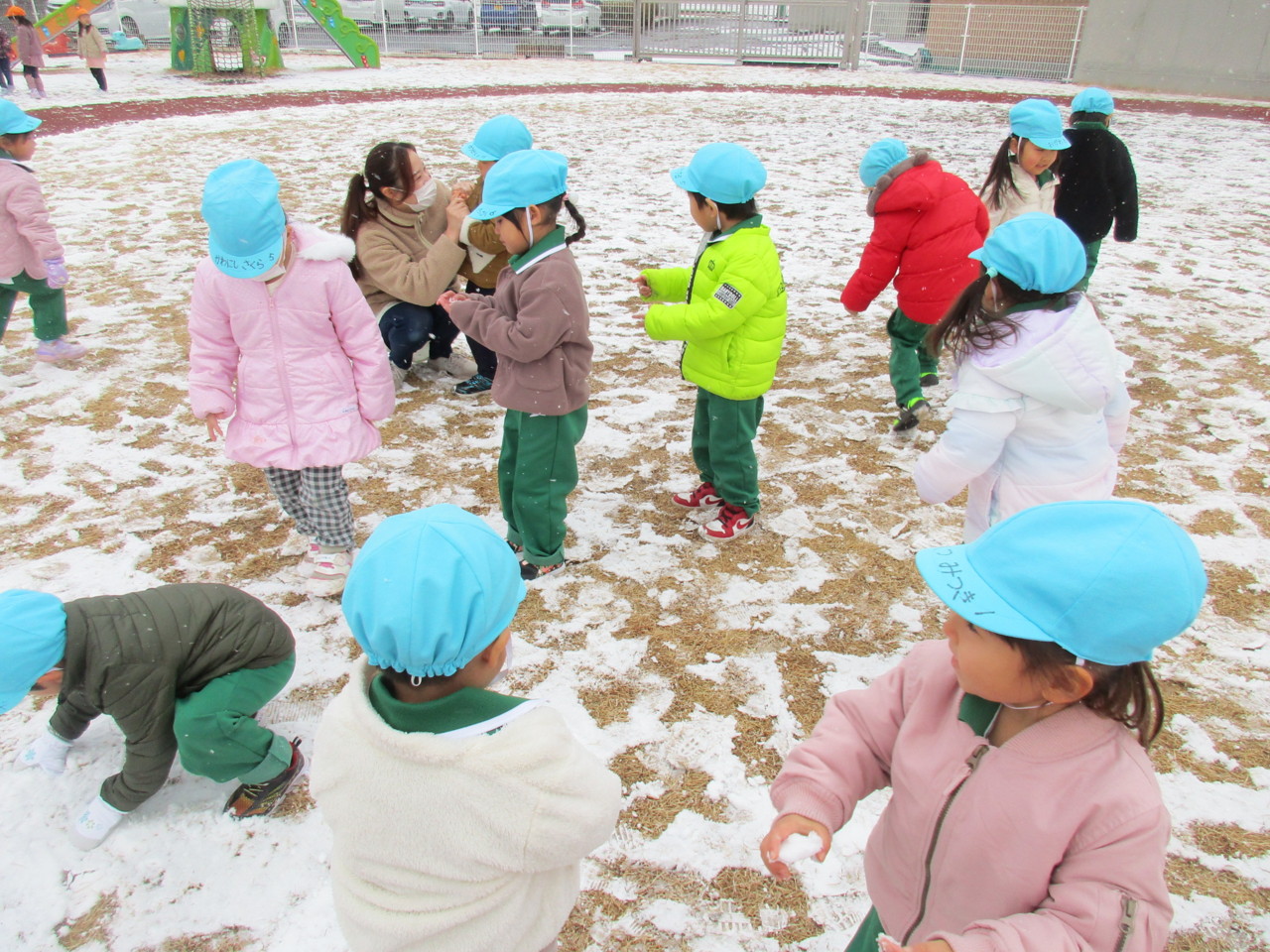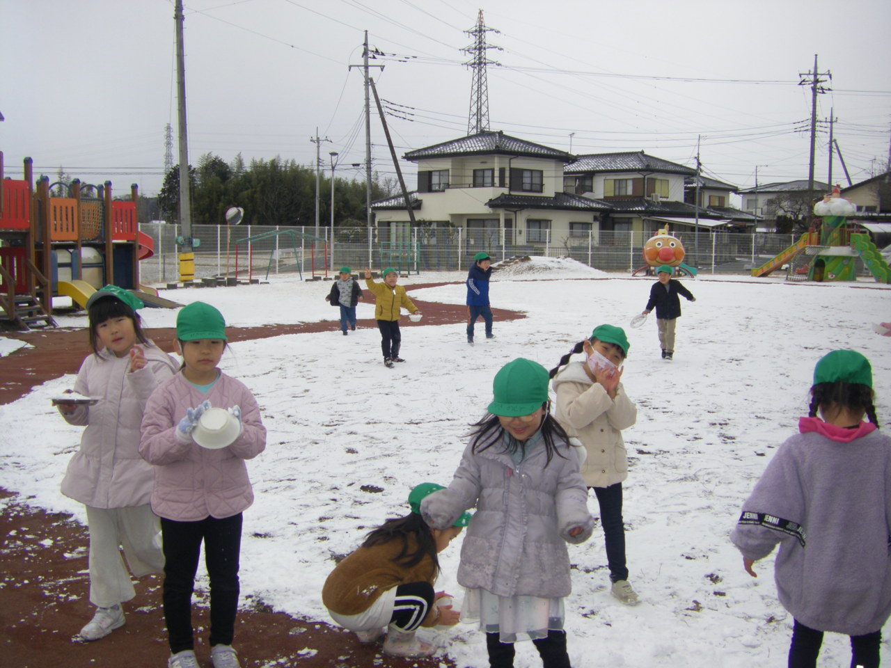 園庭にも雪がうっすらと積り、子どもたちは大喜び・・・