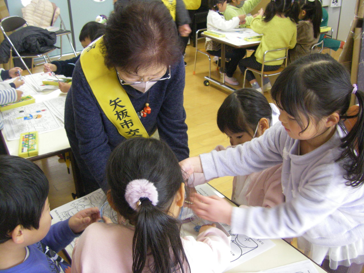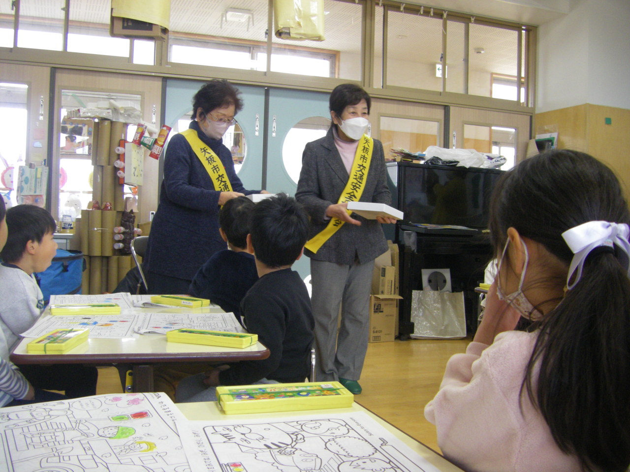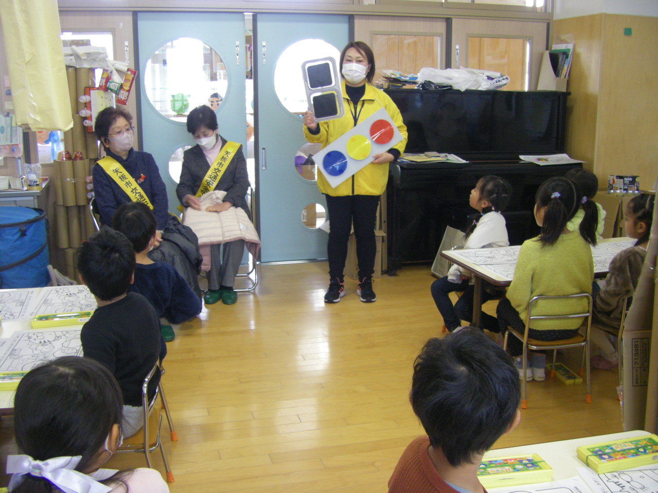 矢板市の交通指導員と母の会の方が来園し、交通安全について指導してくださいました。