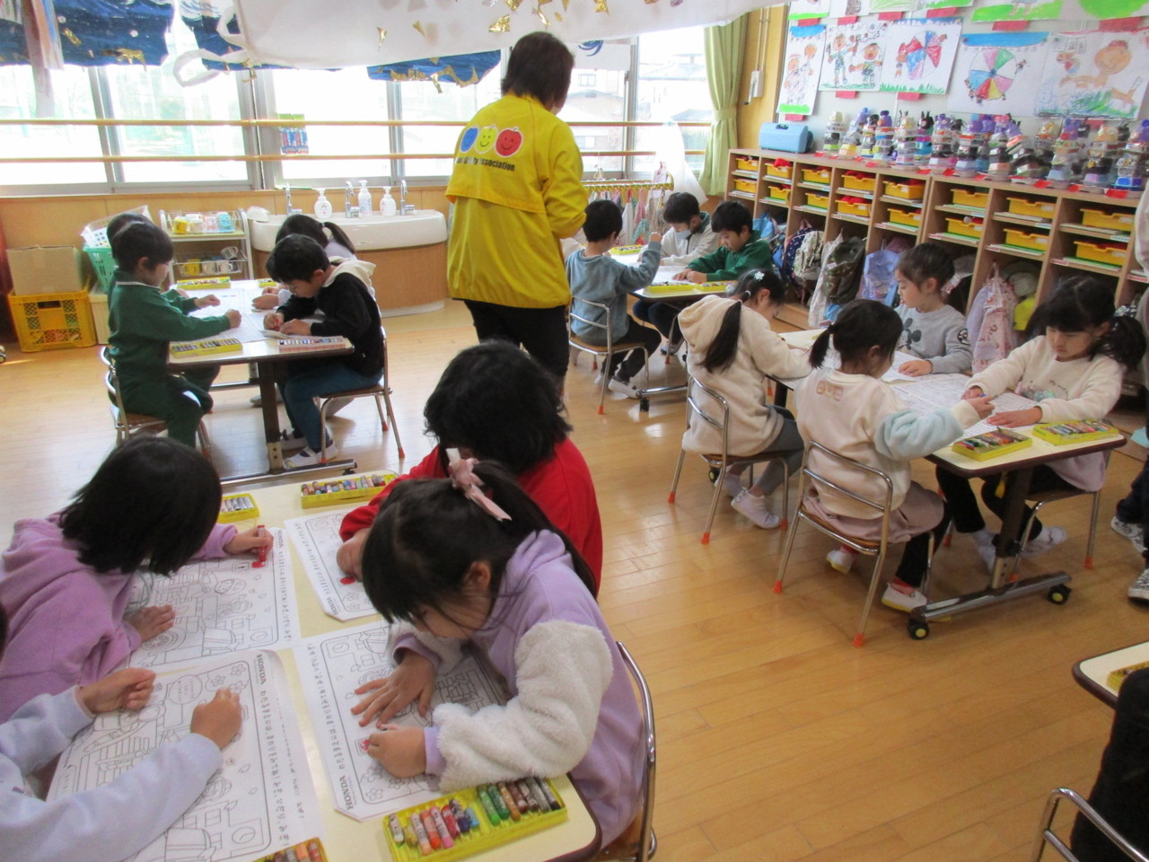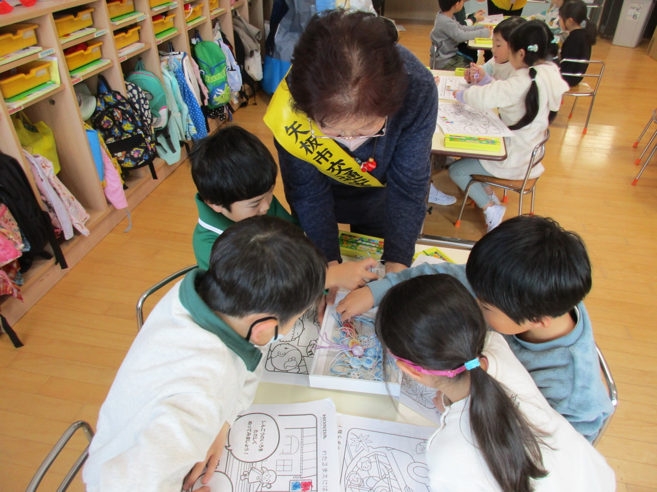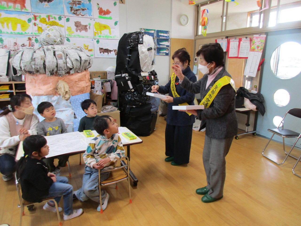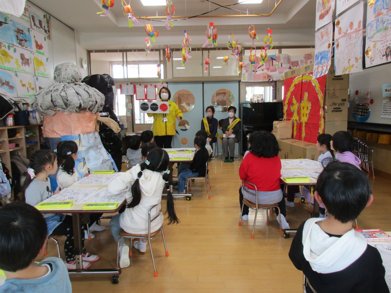 矢板市の交通指導員と母の会の方が来園し、交通安全について指導してくださいました。