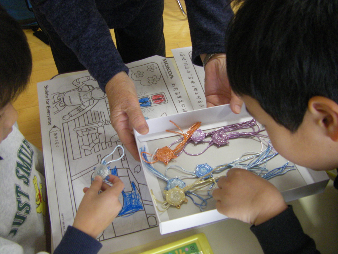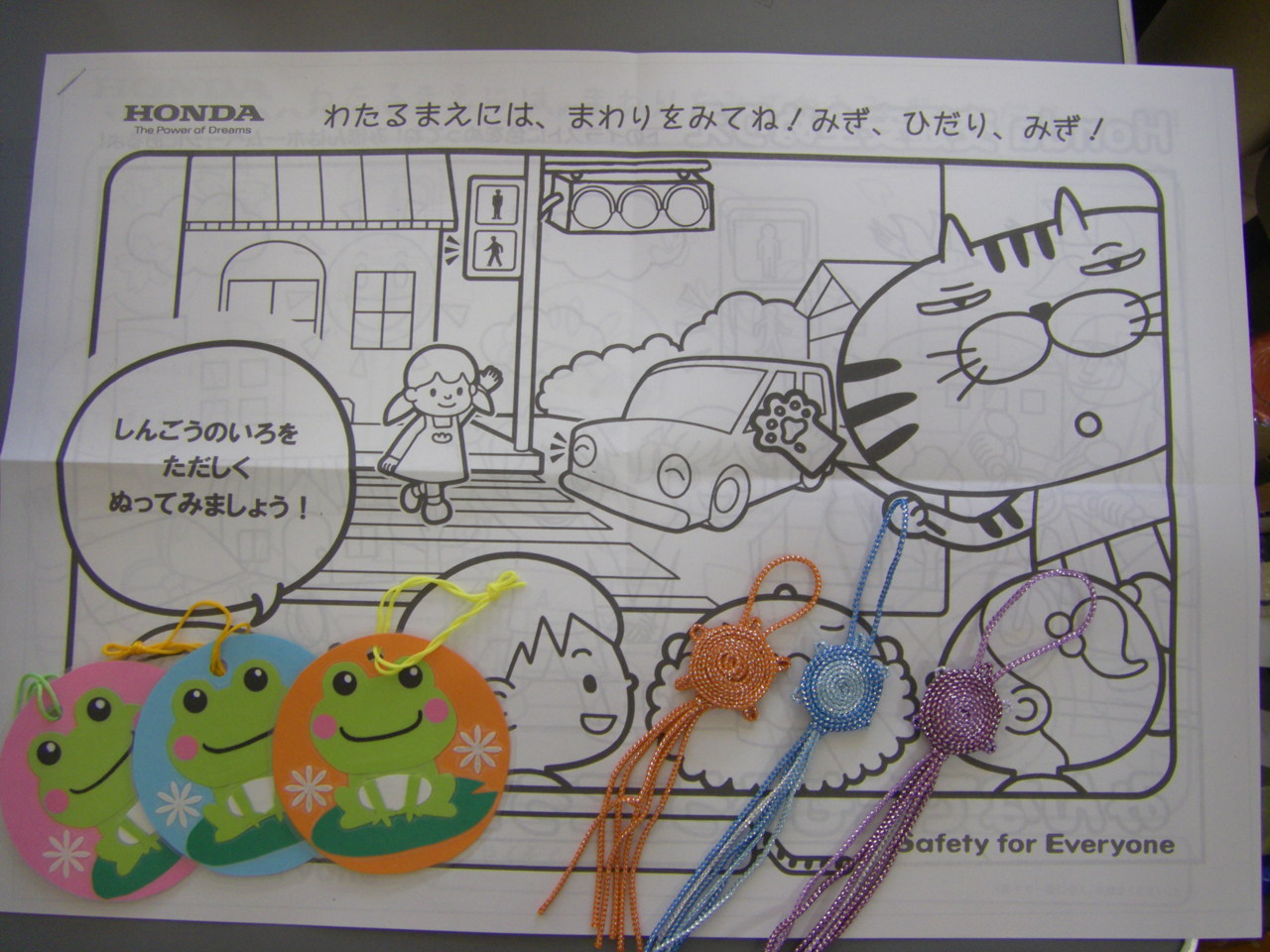 母の会の方々からは、手作りのお守りと無事帰るのカエルさんなどをいただきました。
