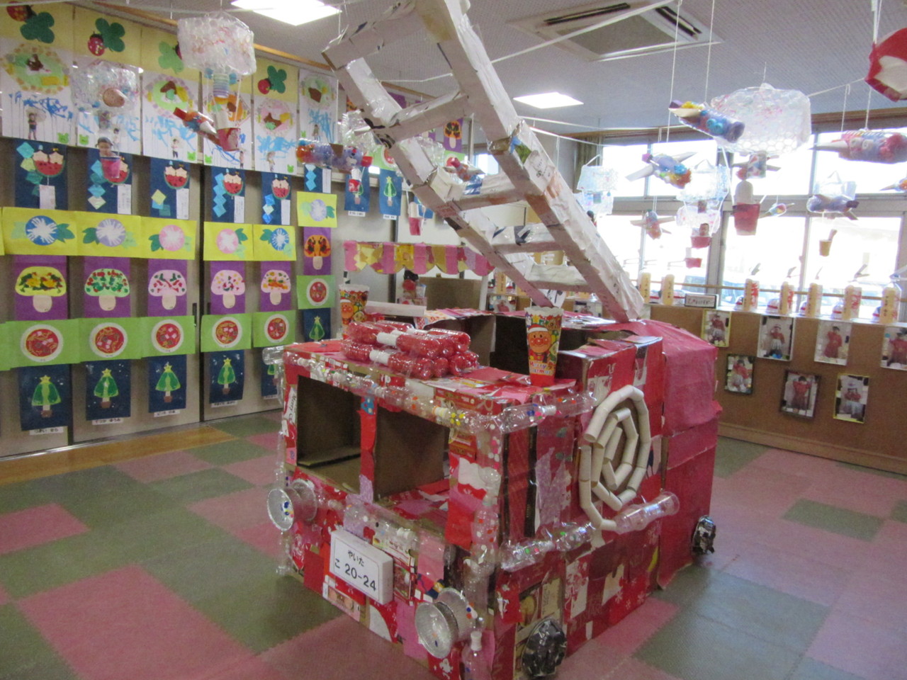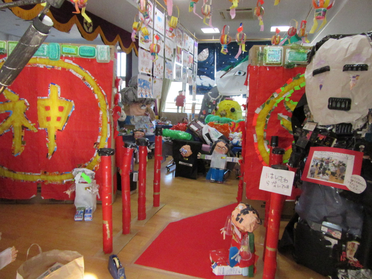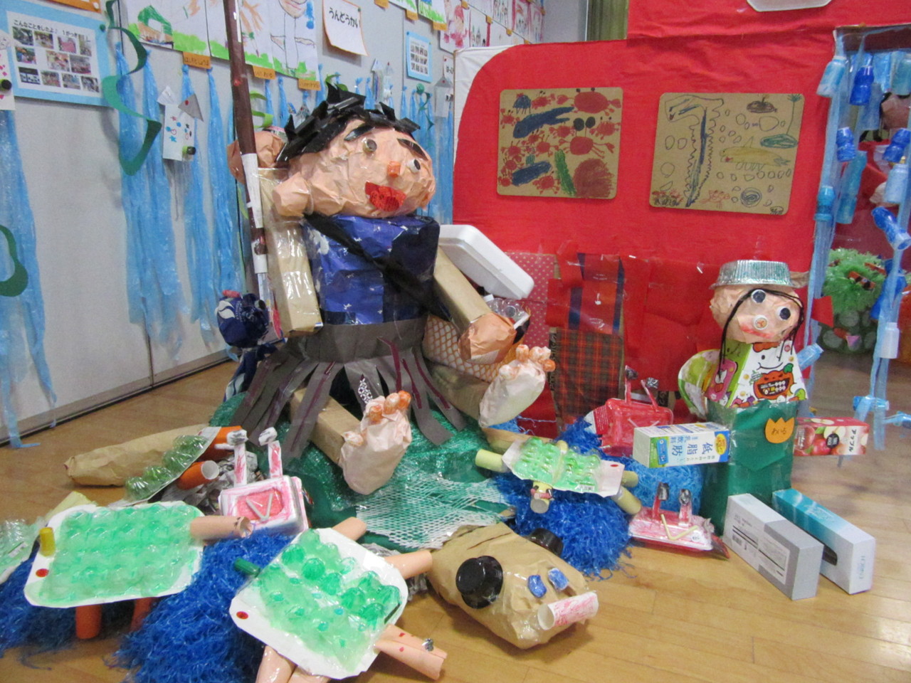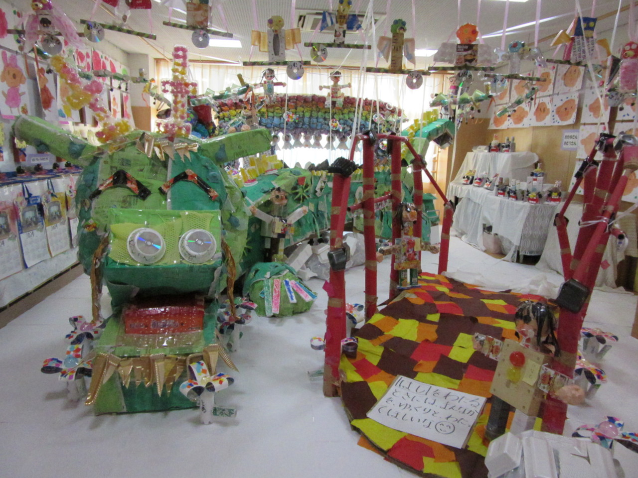 クラスごとにテーマを決めて、廃品を利用して素敵な作品が出来上がりました。
