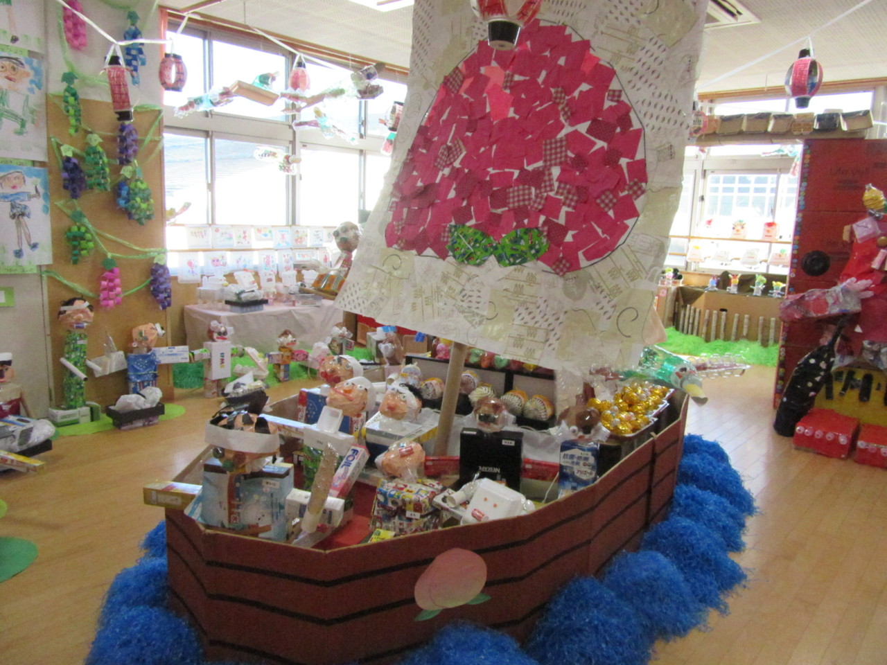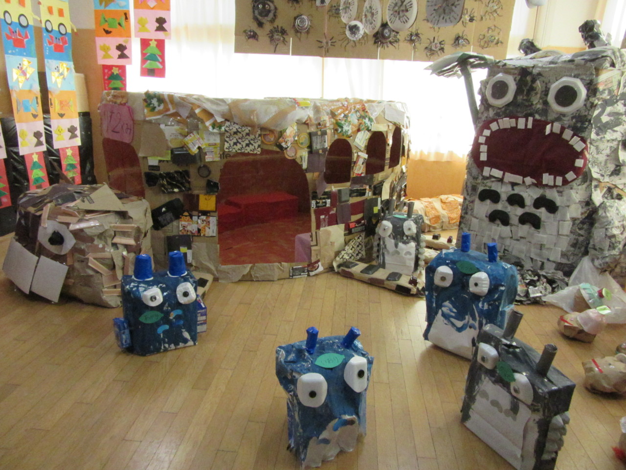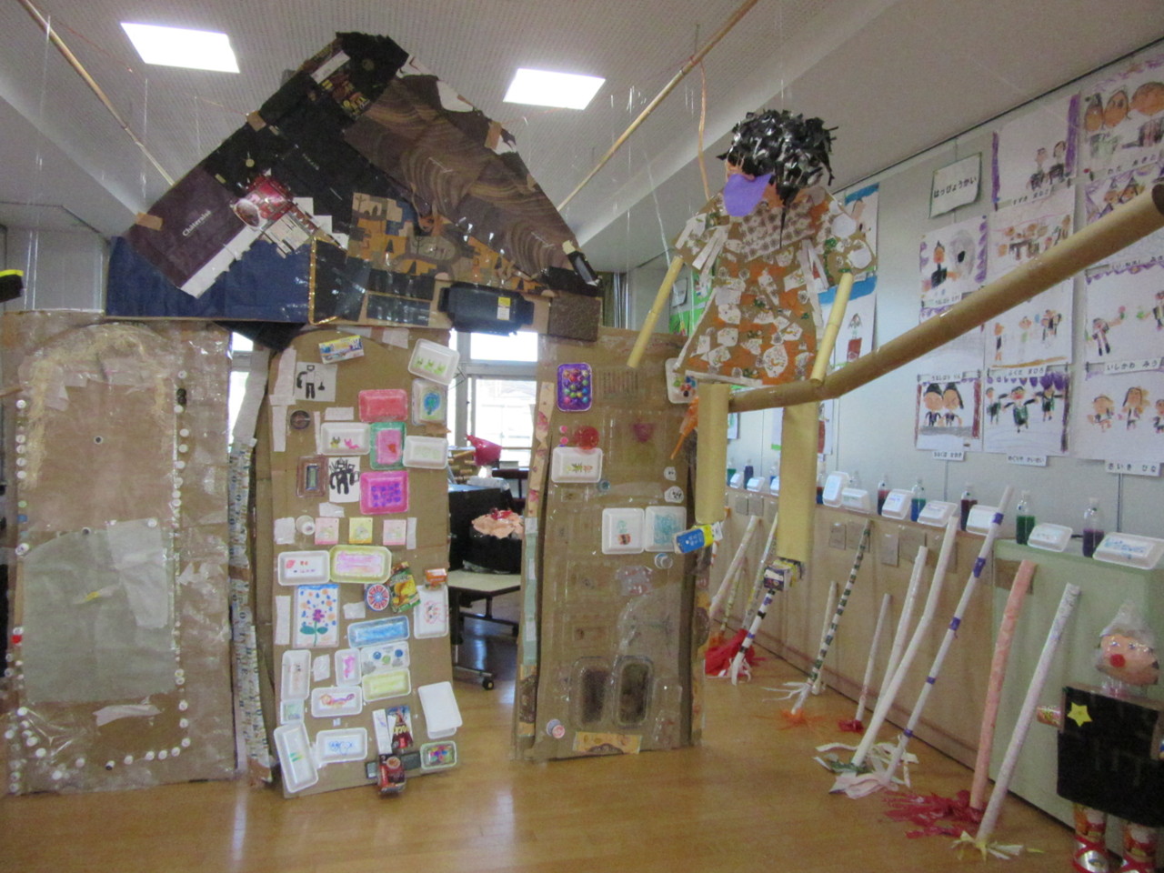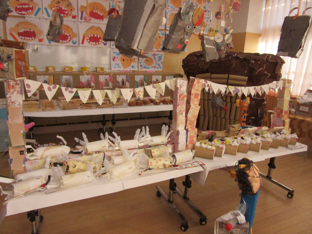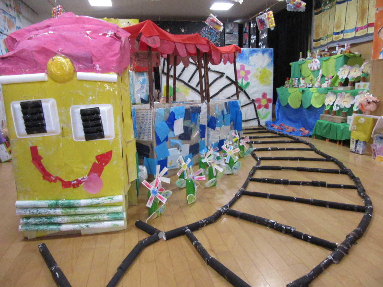 クラスごとにテーマを決めて、廃品を利用して素敵な作品が出来上がりました。