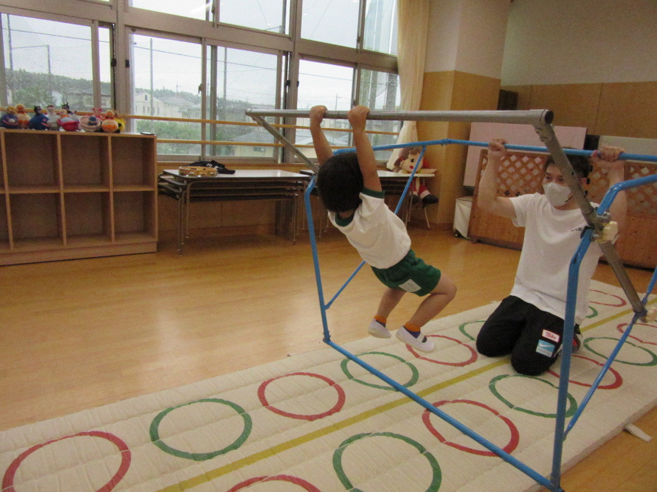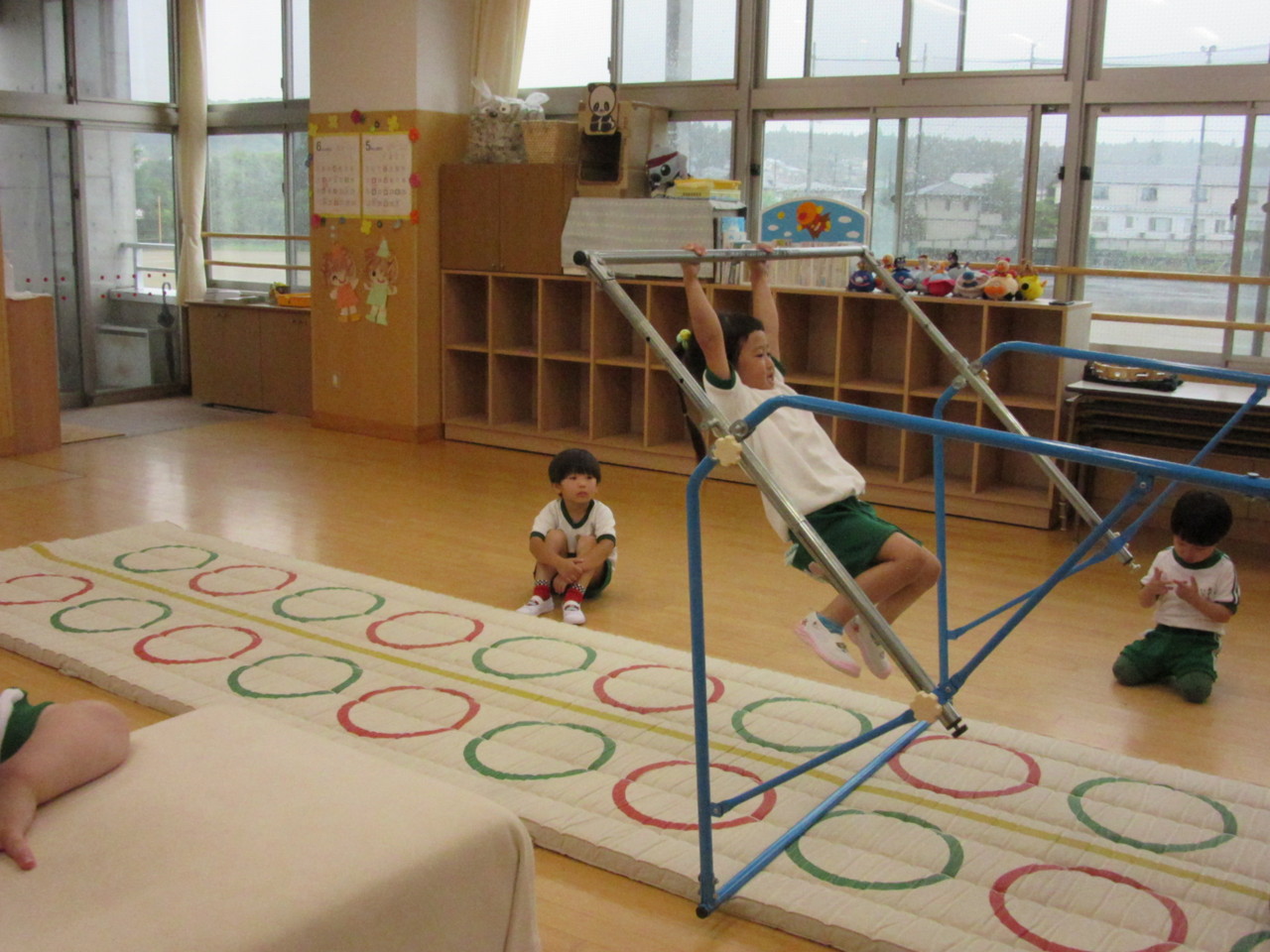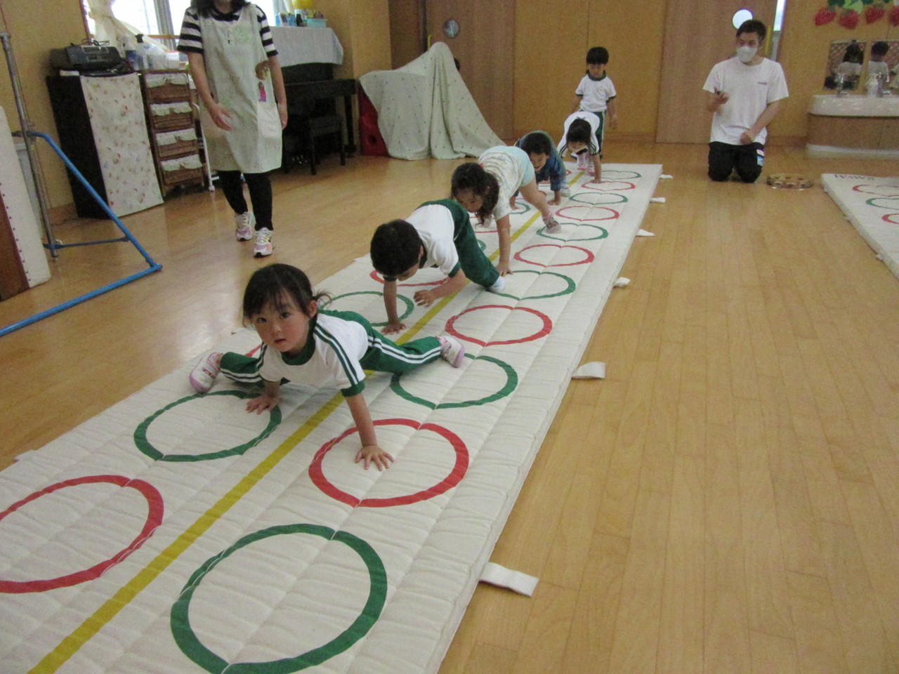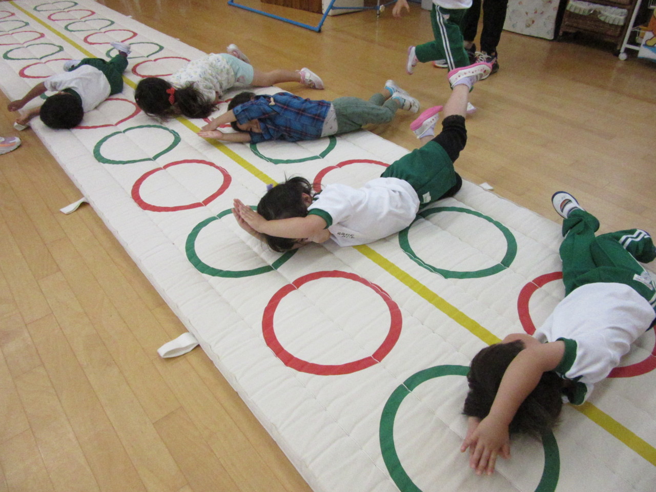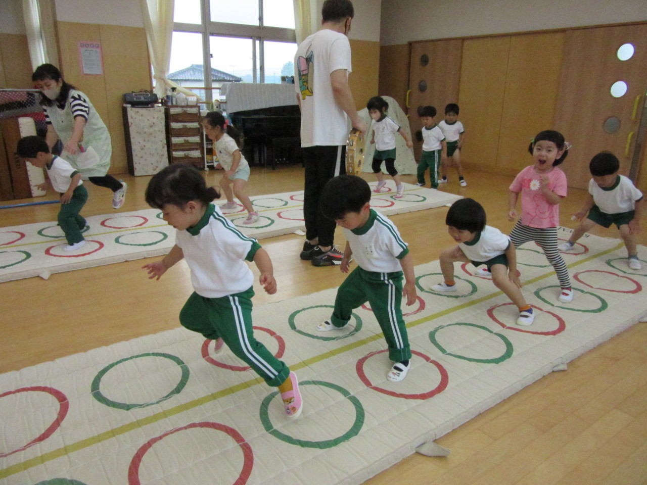 カワイ体操教室の講師の指導の下、いろいろな運動に興味をもって楽しく体操教室ができました。
