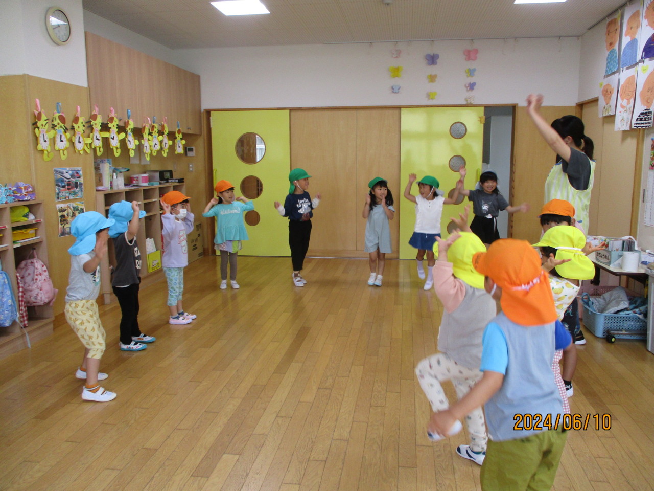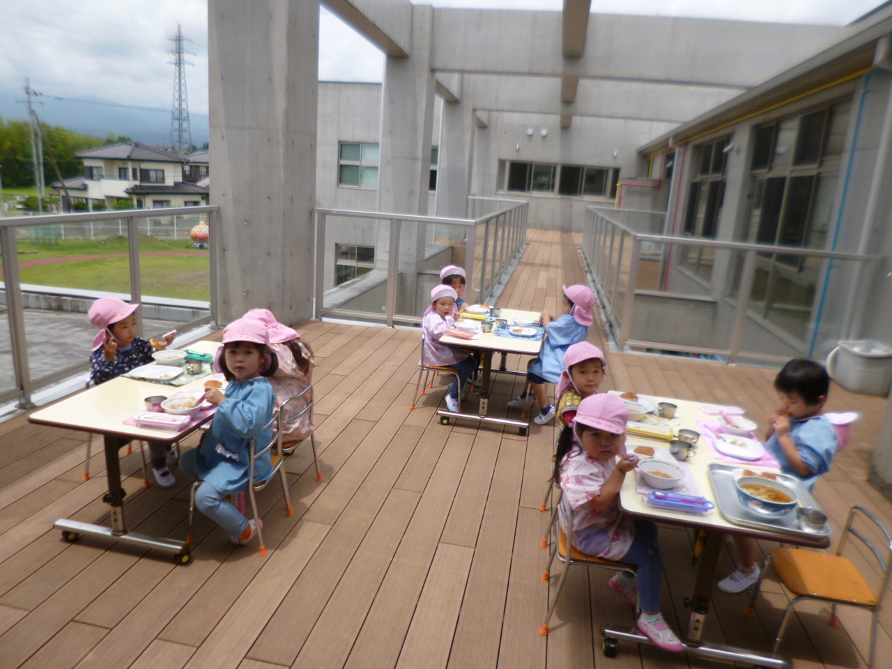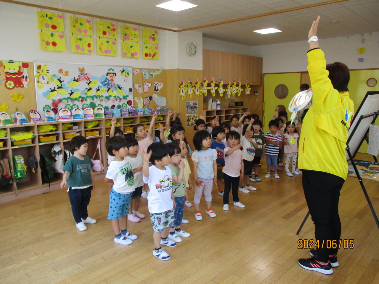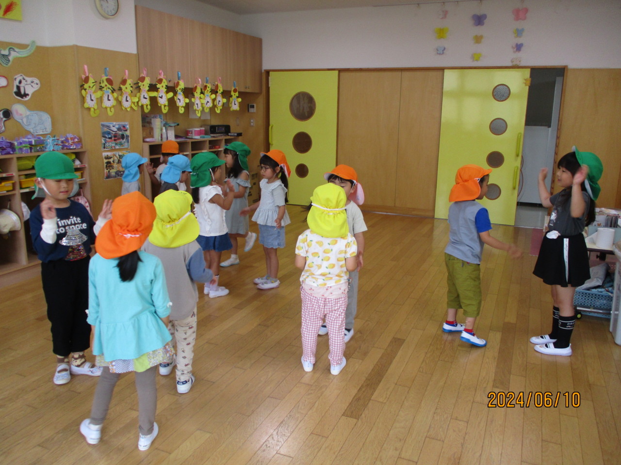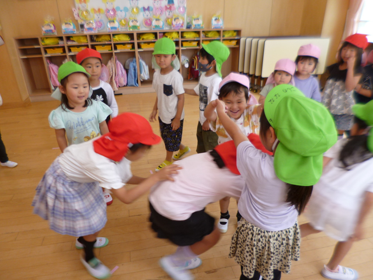 交通安全教室・縦割り保育・きゅうりの観察収穫お漬物で食べています・テラスで給食・製作活動などみんな楽しんでいます。