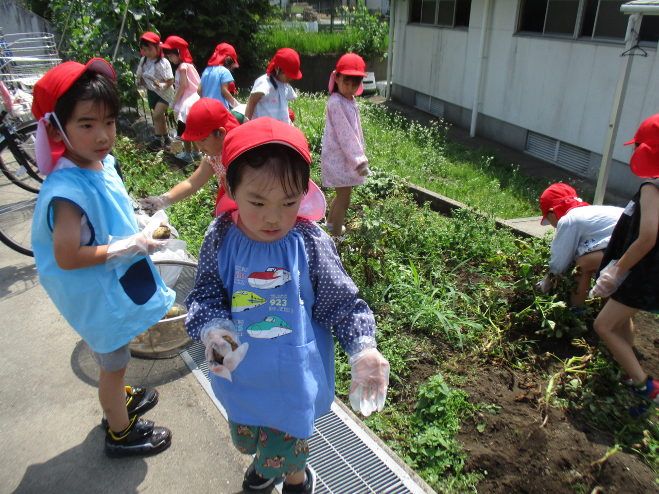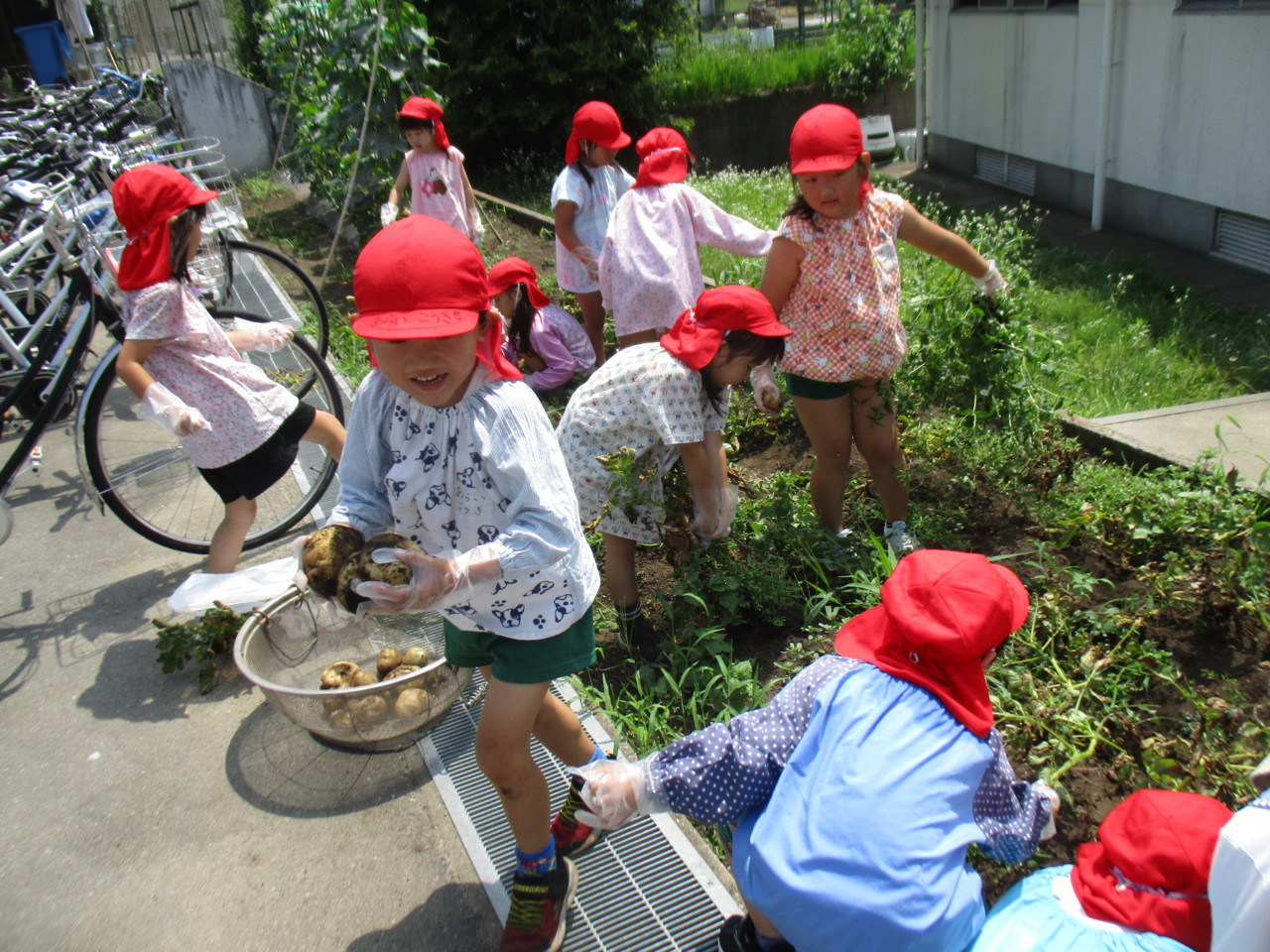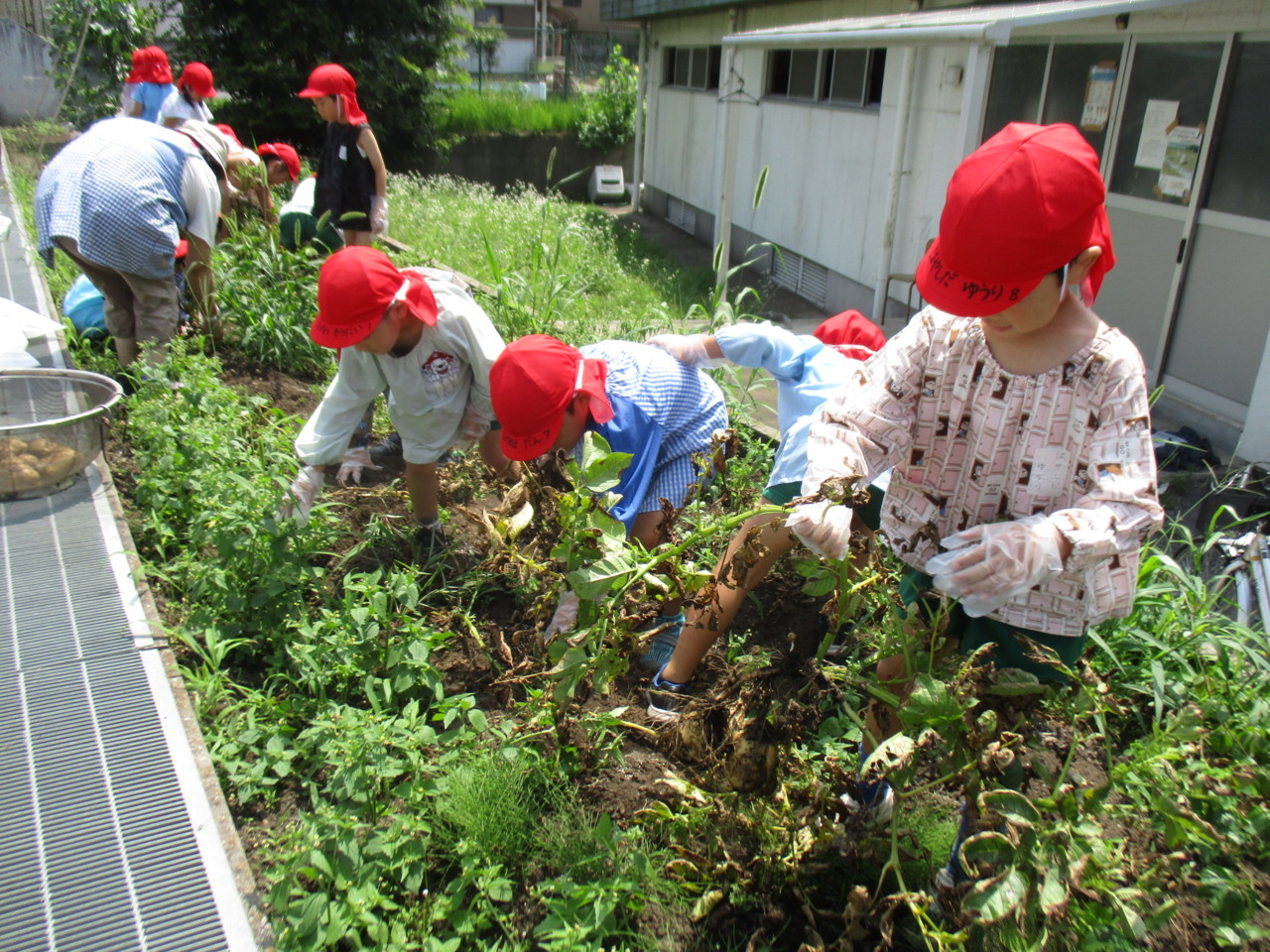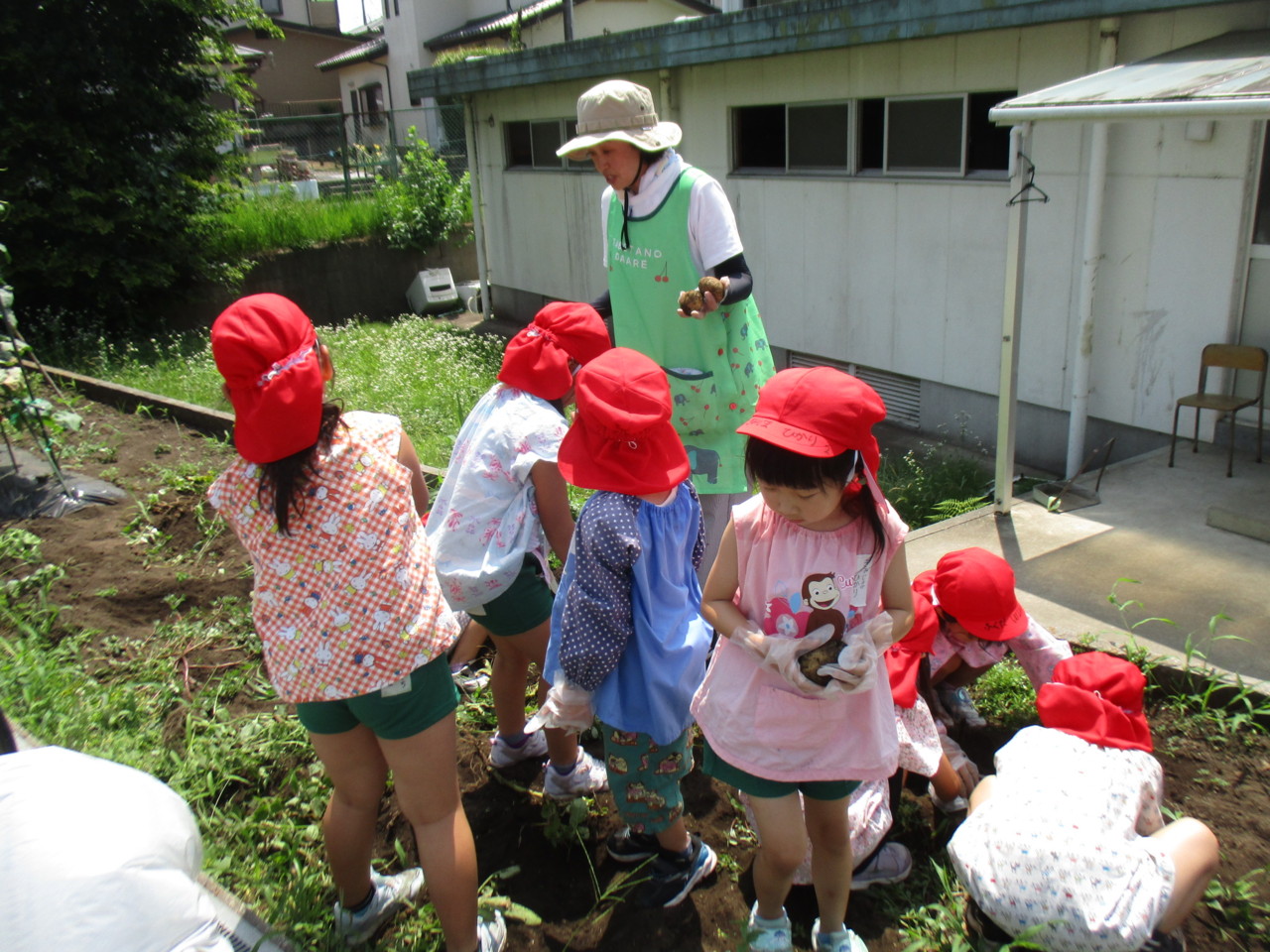 年長組がうさぎ組の時に植えたじゃがいもの収穫をしました。