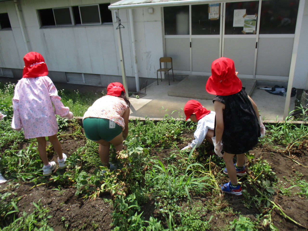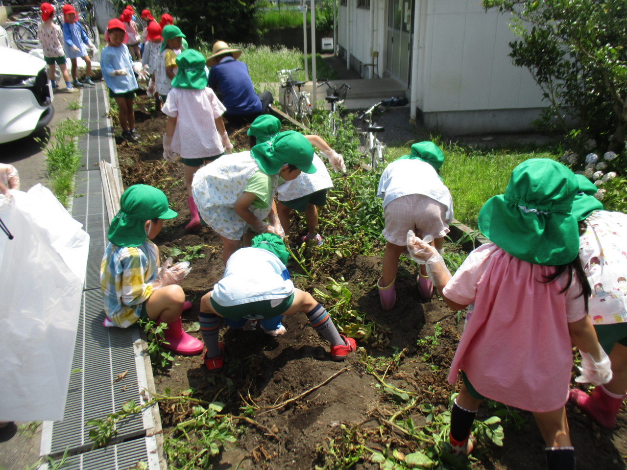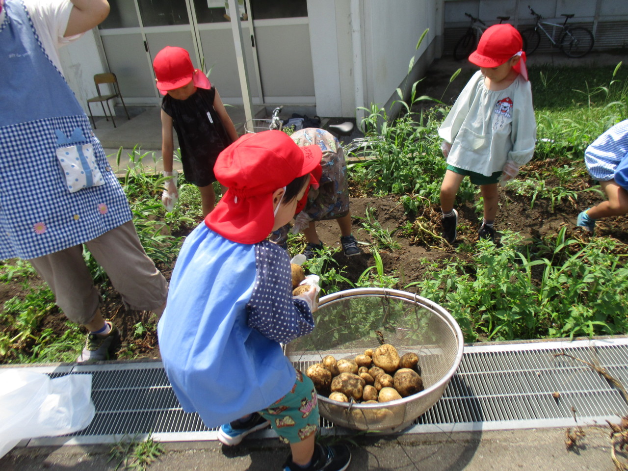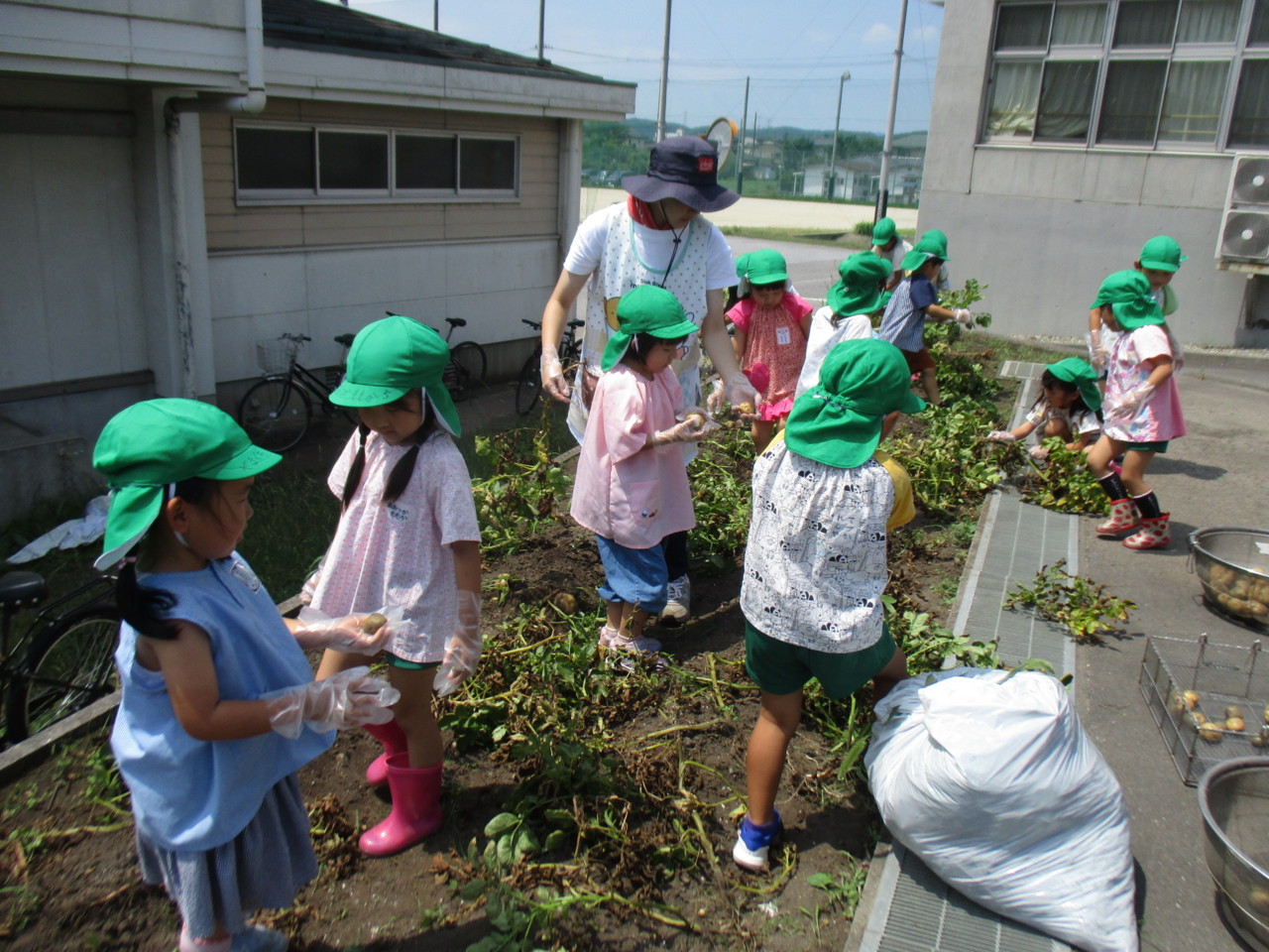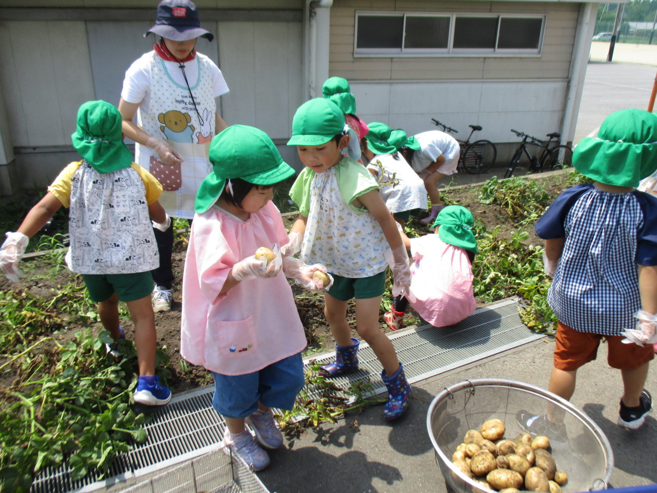 年長組がうさぎ組の時に植えたじゃがいもの収穫をしました。