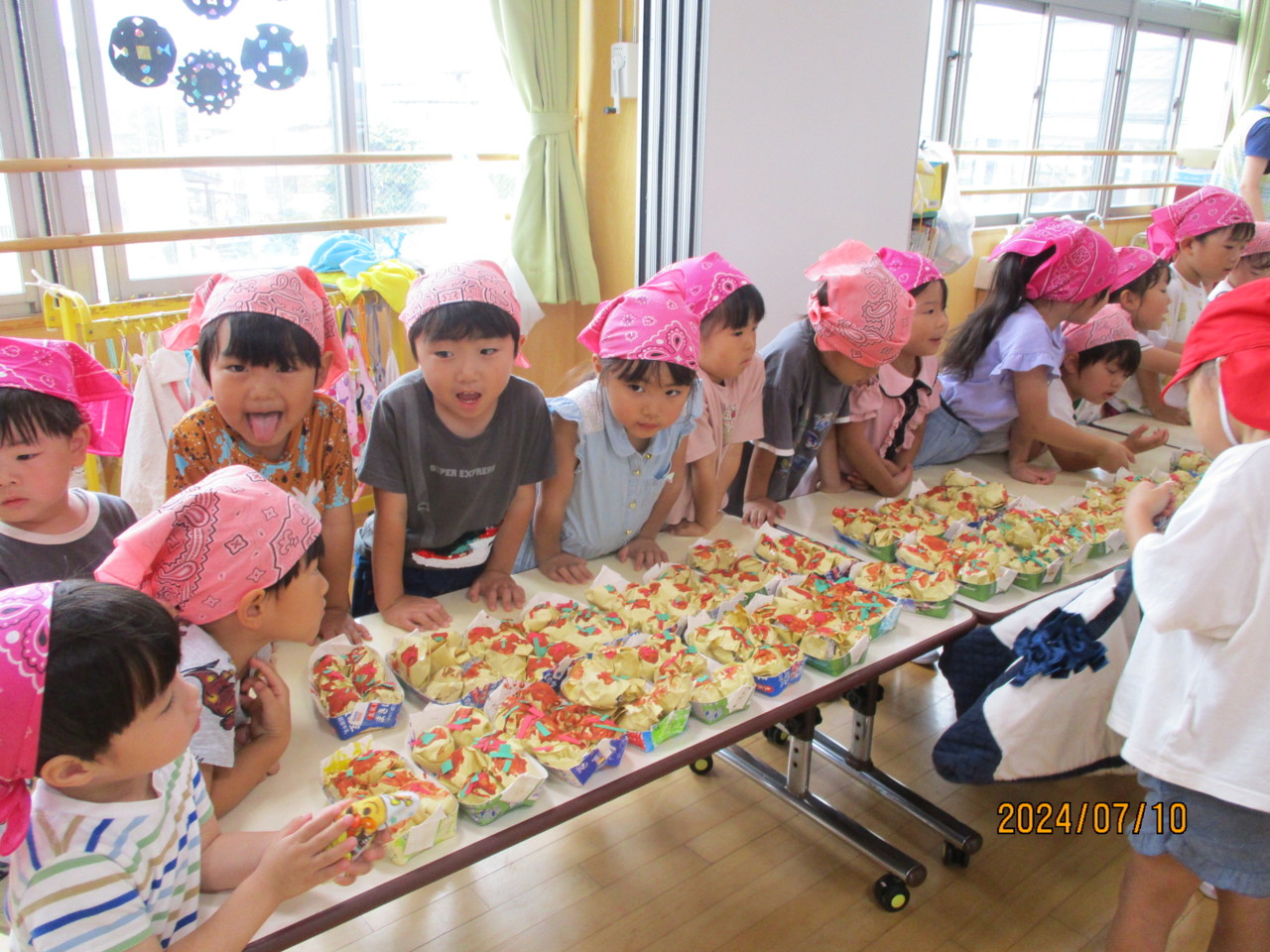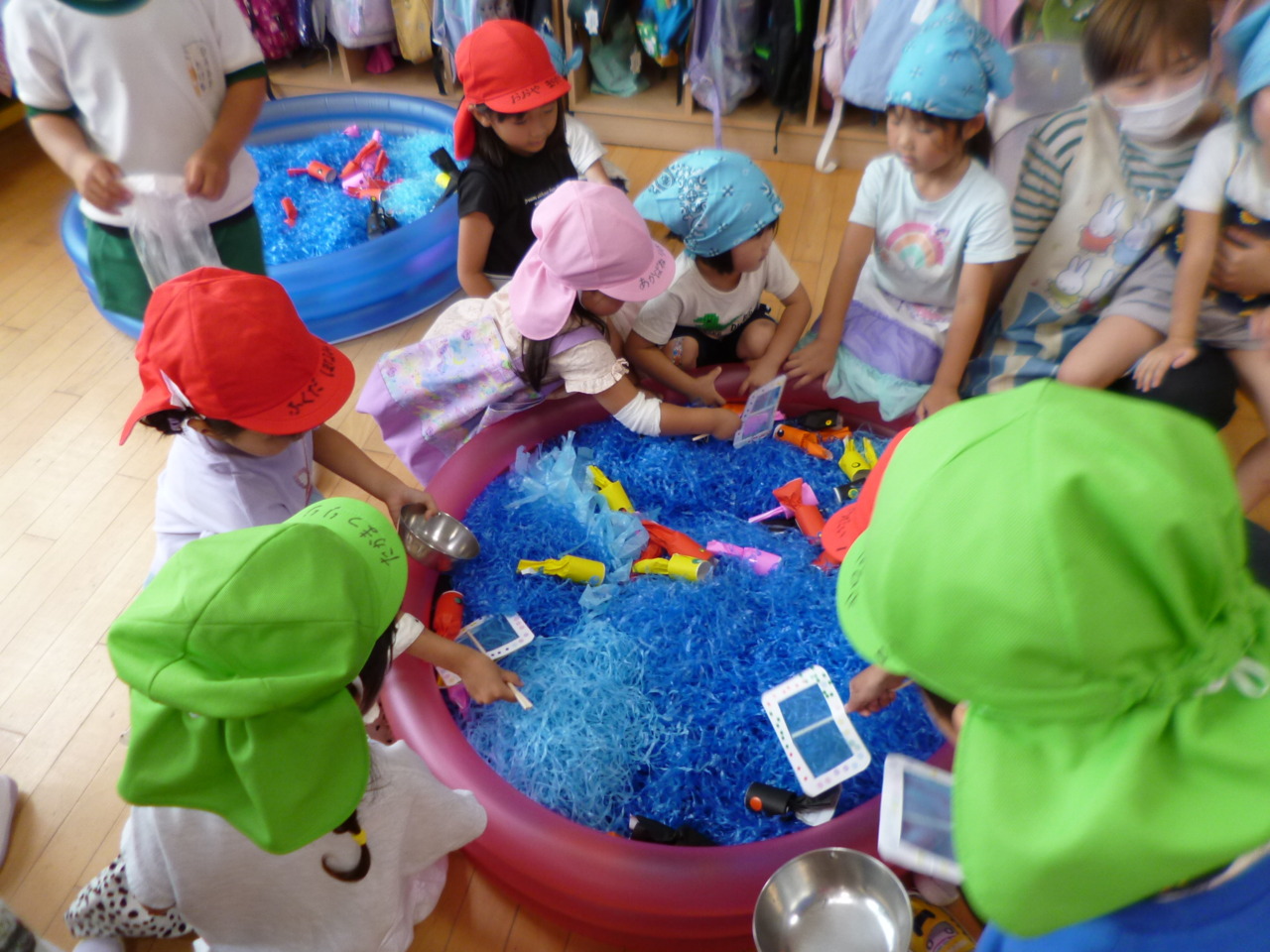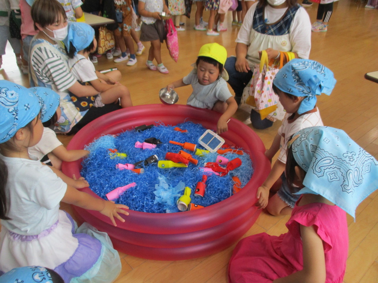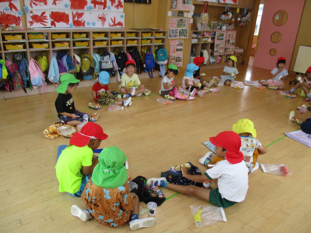 ひよこ・うさぎ・きりん組が縦割りのグループに分かれ活動しました。