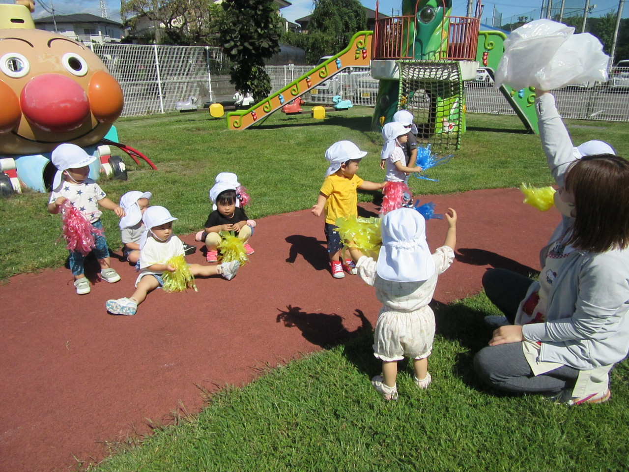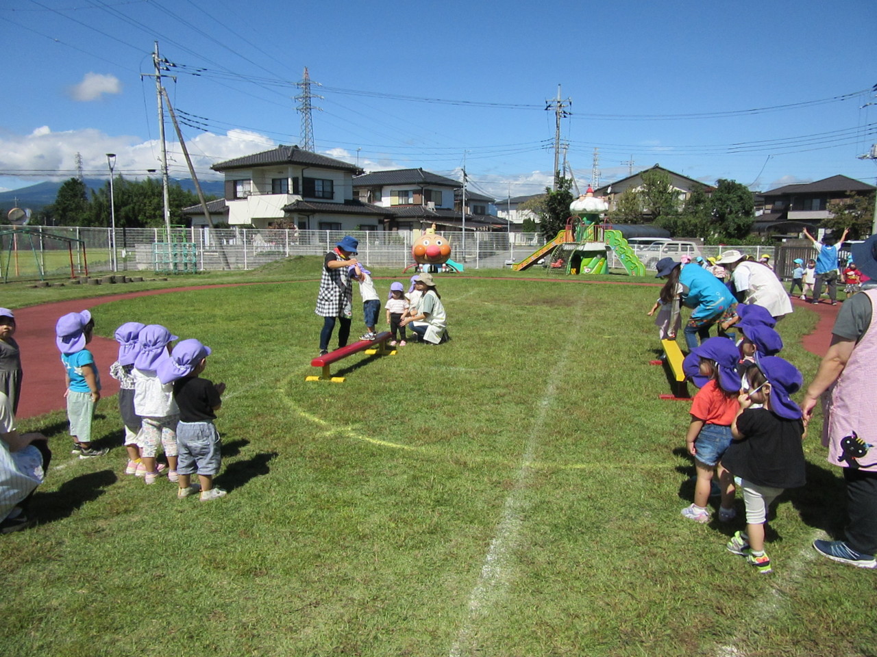 やっと秋らしくなった青空の下で元気いっぱいに体を動かしています。