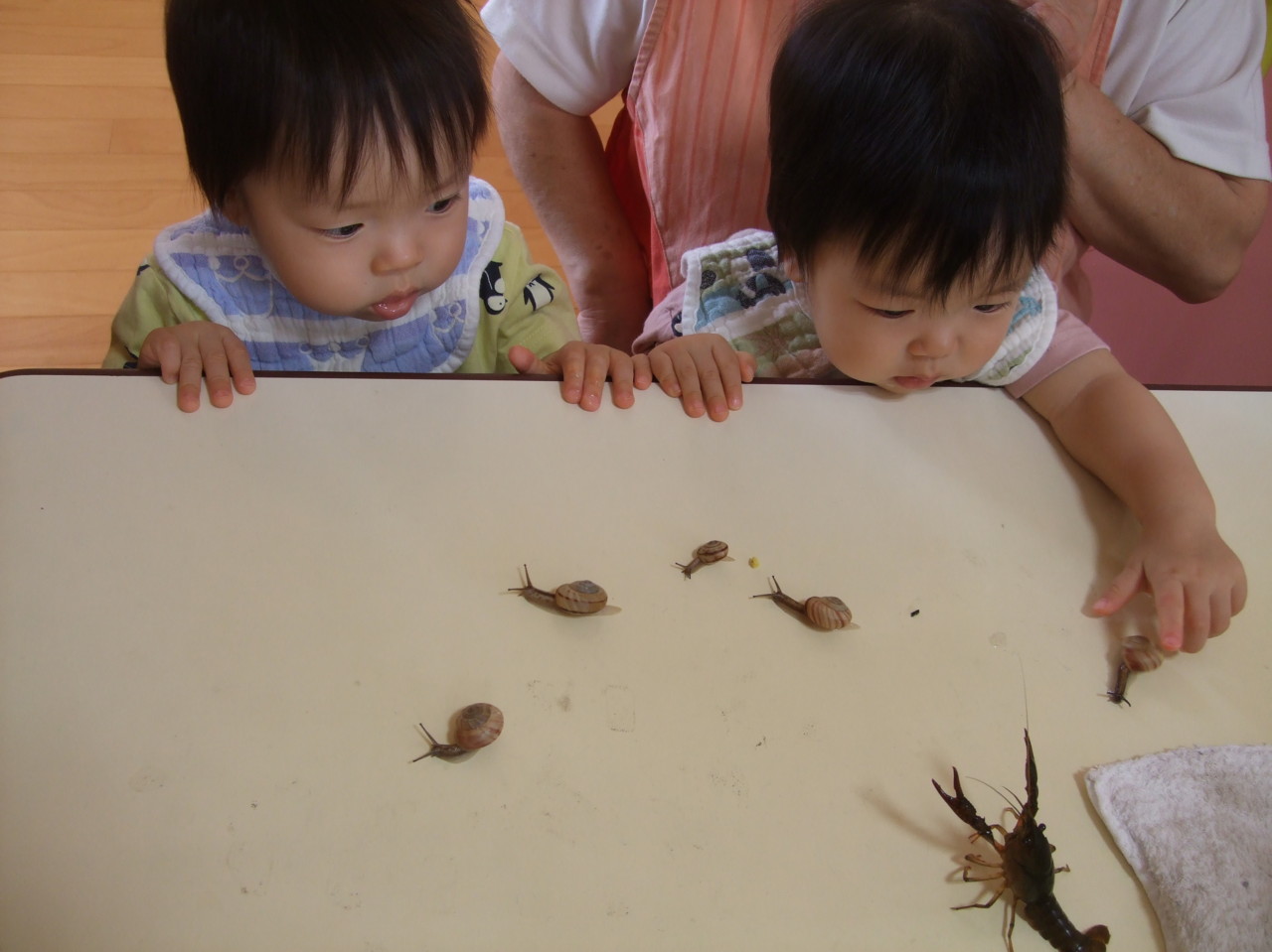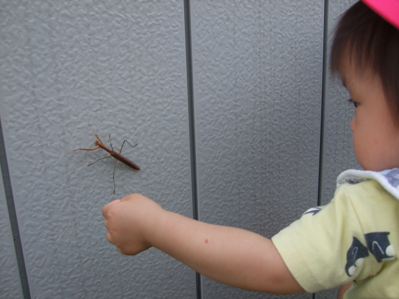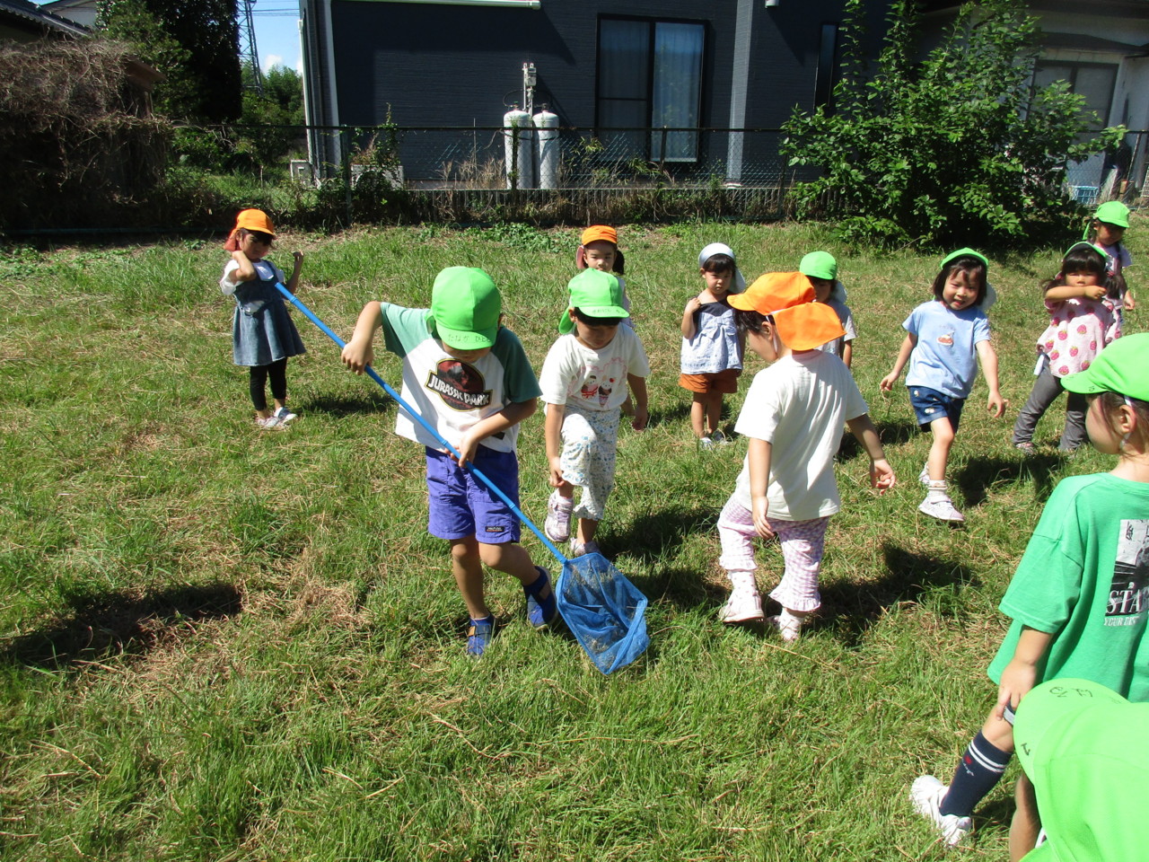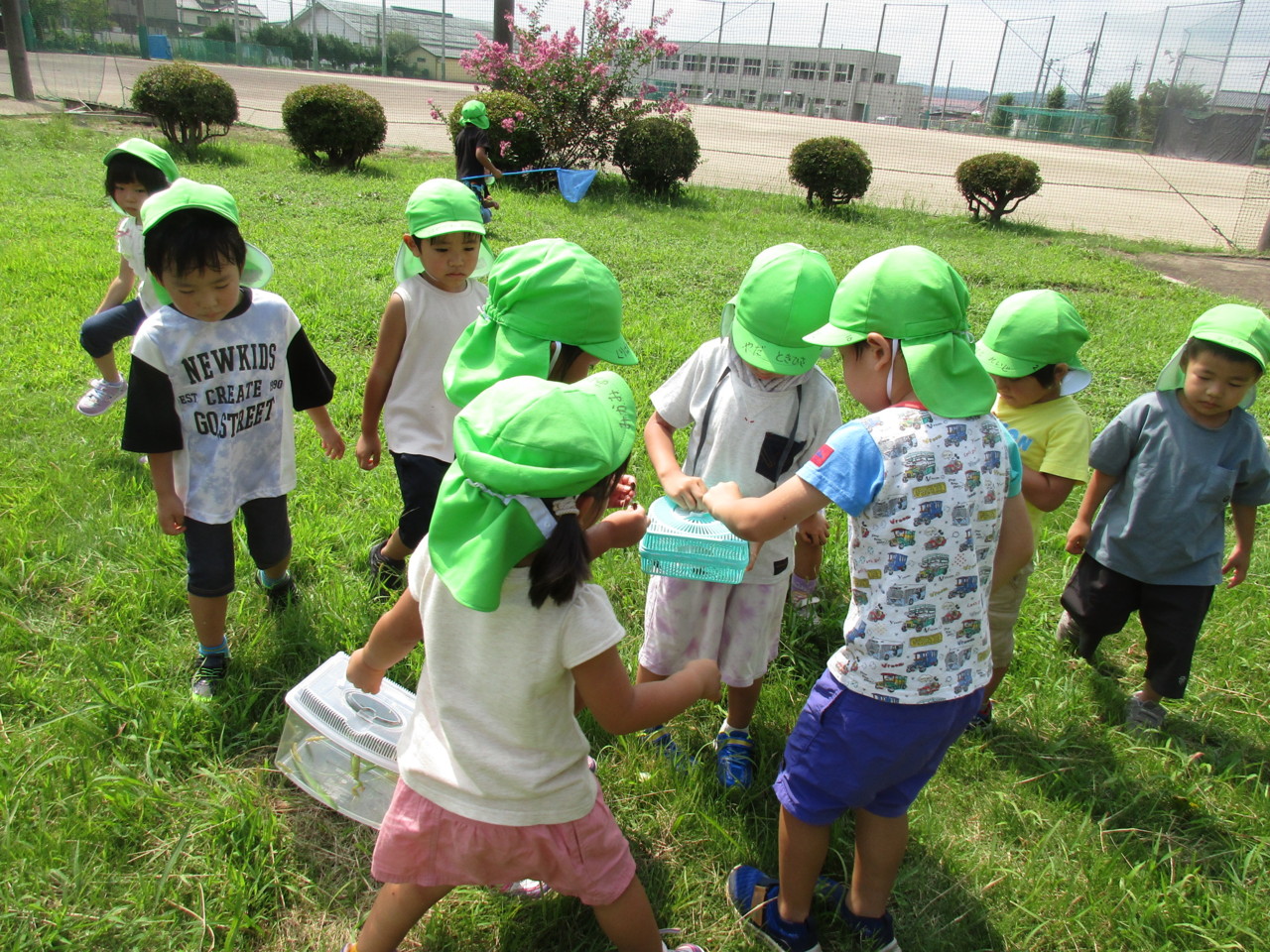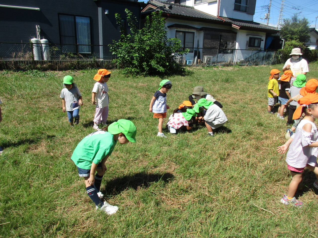 虫を探しに先生やお友達と一緒に散歩に出かけています。